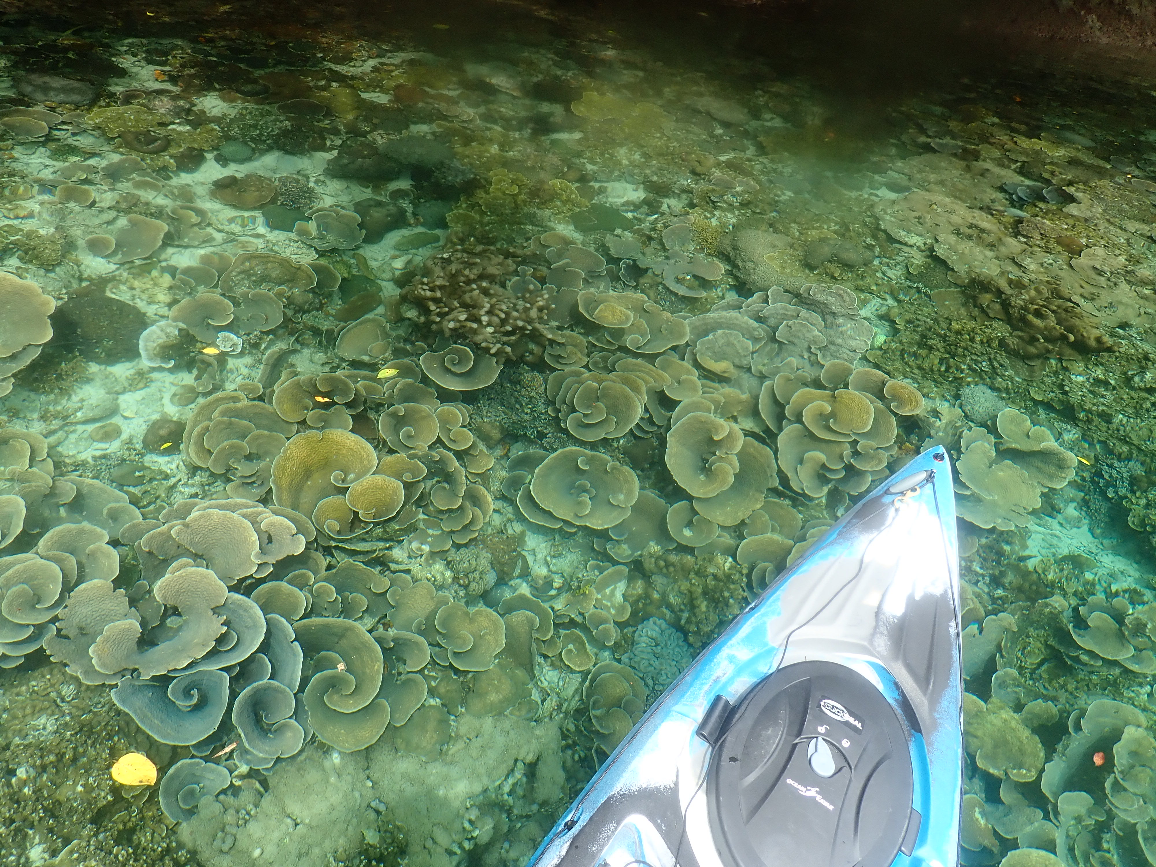 潮位が良いとご覧のようにカヤックの上から美しいサンゴがご覧頂けます。