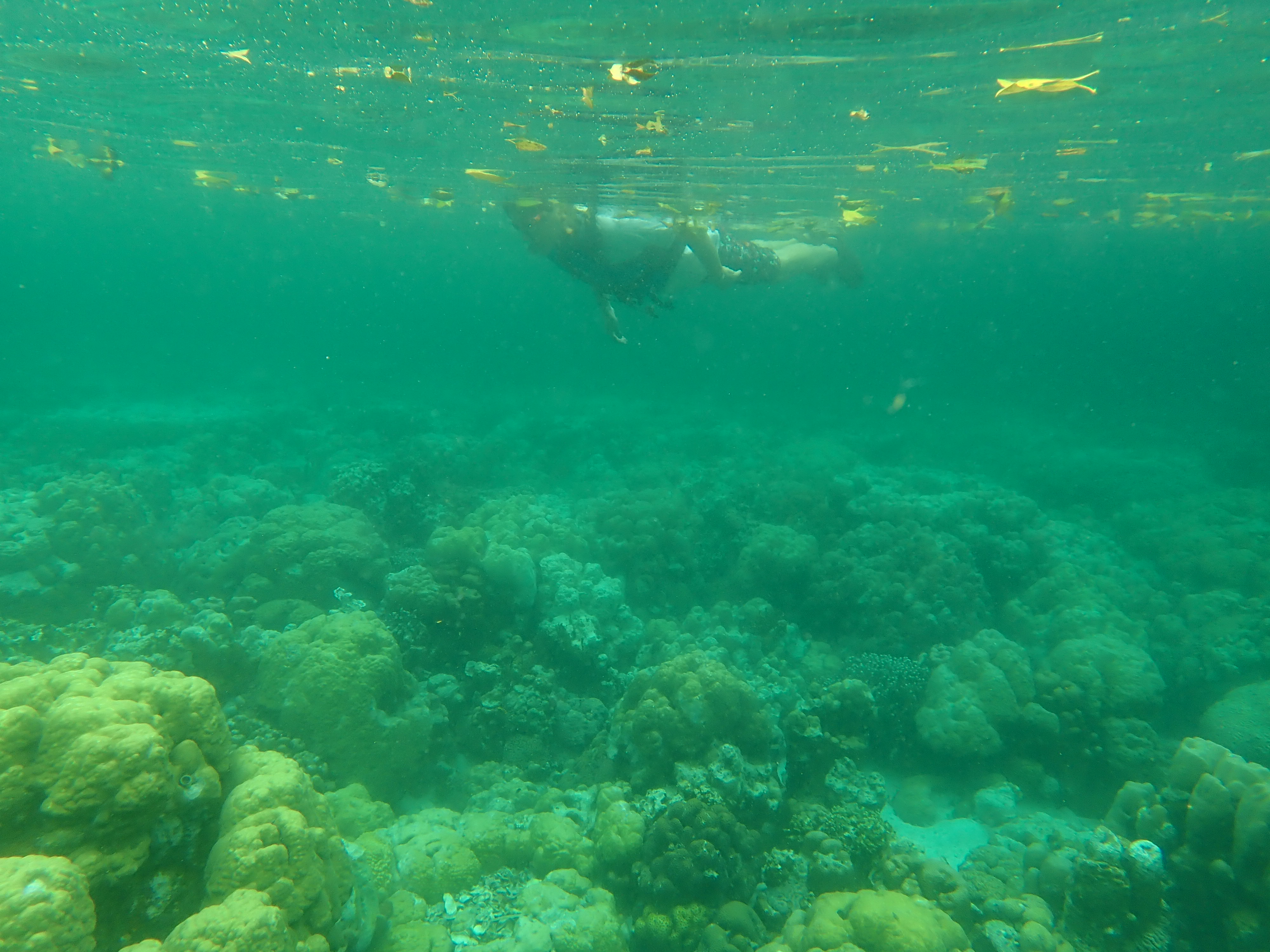 帰りにスノーケルも楽しみました。海草に似せて泳ぐヘコアユを発見!
