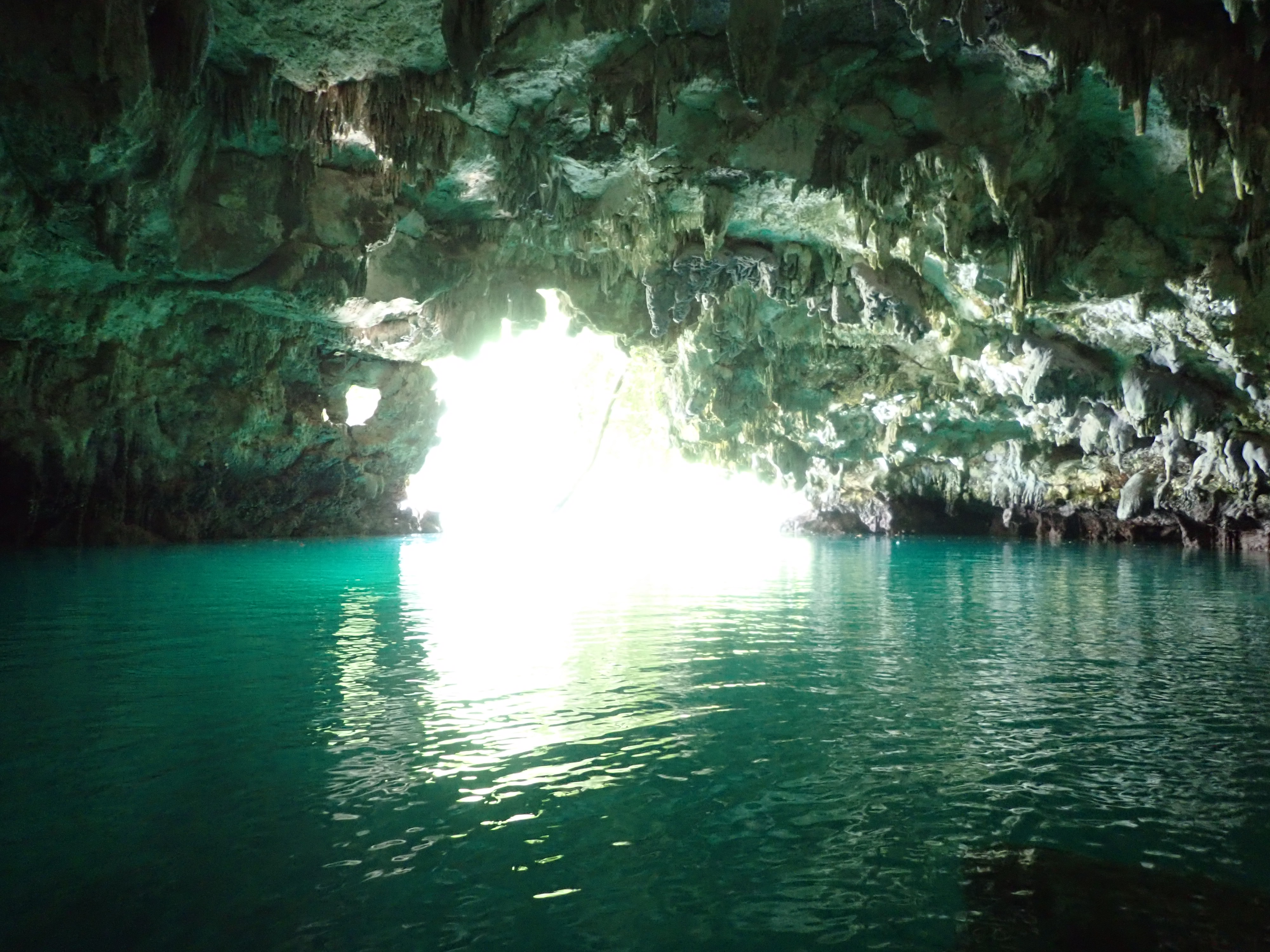 日の光が差し込むと淡い色合いが楽しめるエメラルドケイヴ。