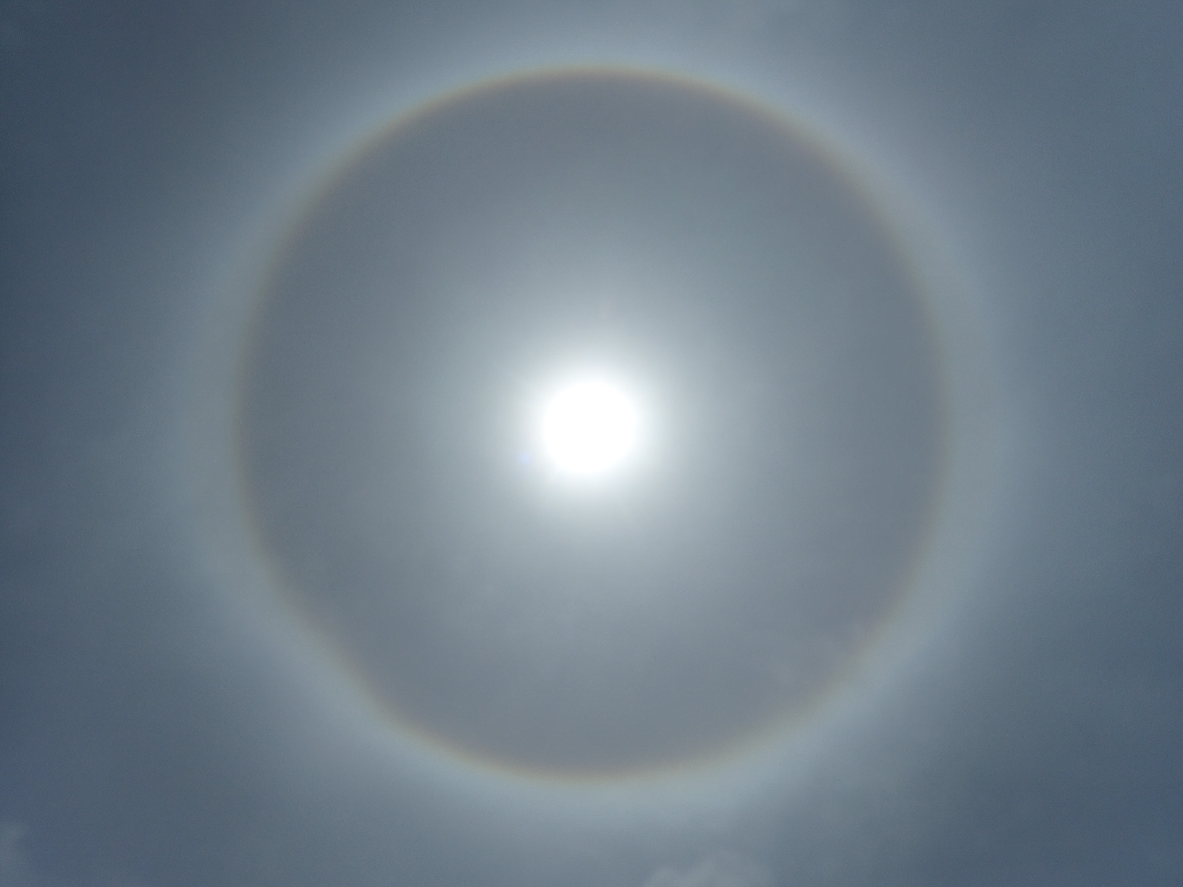 時折、晴れ間も出てきました。空を見上げると太陽の周りに円形の虹が出ていました。