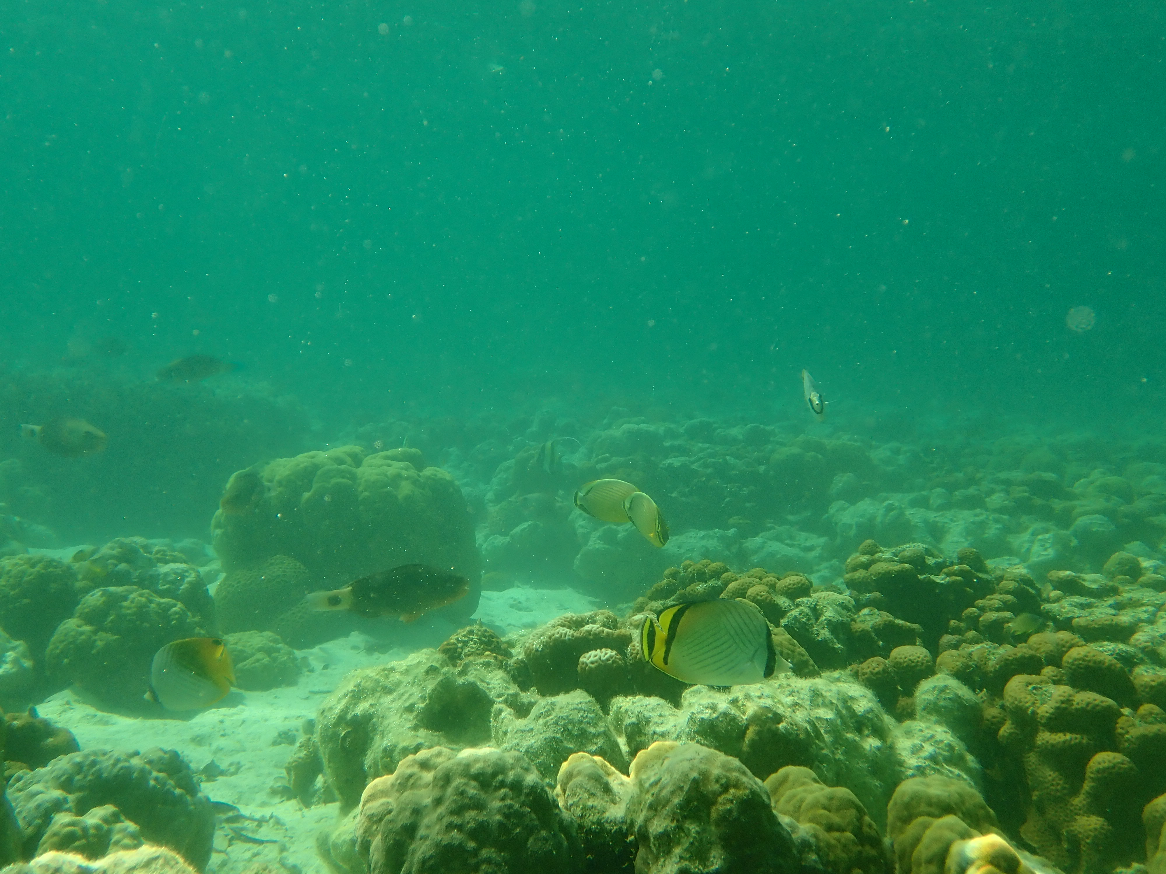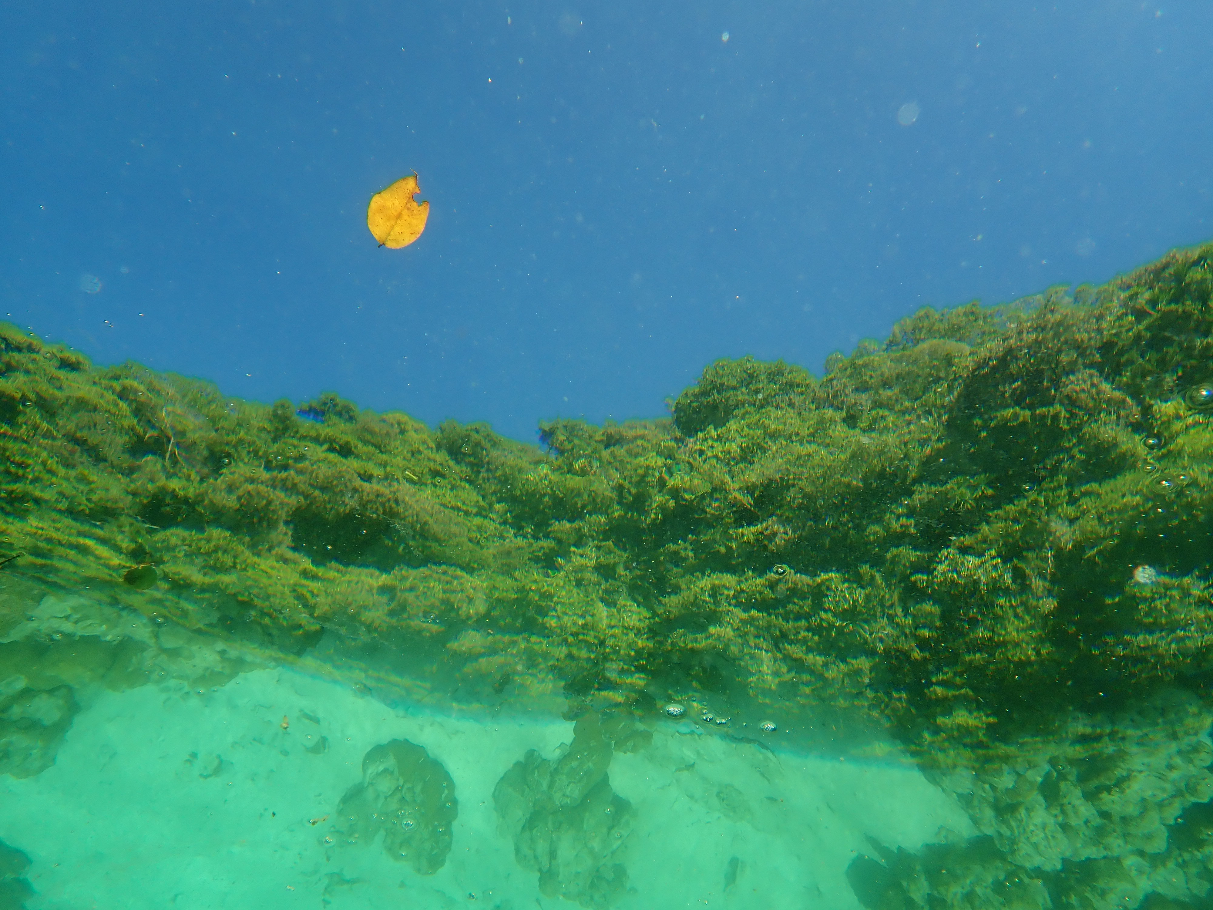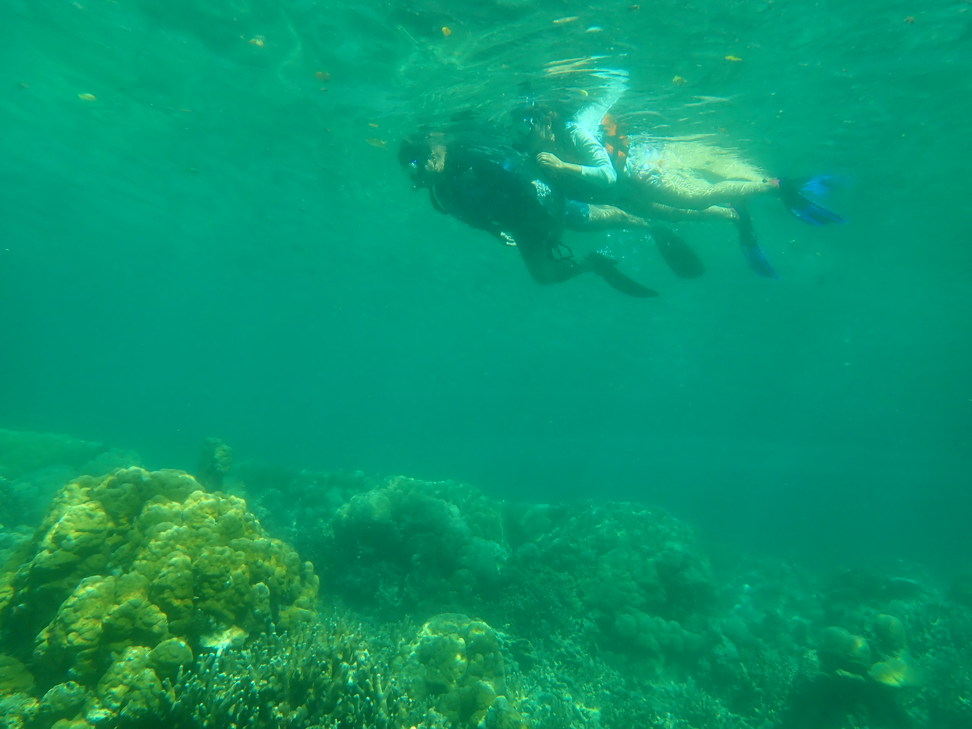 カヤックを降りて、マリンレイクと呼ばれる海と湖の間のスノーケルタイム。外の海では見かけない珊瑚と小さな魚達。穏やかで流れも無い場所でのスノーケルをのんびりと楽しめます。