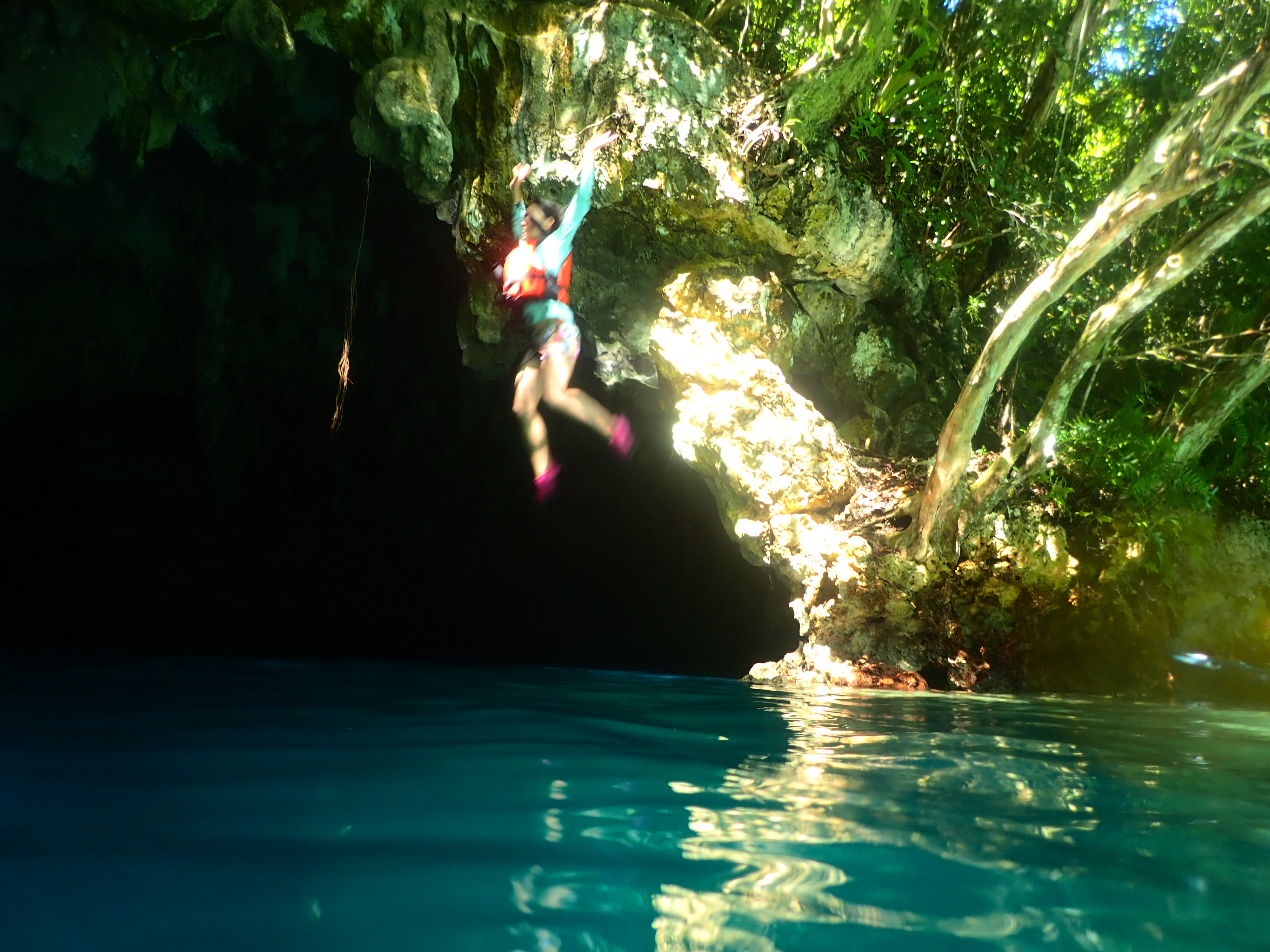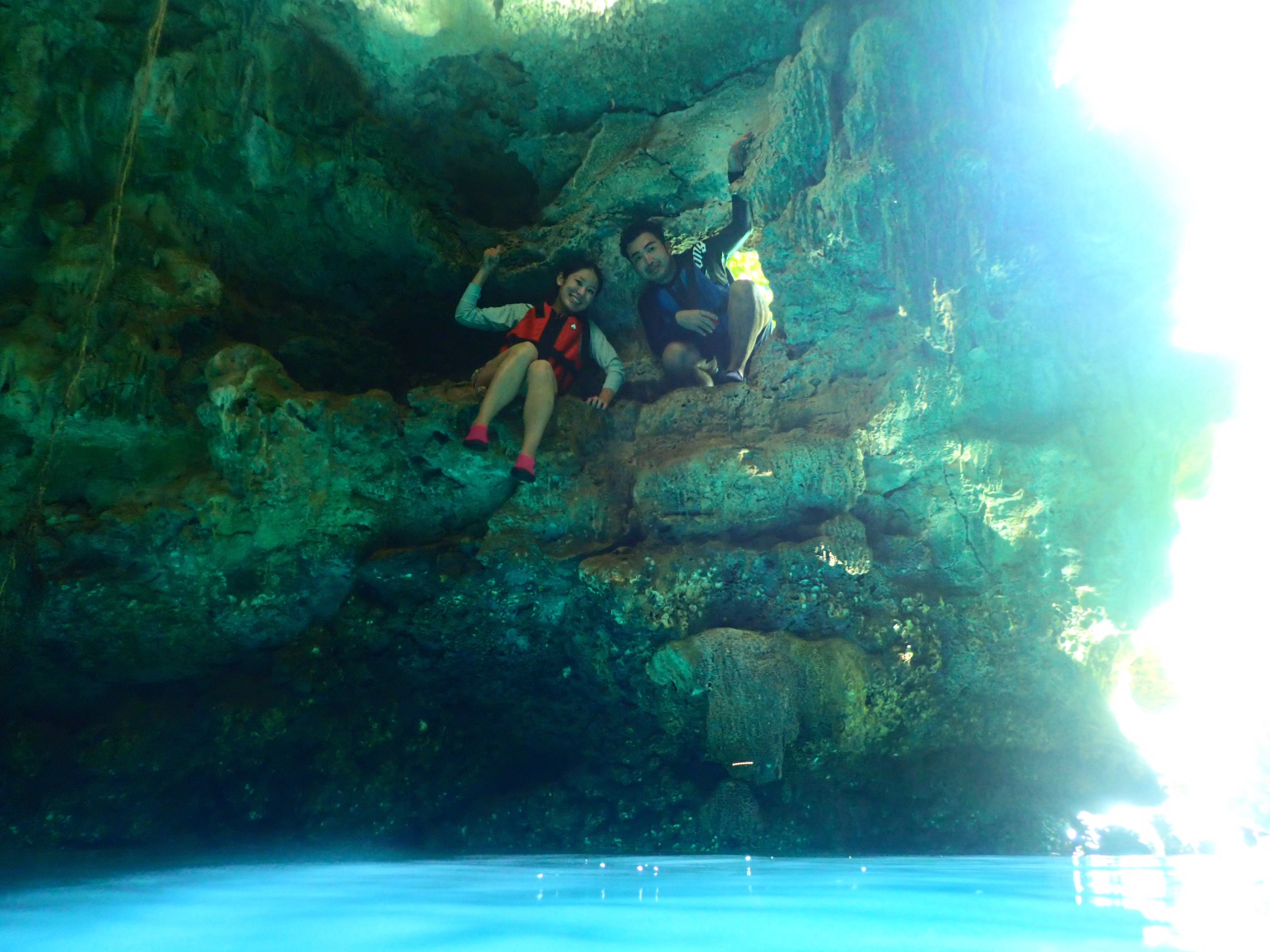 洞窟では飛び込んだり、浮かんでのんびりして、帰路につきます。