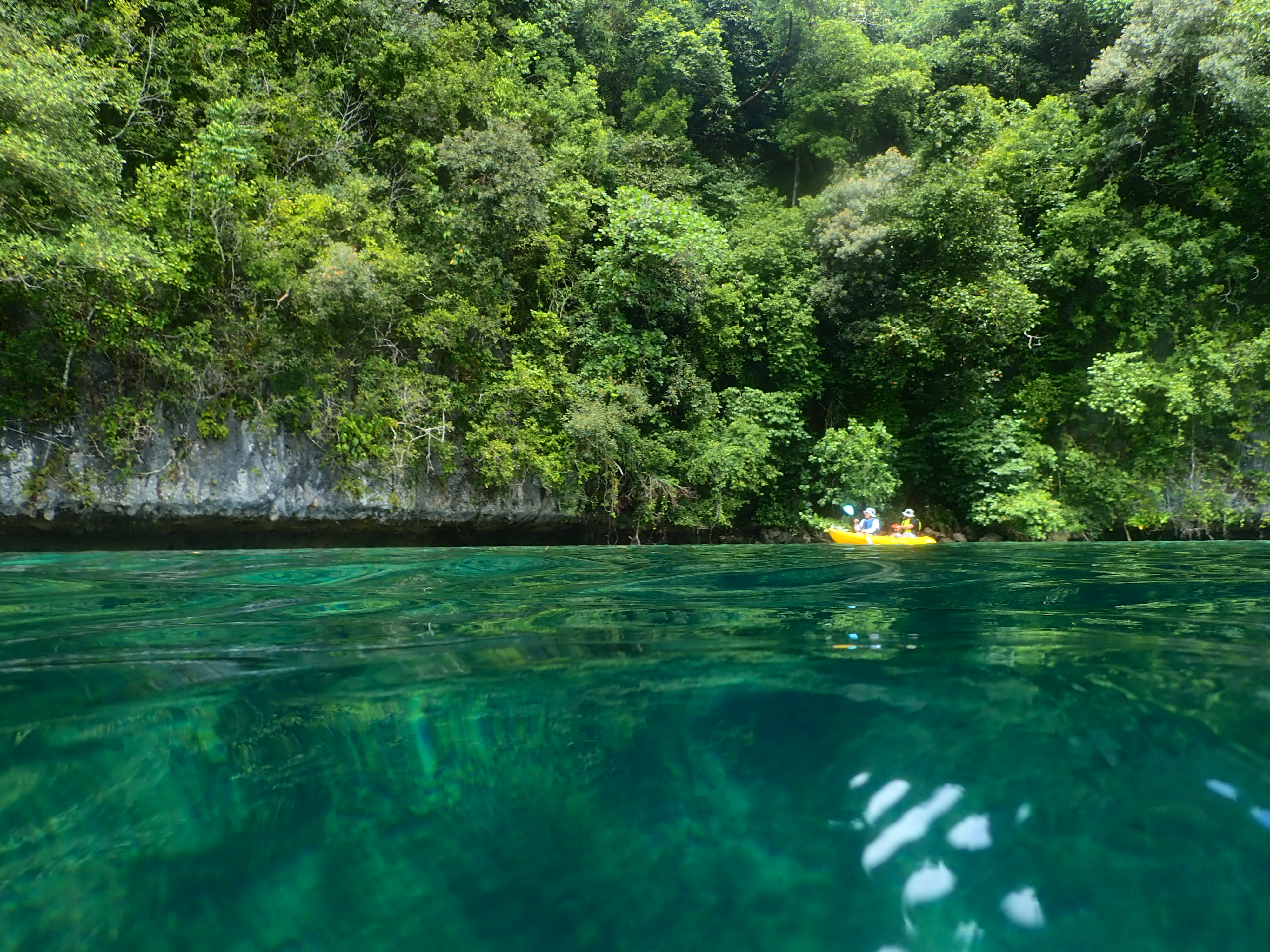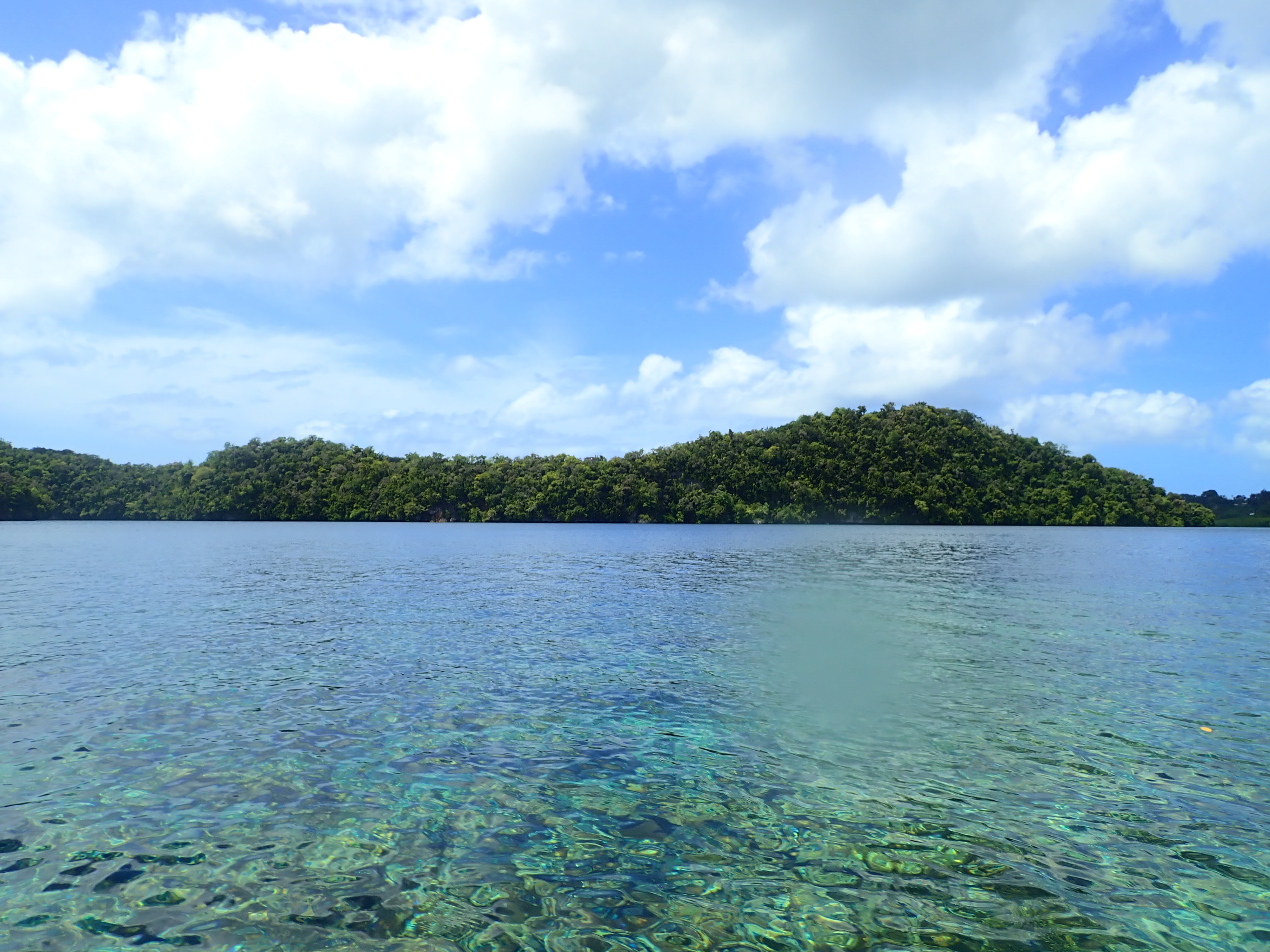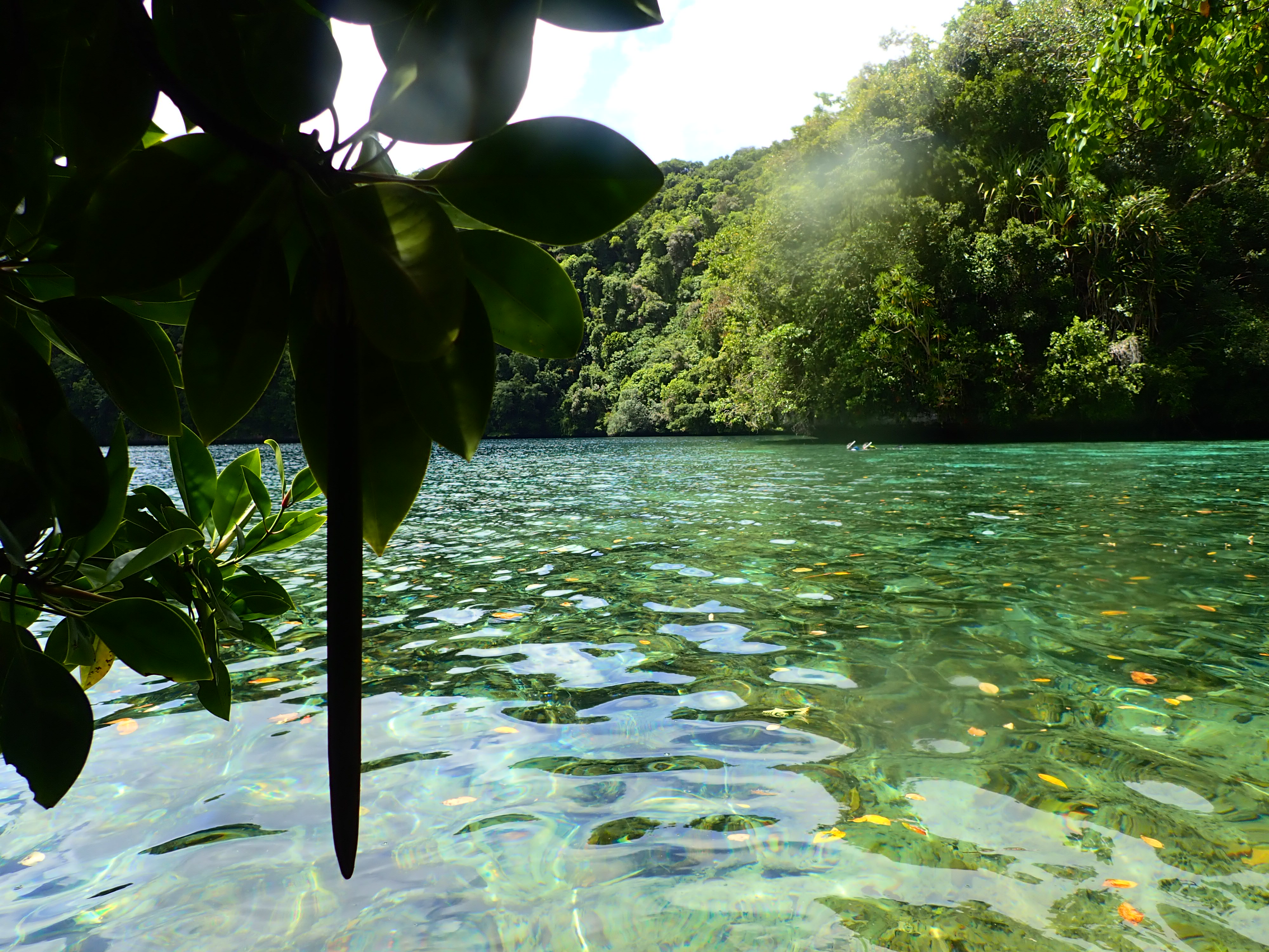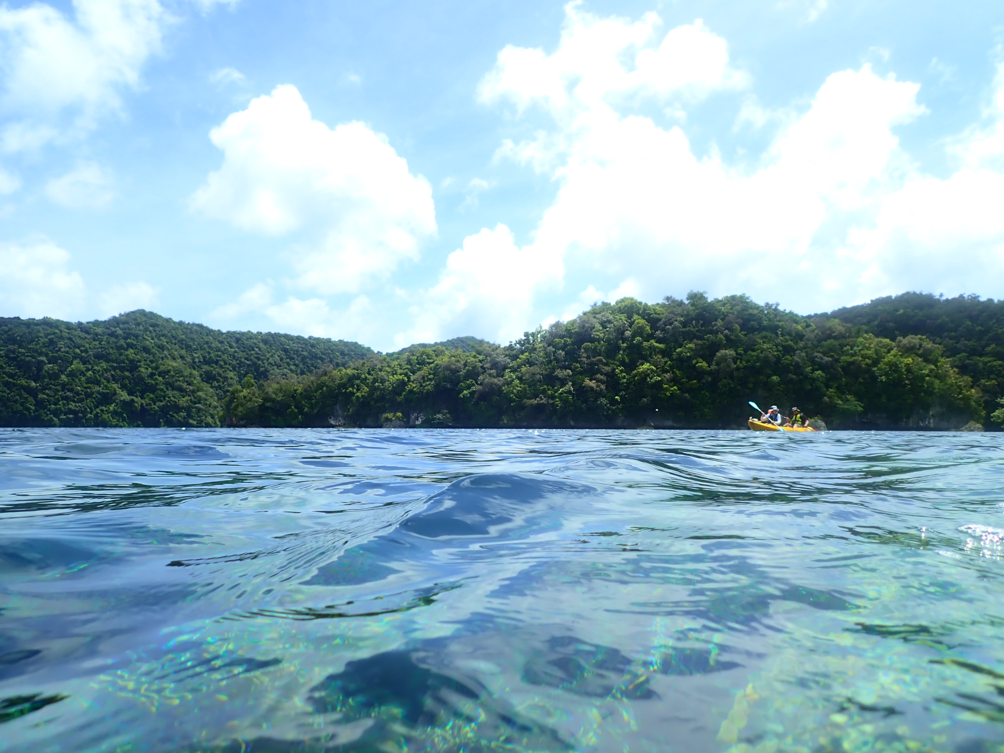 いつもの入り江でスノーケル。ここは誰も来ない場所なのでいつも貸し切り。波も無く穏やかなポイントなのでじっくりと水中観察が出来ます。ワンダフルワールド・パラオではスノーケルの時間はお客さんの要望に応じてゆっくりと楽しんで頂いています。
