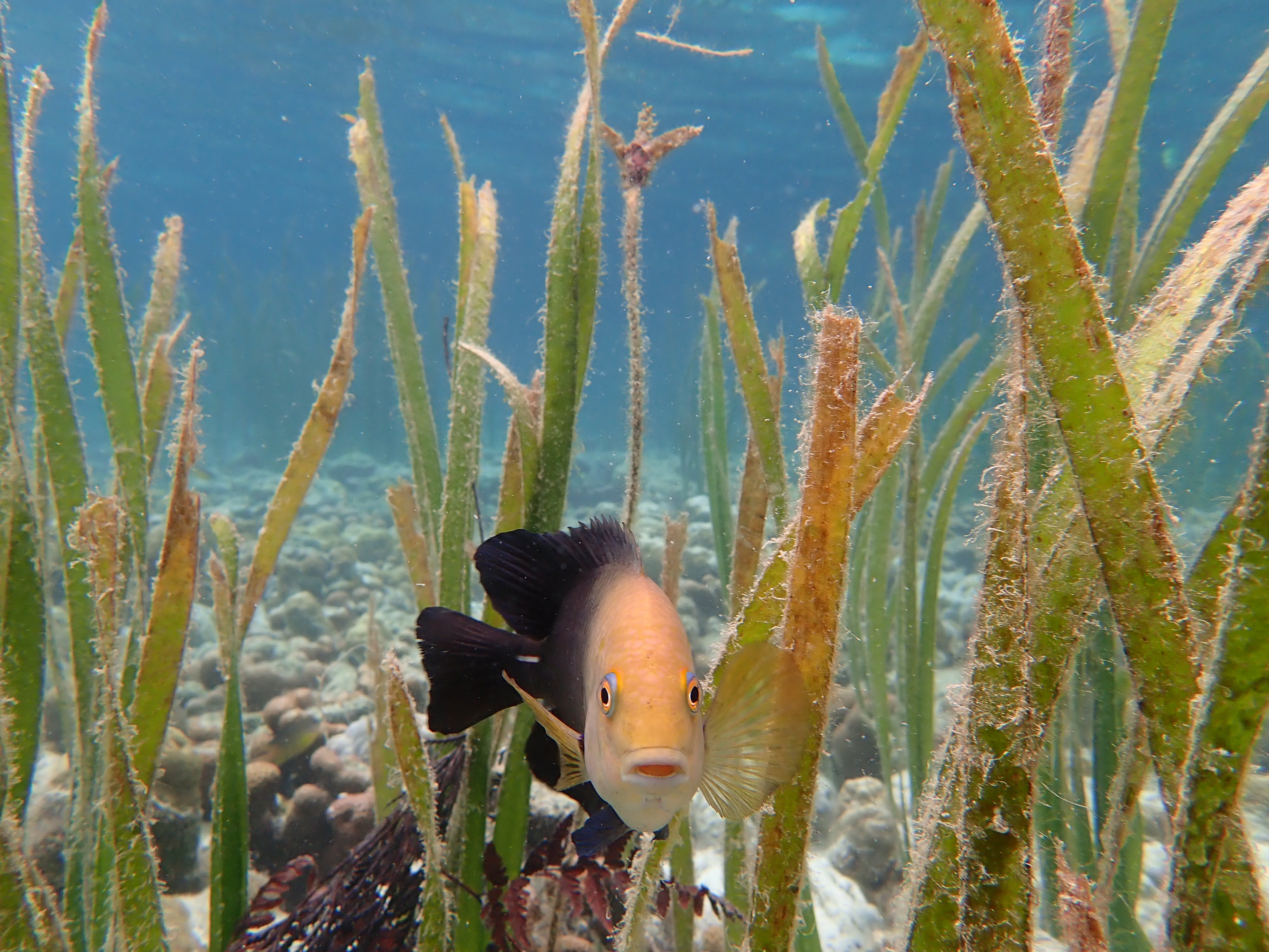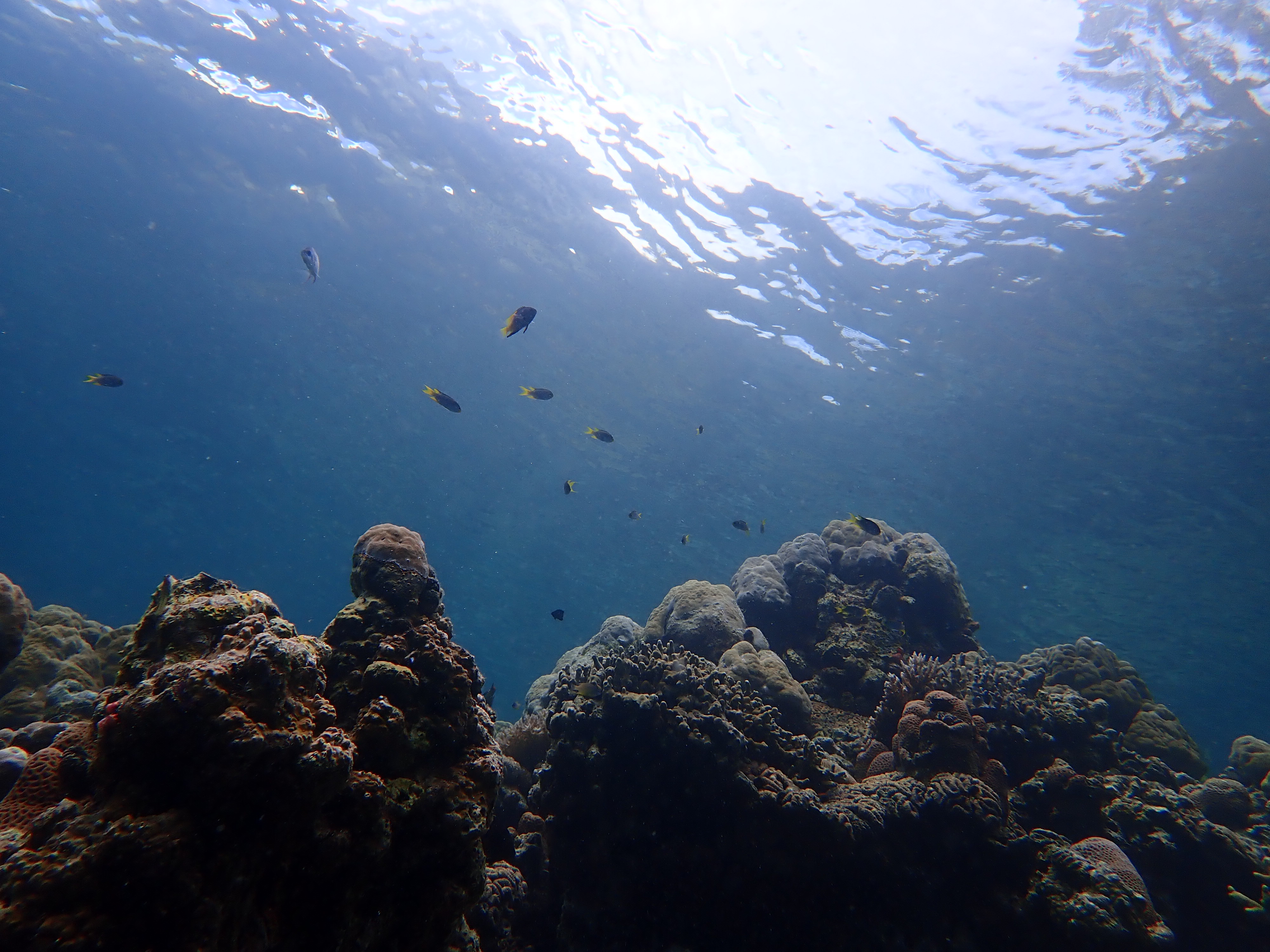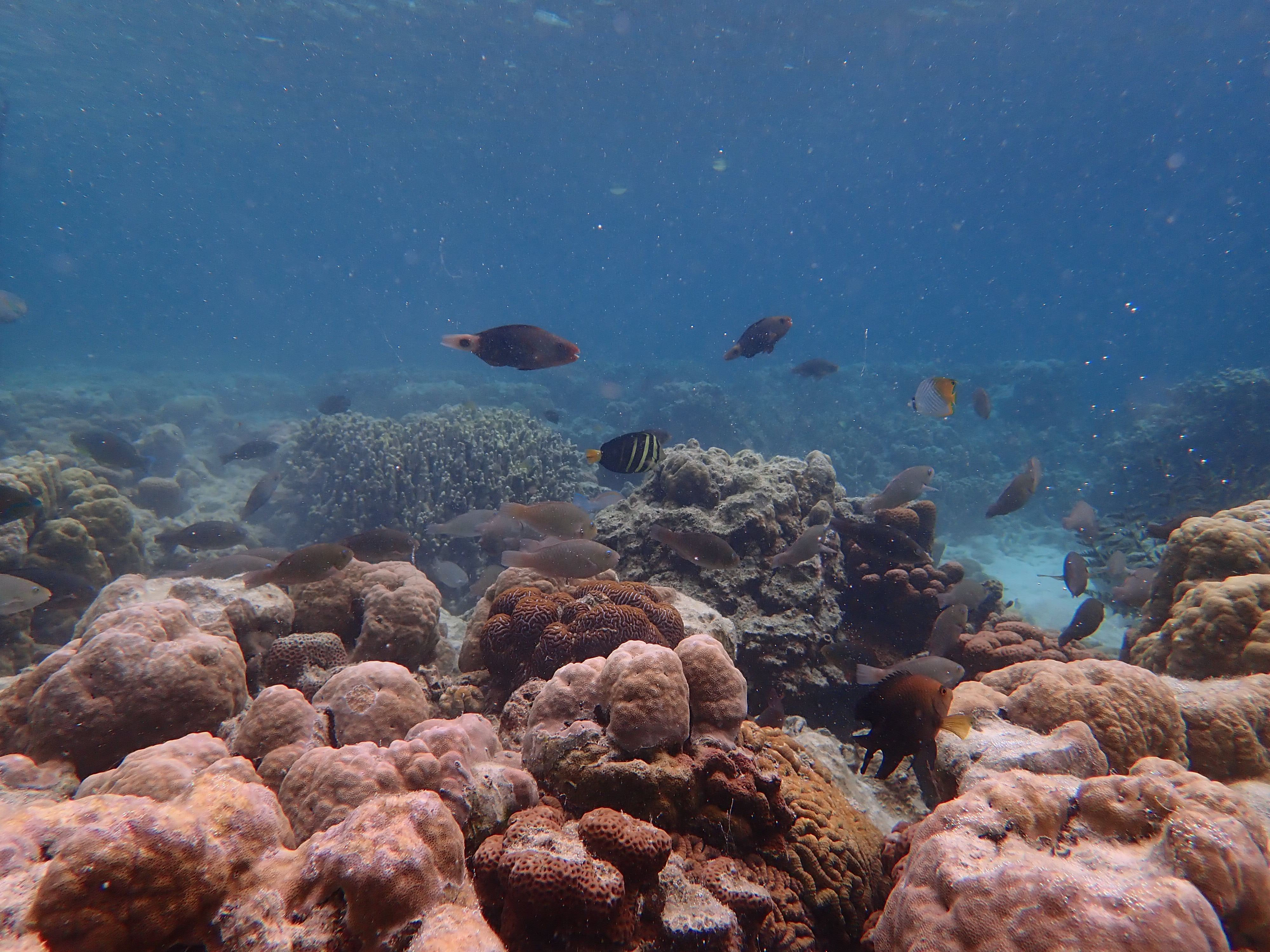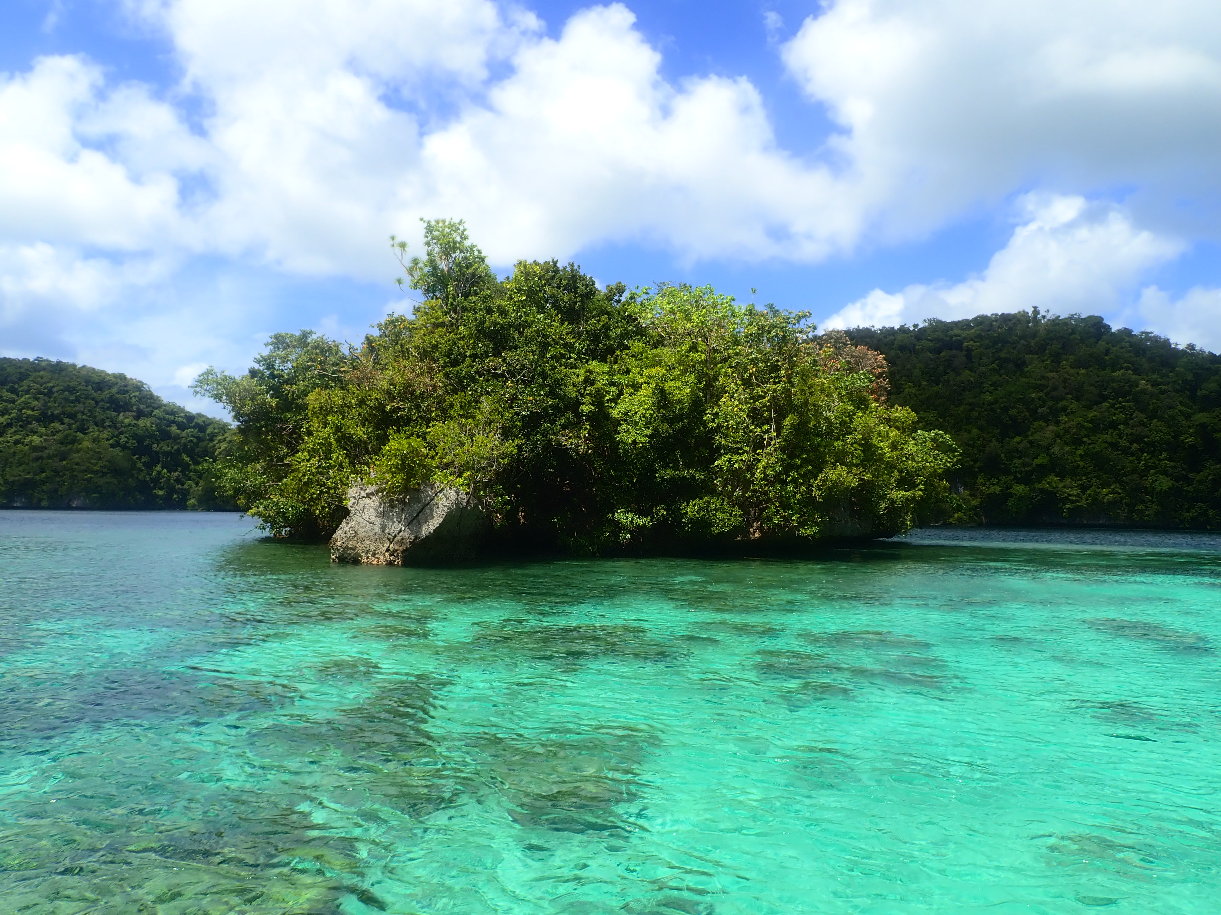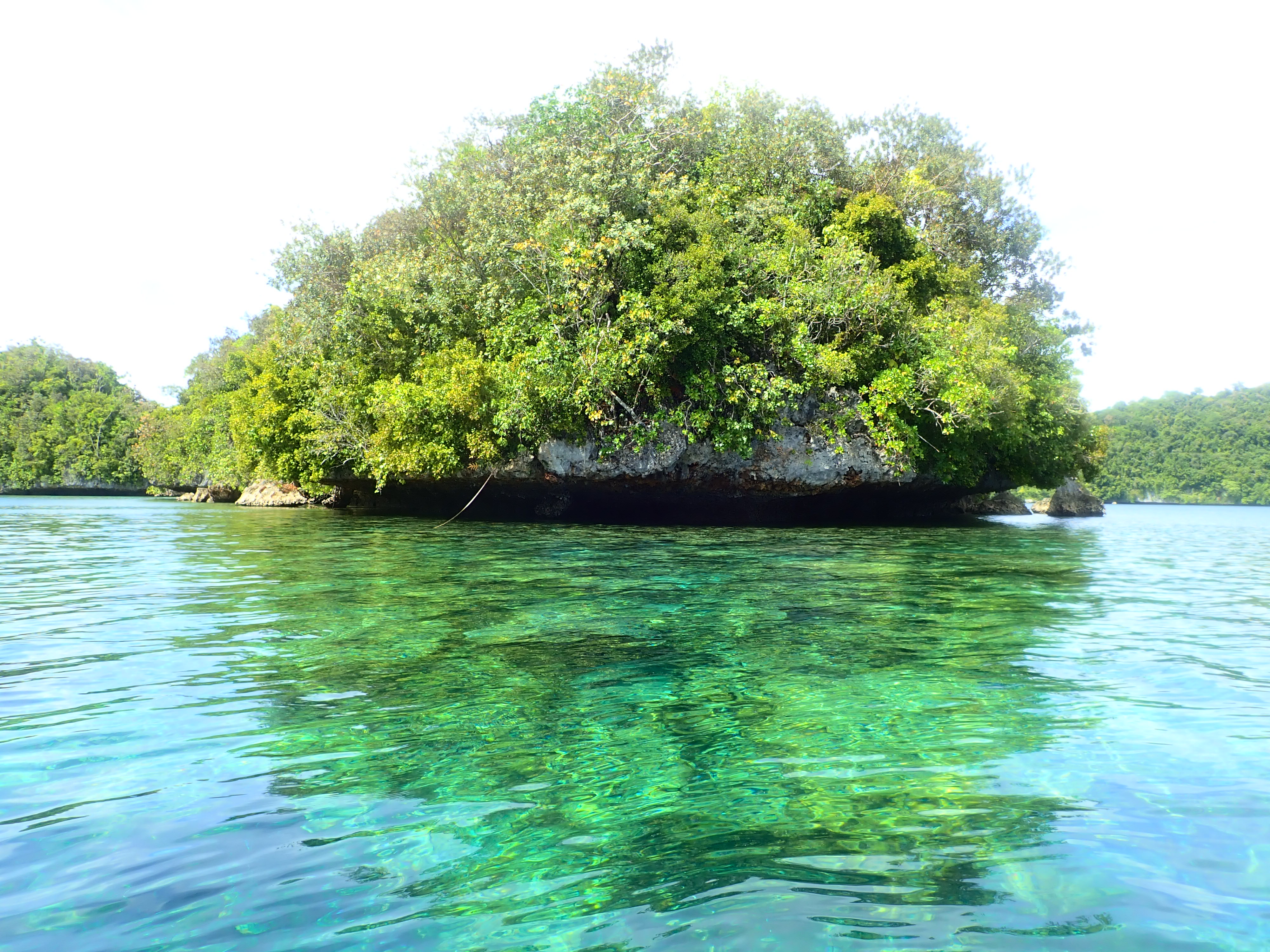 いつもの入り江でスノーケル。ここは誰も来ない場所なのでいつも貸し切り。波も無く穏やかなポイントなのでじっくりと水中観察が出来ます。ワンダフルワールド・パラオではスノーケルの時間はお客さんの要望に応じてゆっくりと楽しんで頂いています。