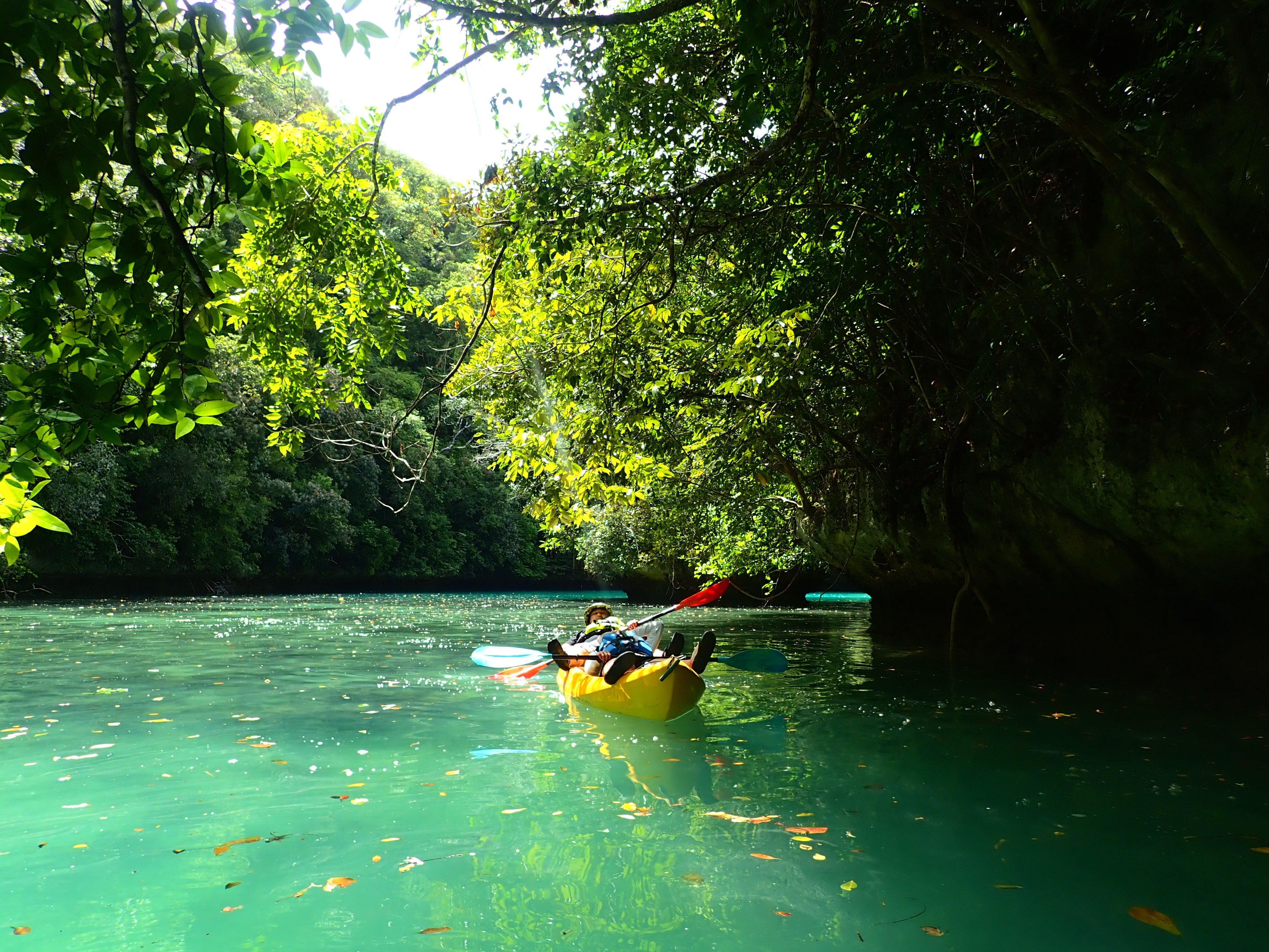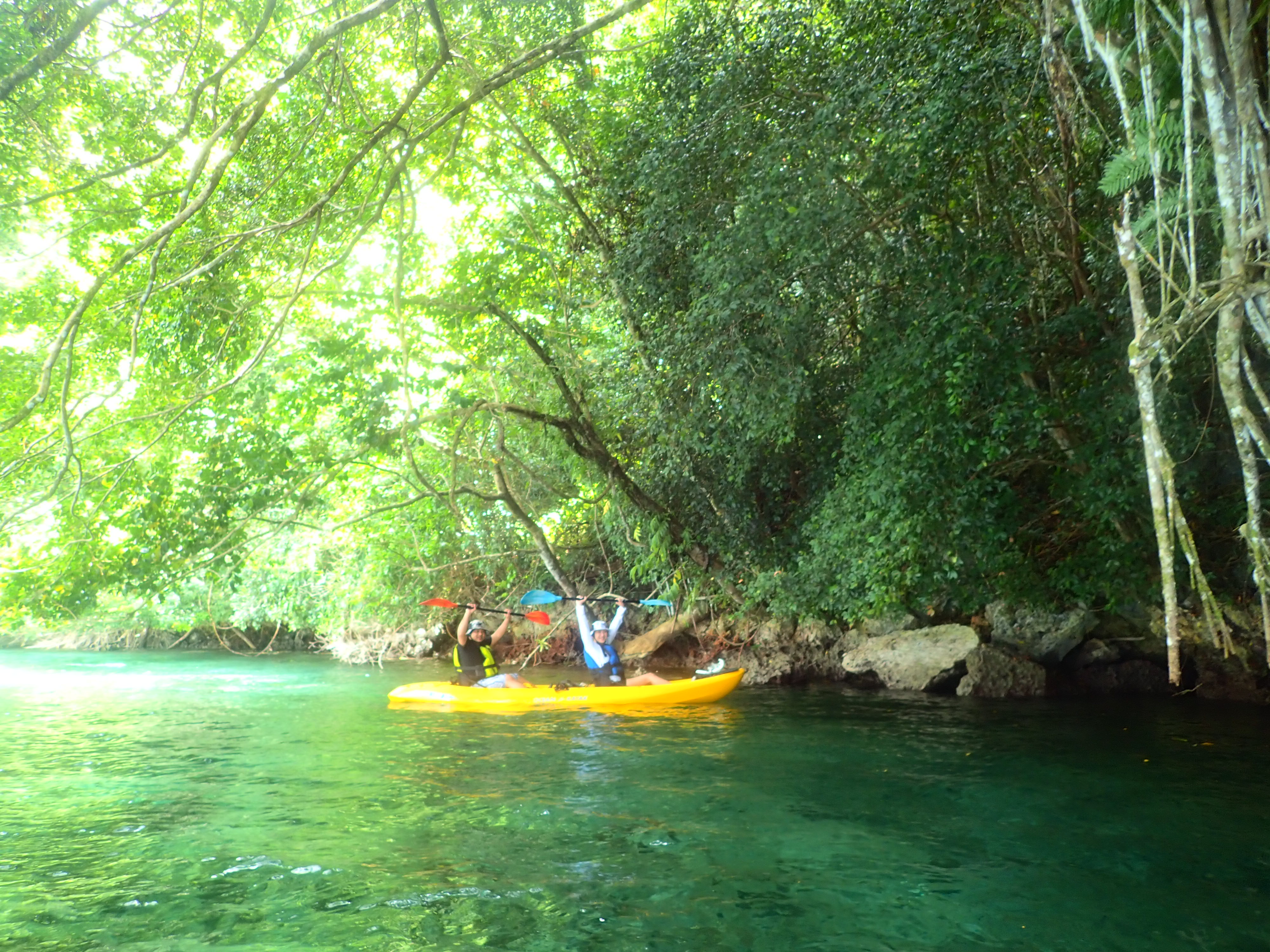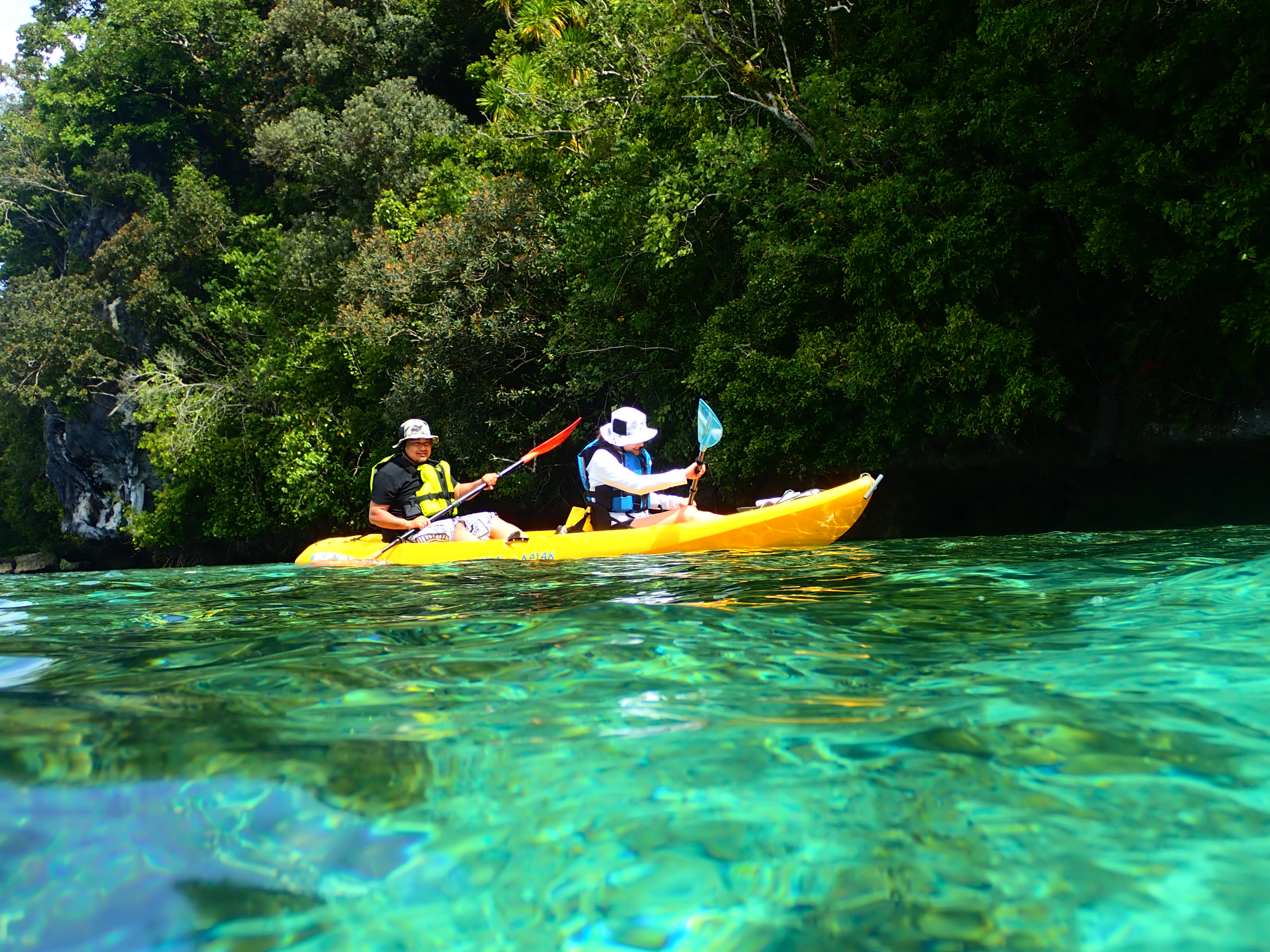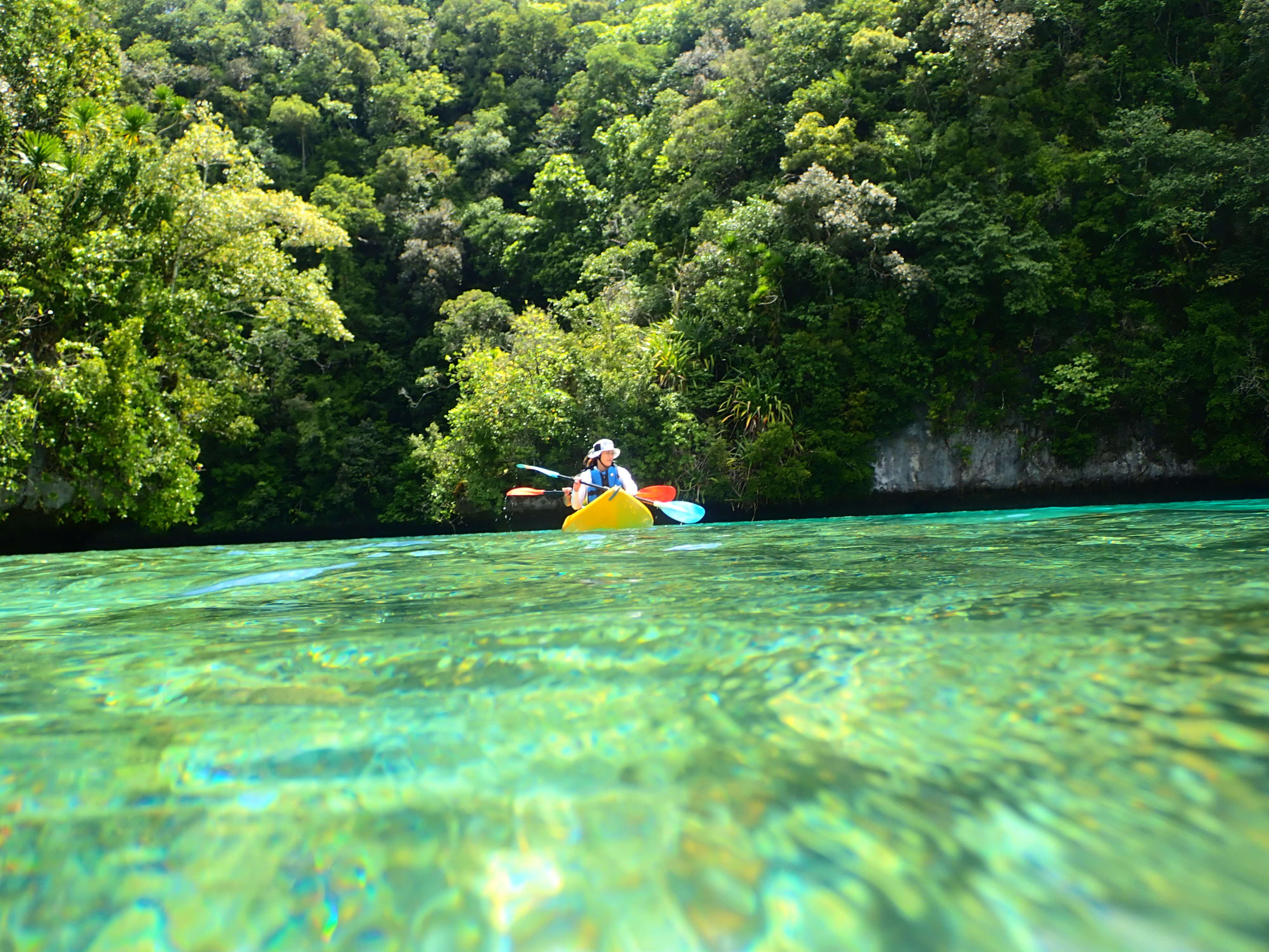 帰り道も美しい浅瀬をのんびり漕ぎます。透明度が良い浅瀬はまるで天然のプールみたいです。