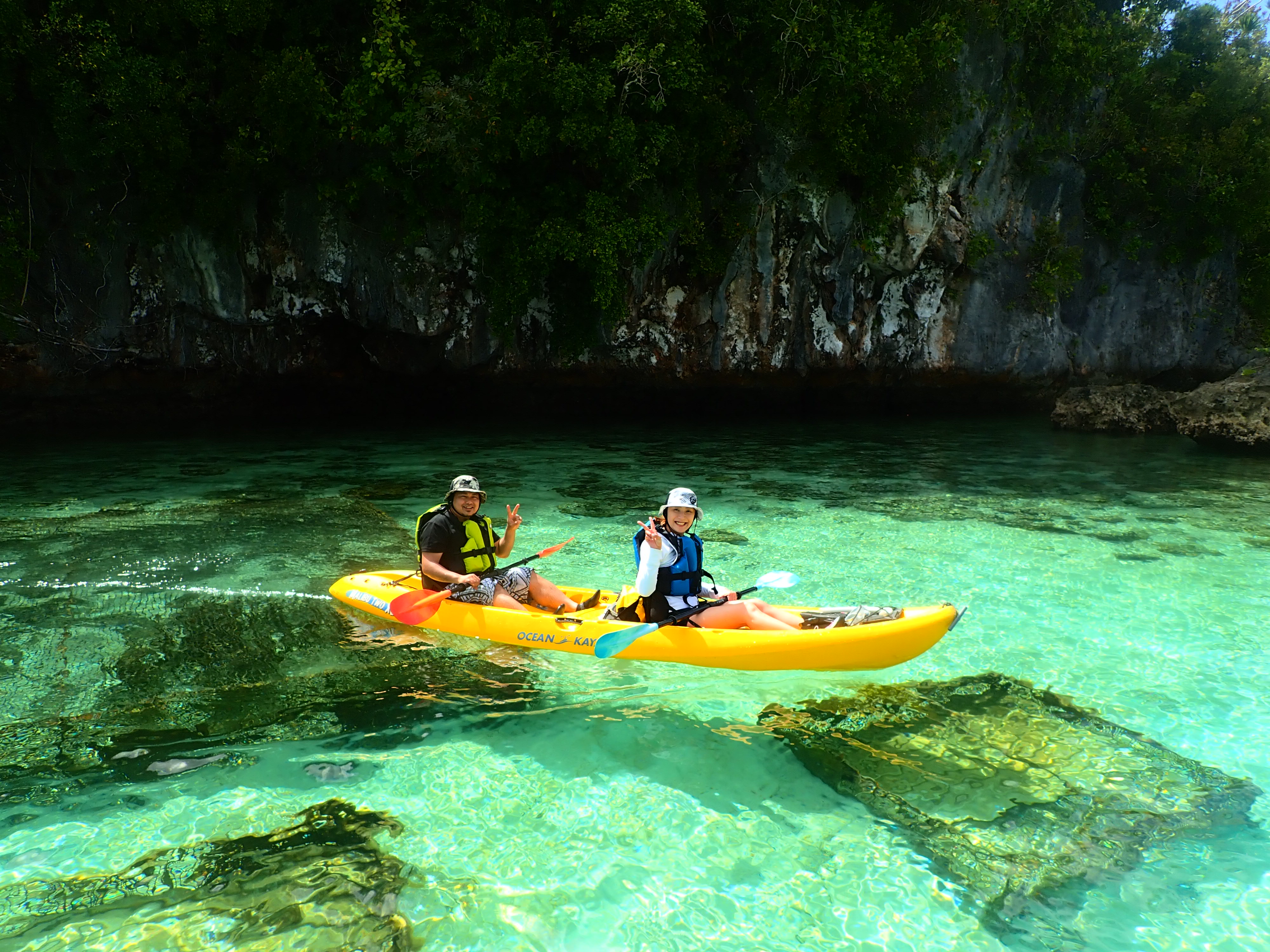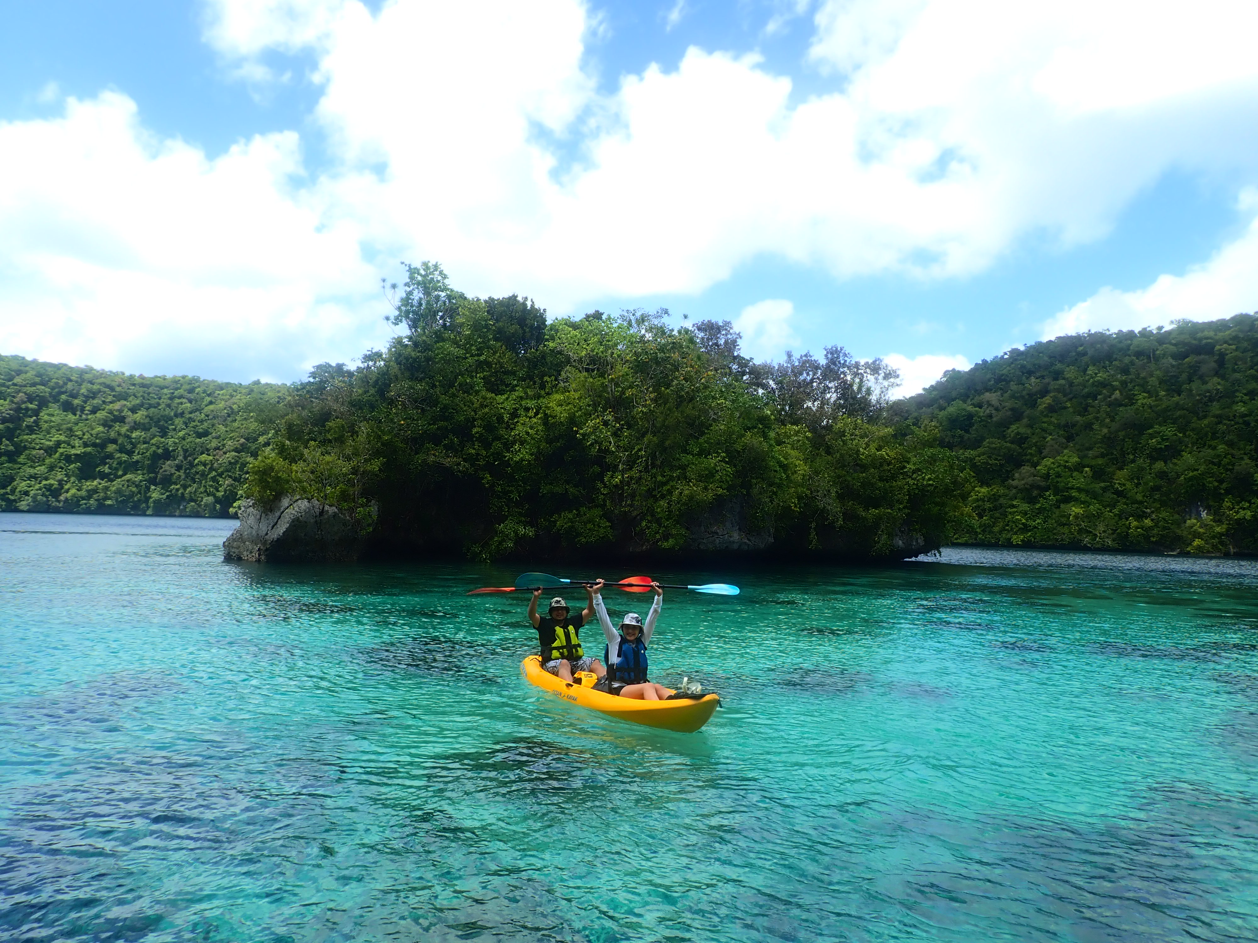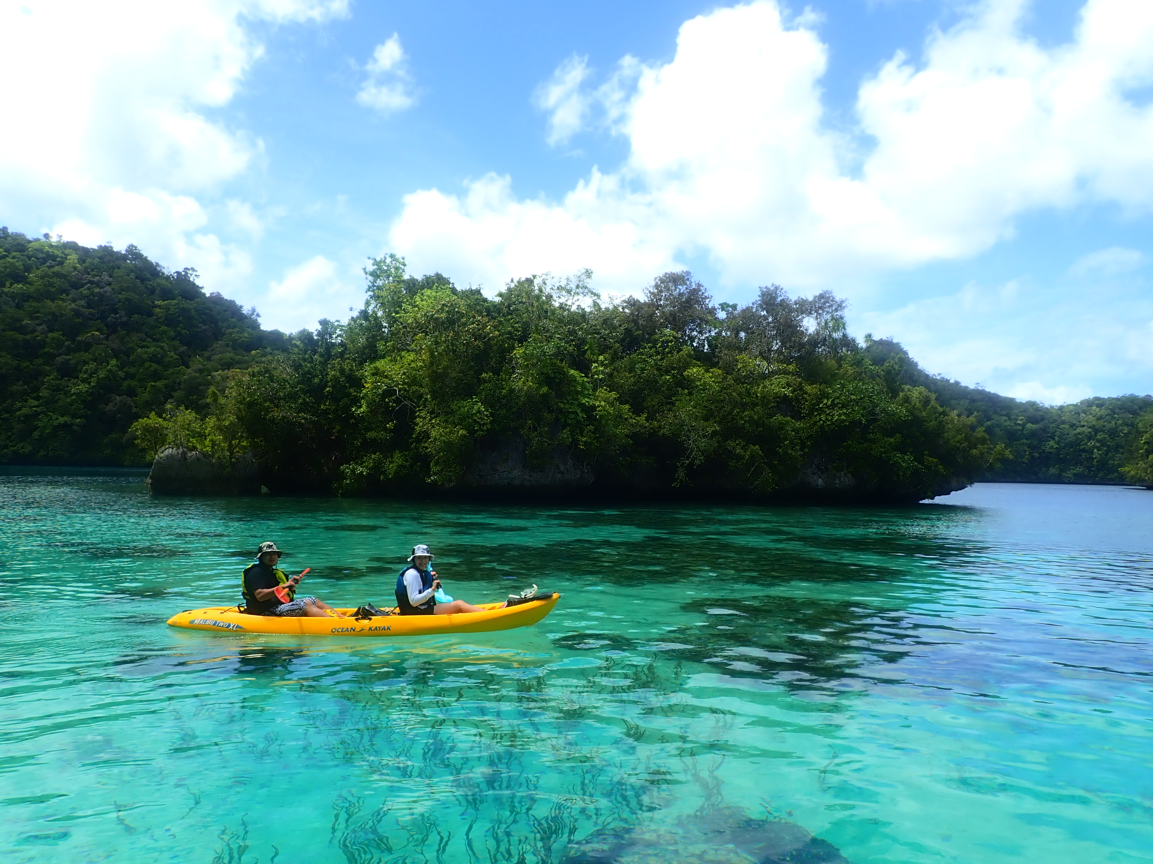 帰り道も美しい浅瀬をのんびり漕ぎます。透明度が良い浅瀬はまるで天然のプールみたいです。