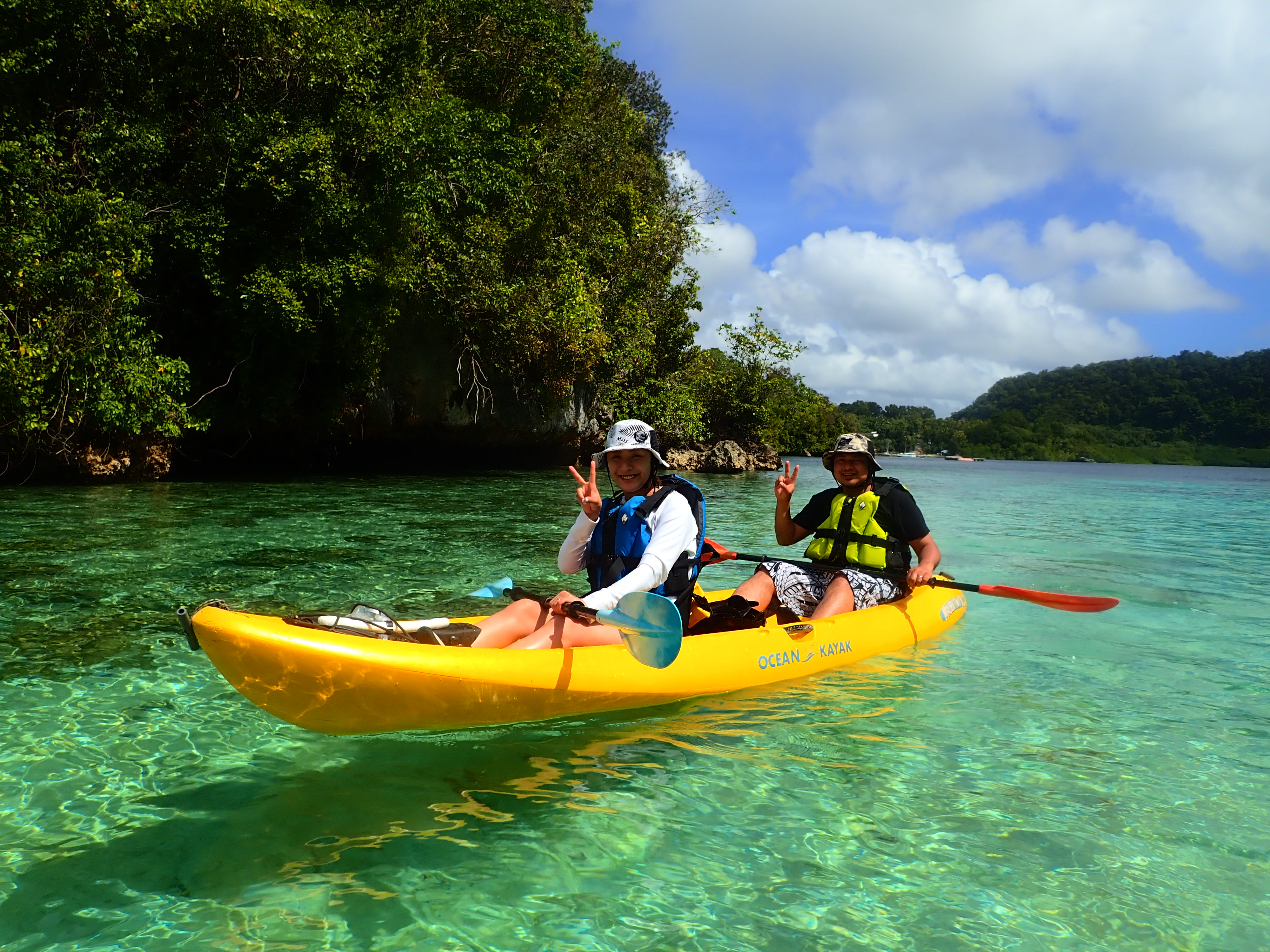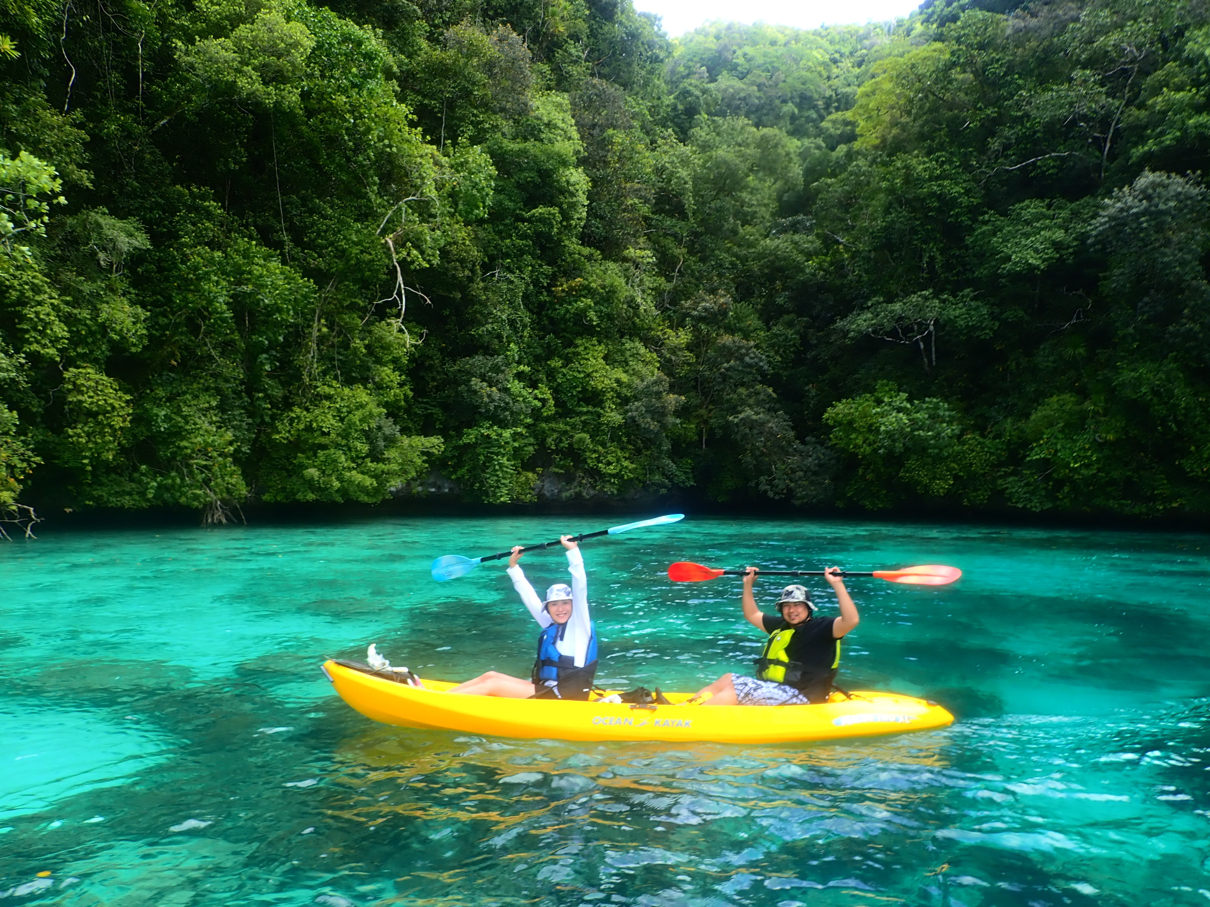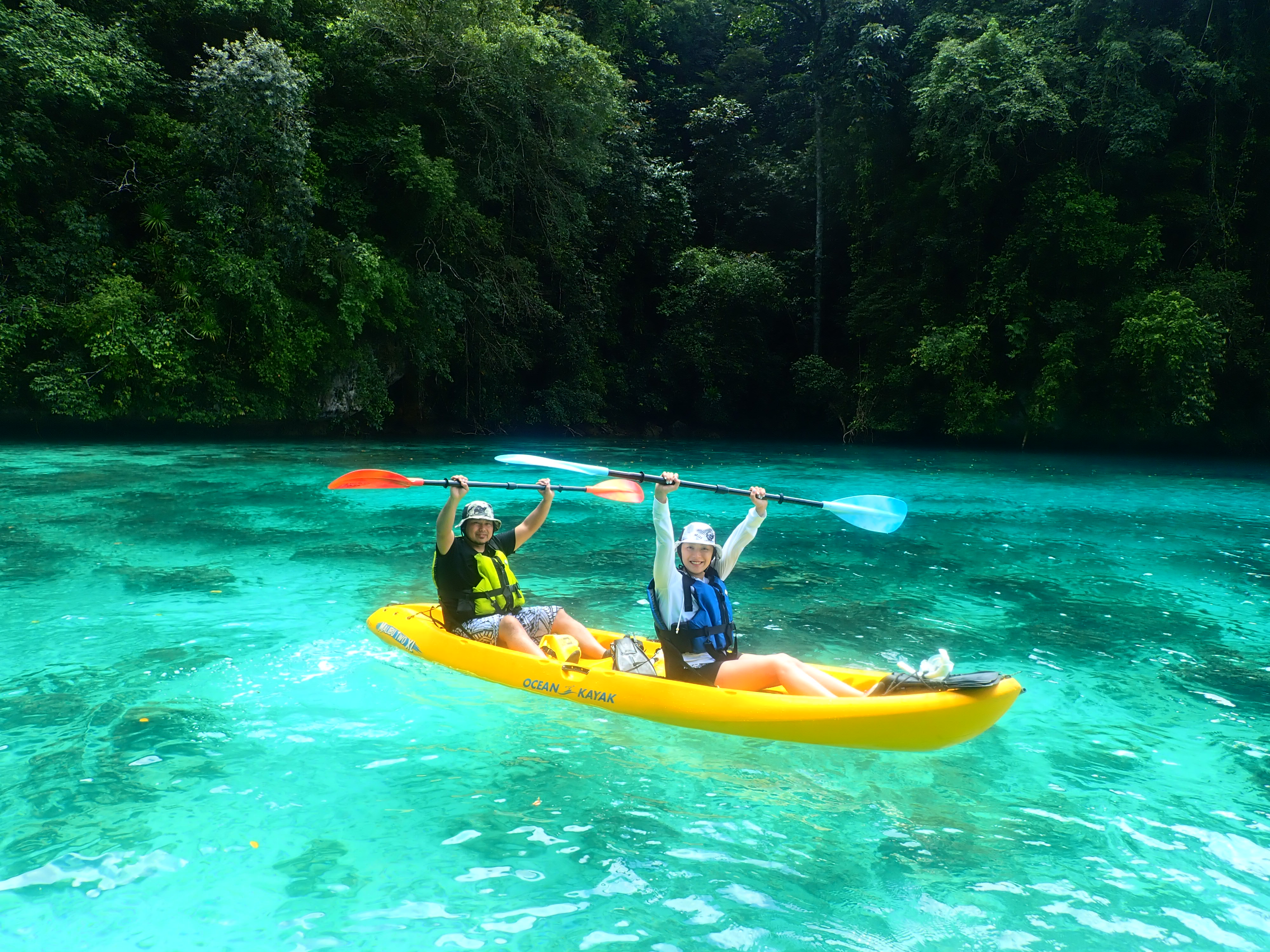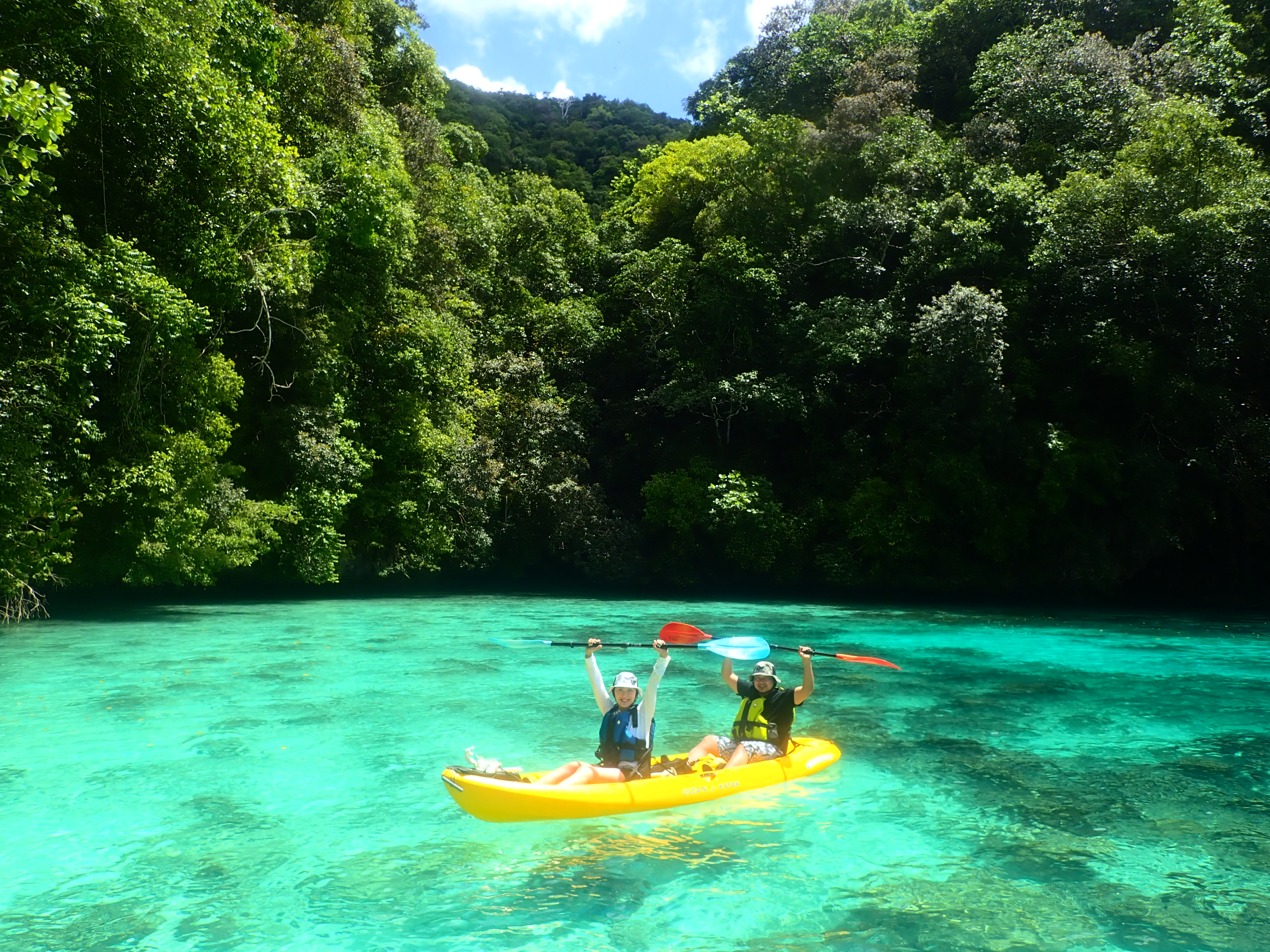 帰り道も美しい浅瀬をのんびり漕ぎます。透明度が良い浅瀬はまるで天然のプールみたいです。