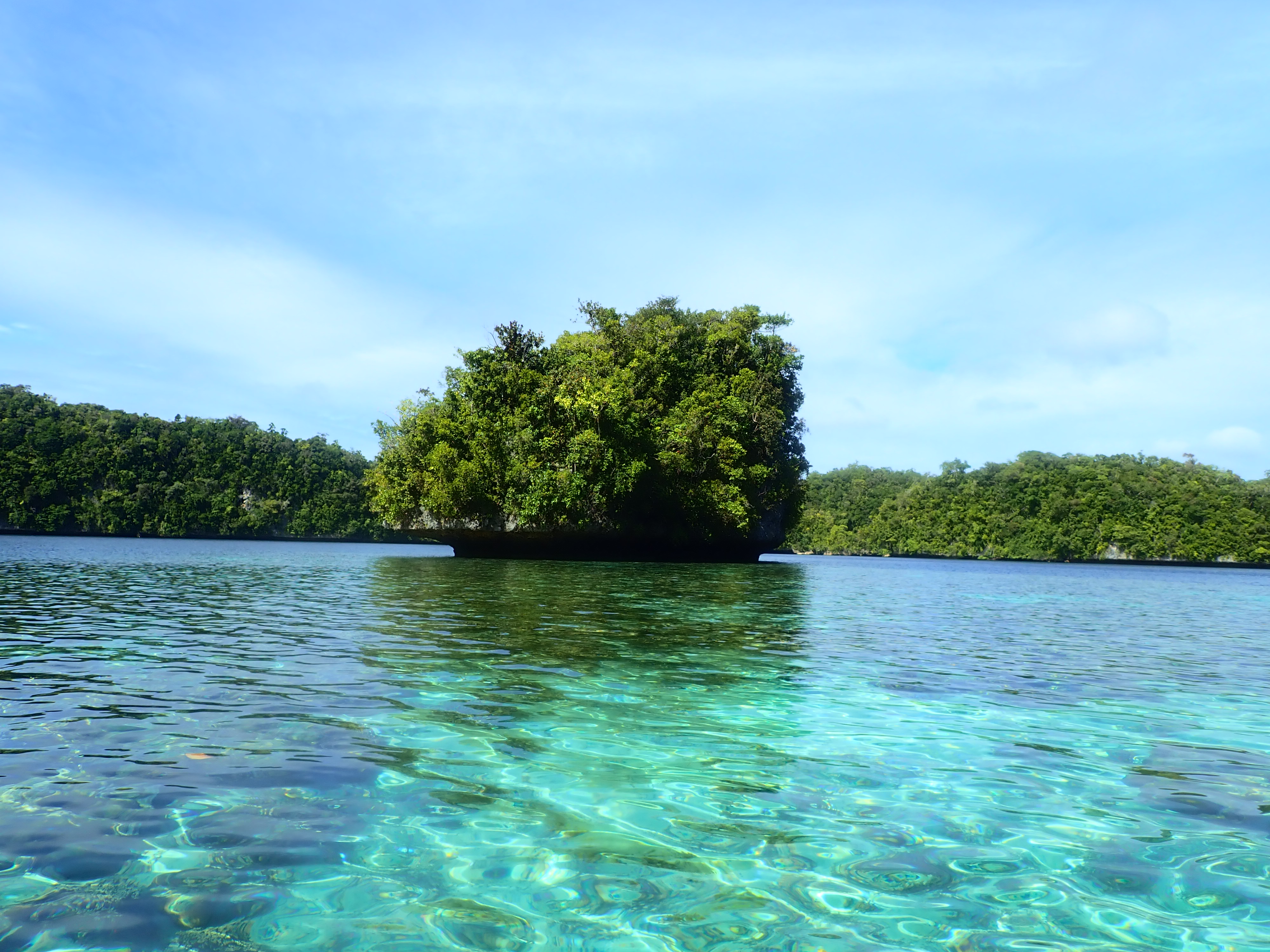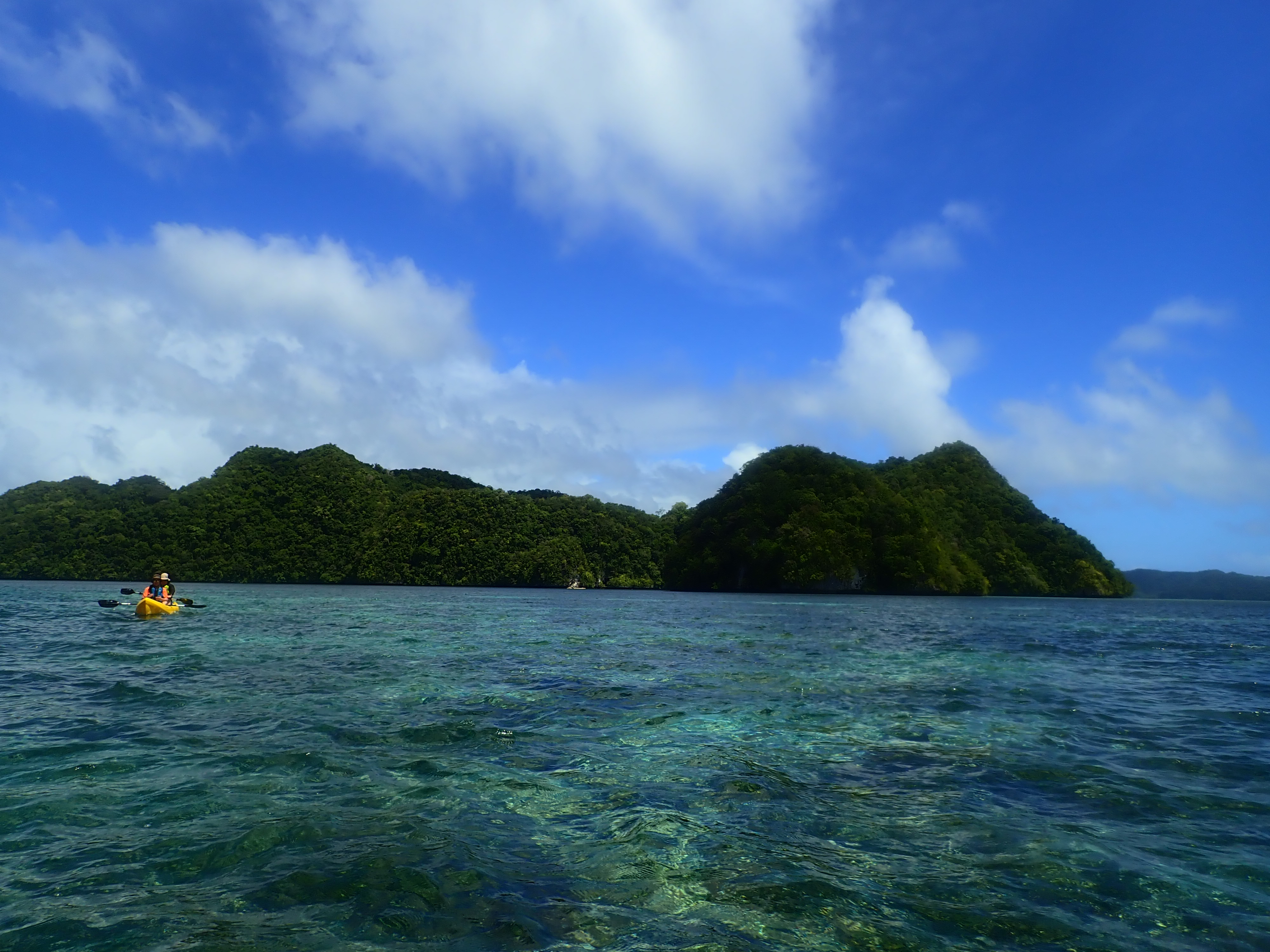 天候はさらに良くなり、パラオらしい青空が広がりました。青い空、ジャングルの鮮やかな緑、何色にも変わる海の色合い、これがパラオの景観の醍醐味です。