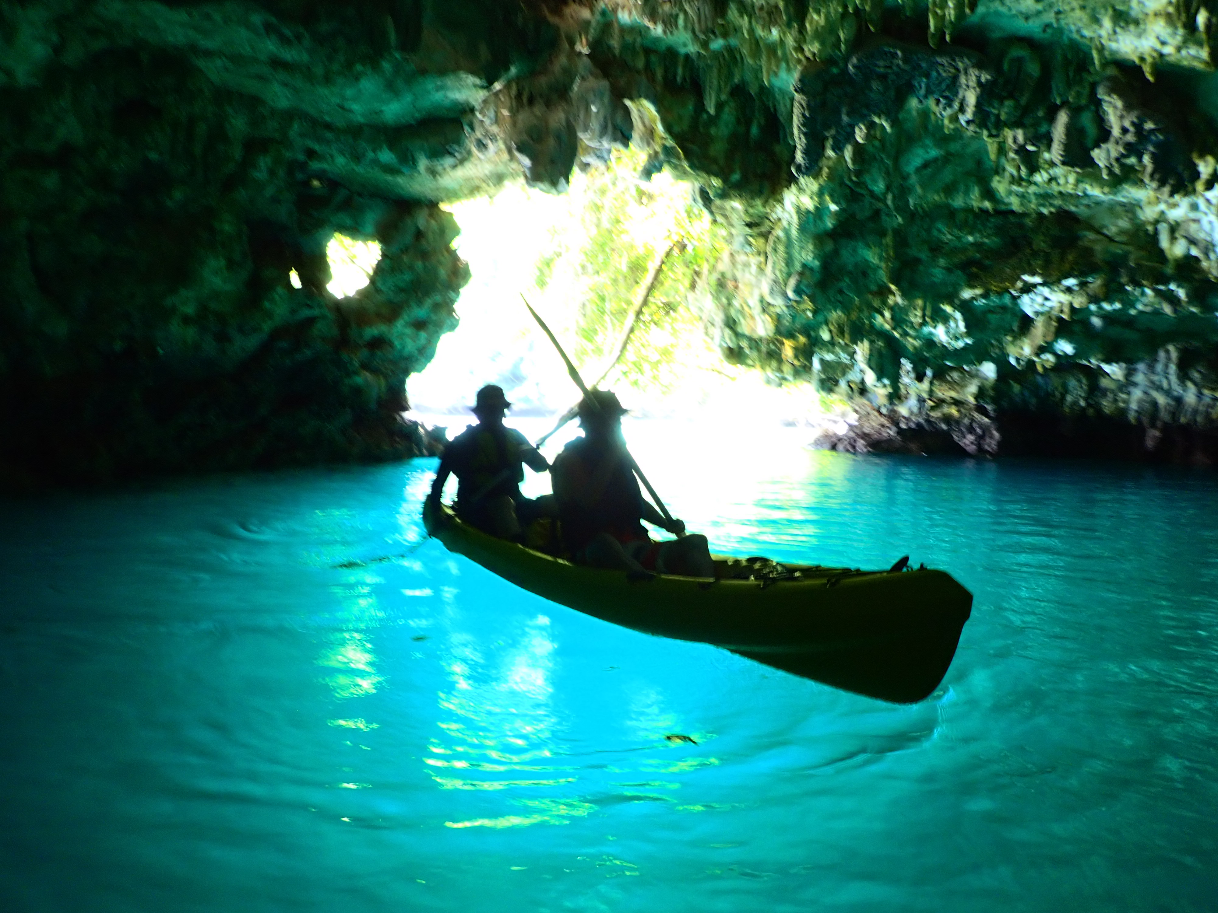 午後も何か所か洞窟を巡ります。カヤックで入れる洞窟や、上陸しないと入れない洞窟、それぞれ個性があり、面白いです。