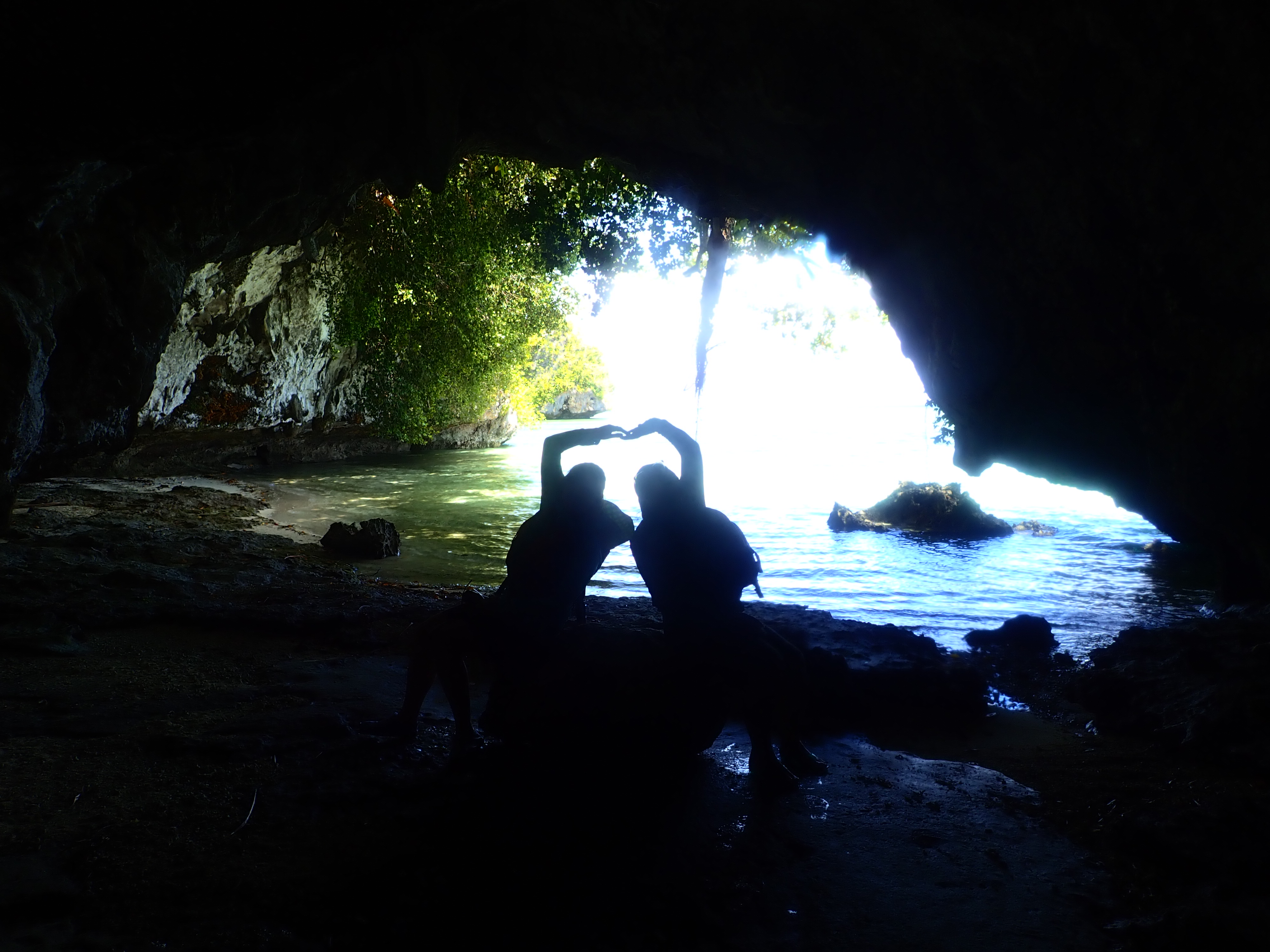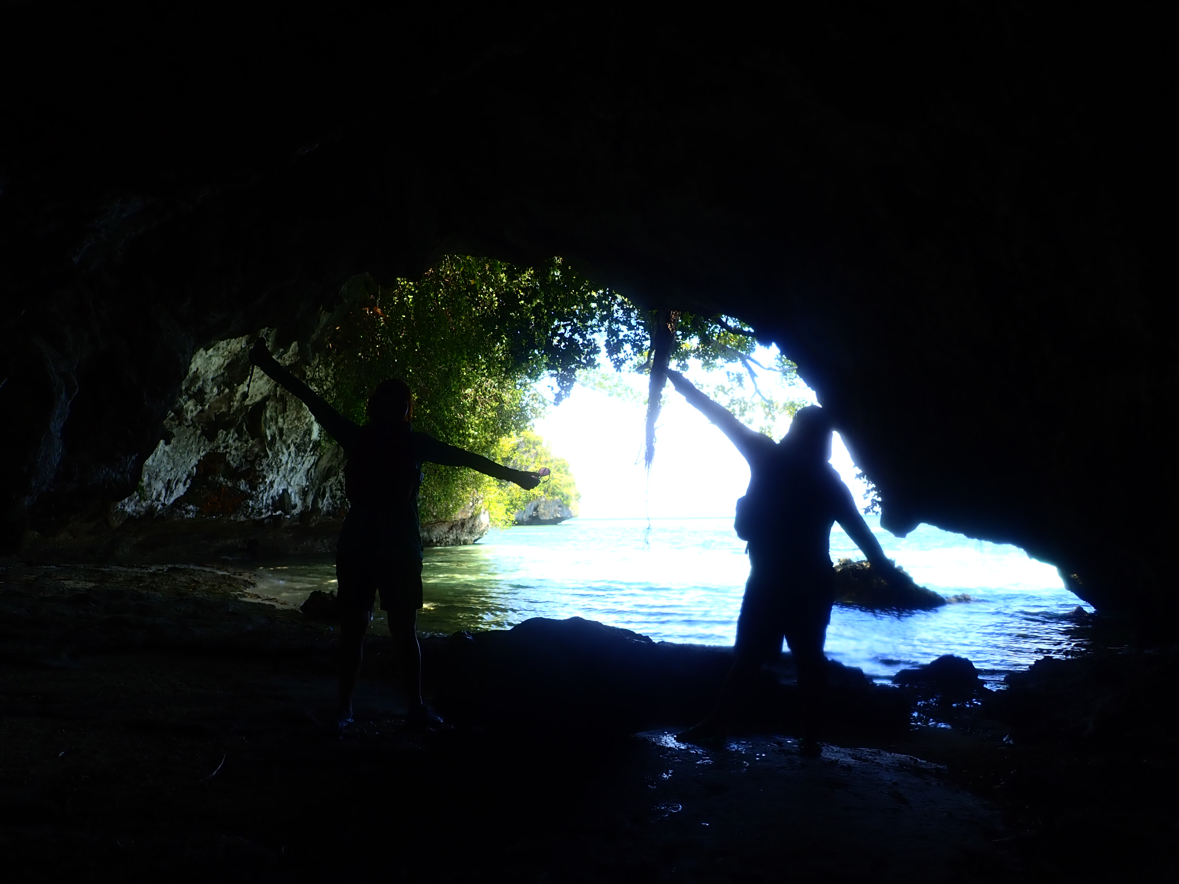 パラオの天候は変わりやすく、雨が降ってきました。洞窟内で少々雨宿り。
