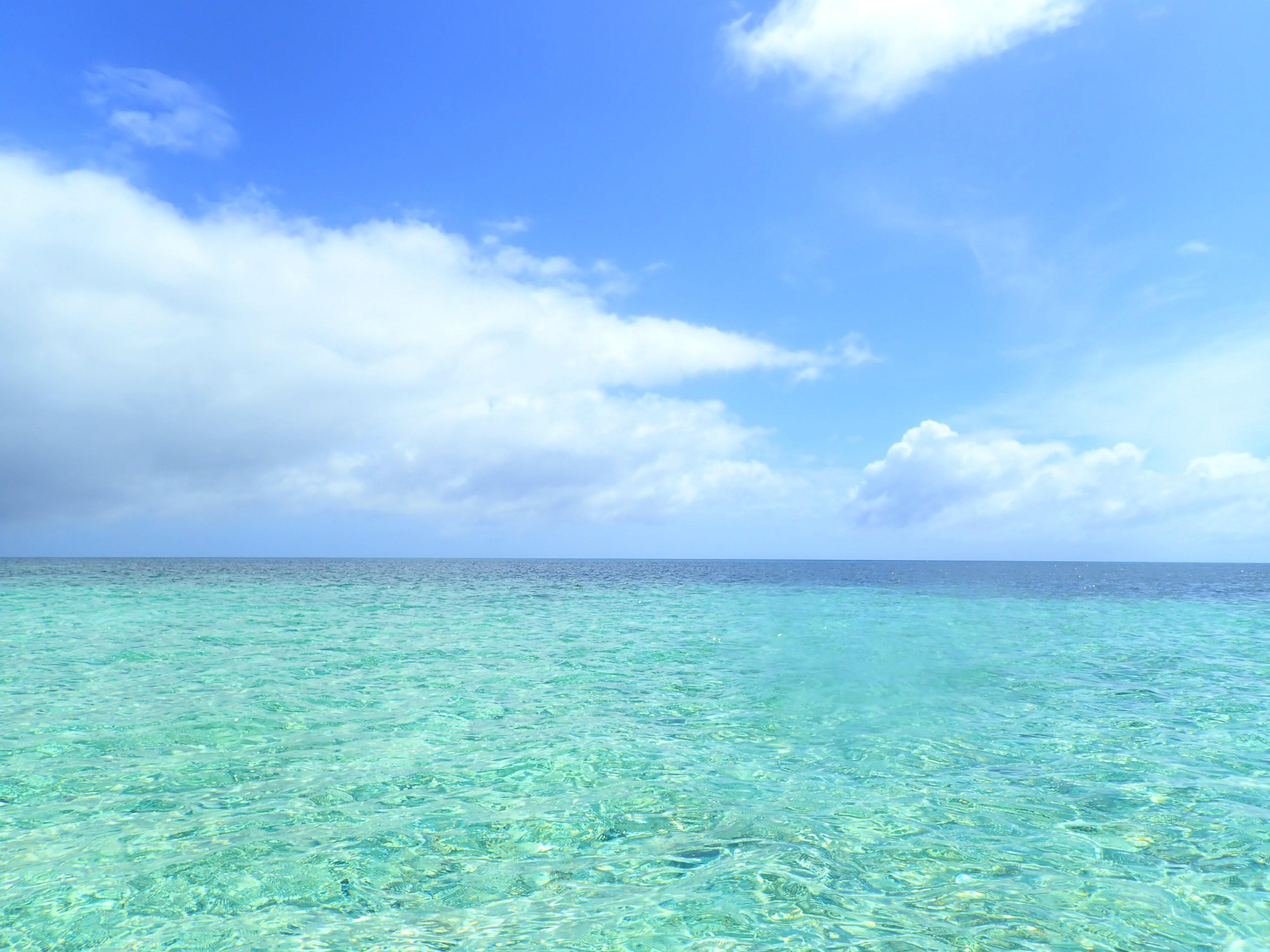 場所によってはこんなクリスタルブルーの海もあります。同じ海でも場所によって様々な色合いが楽しめます。