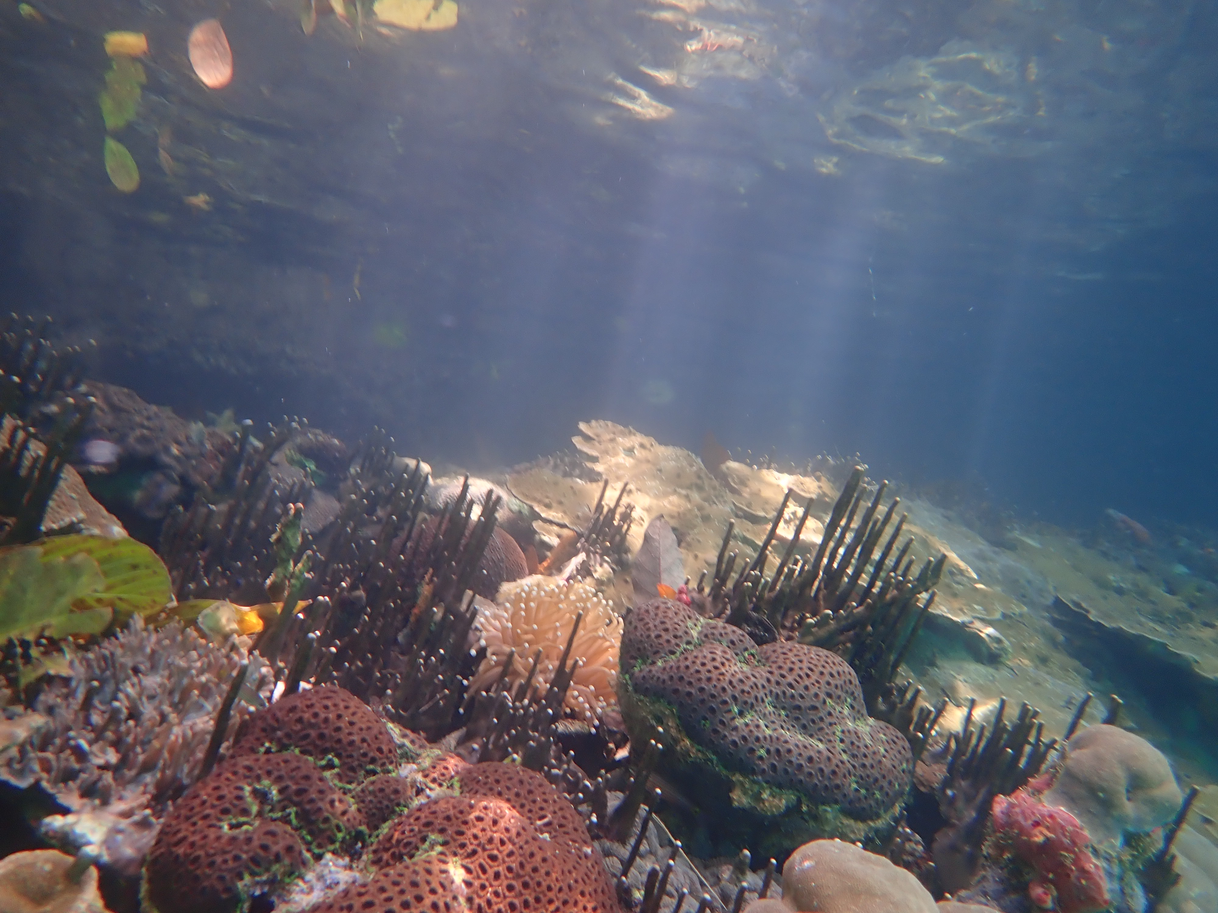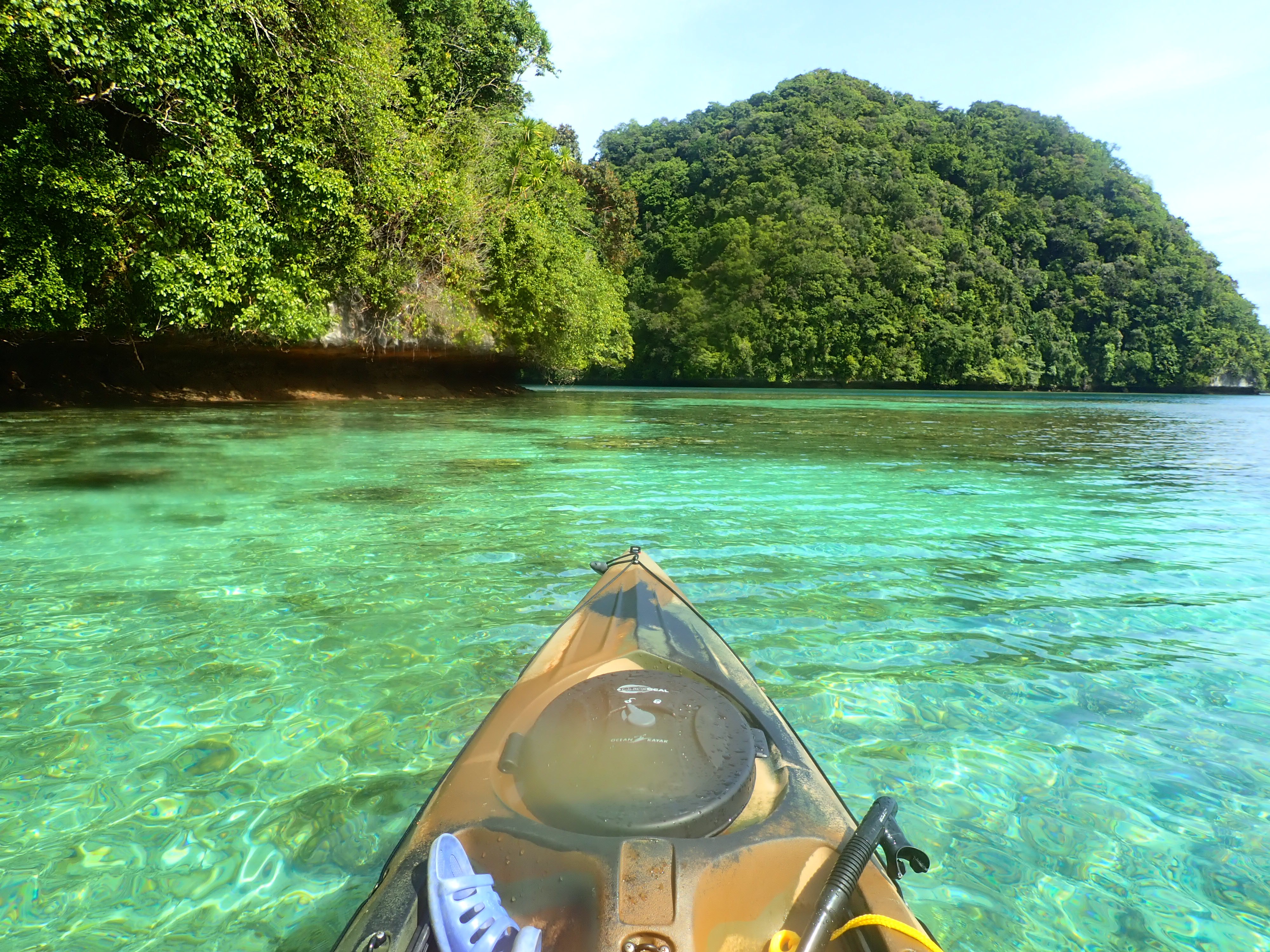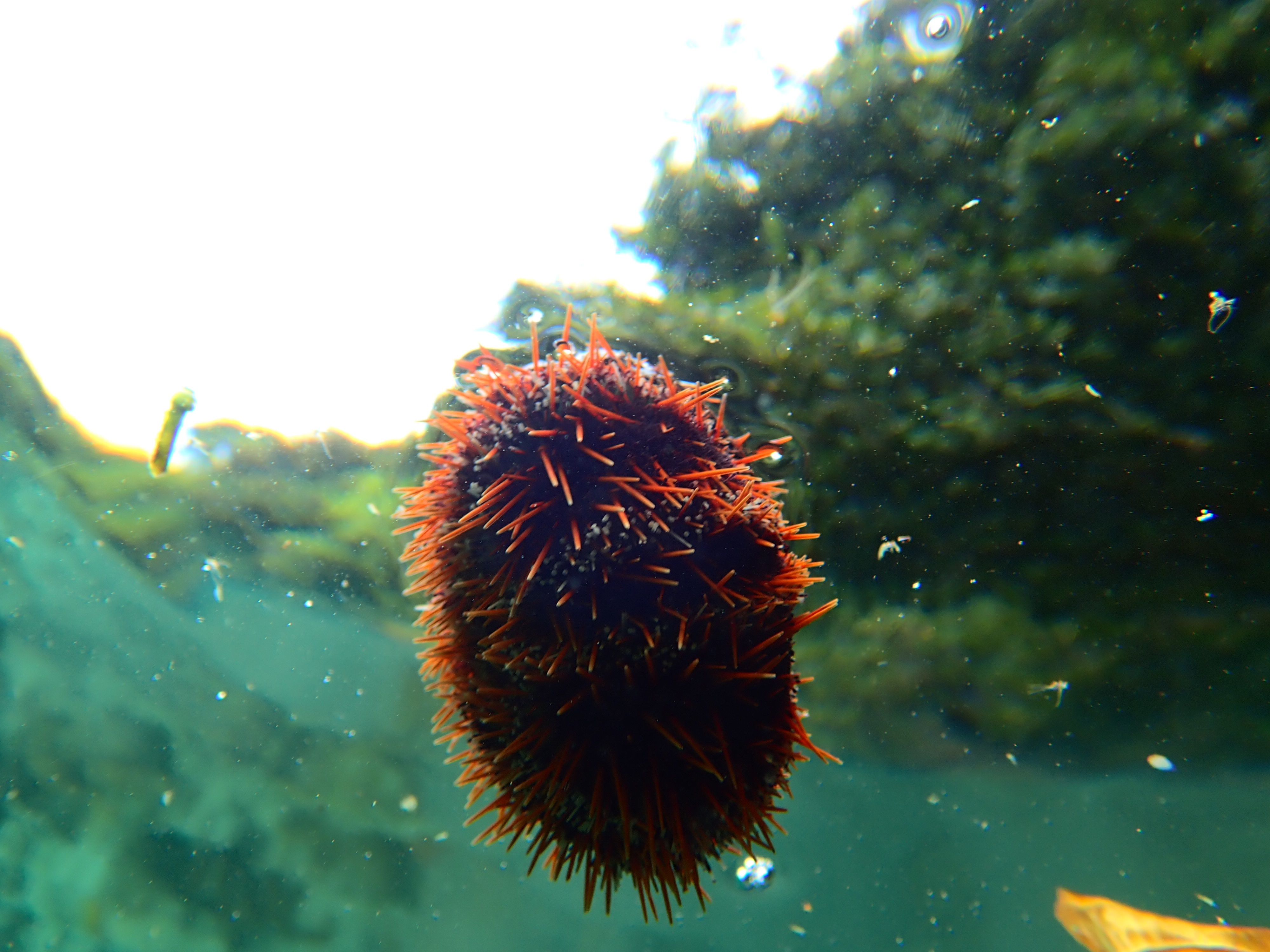 ん?何か見慣れない物体が浮いていました。まだ生きているウニが流れて浮いていたようです。カヤックの上に乗せるとモゾモゾと動いていました。小さなウニですが、ローカルはこのウニも食べます。実は極少量ですが、味はちゃんとウニです。