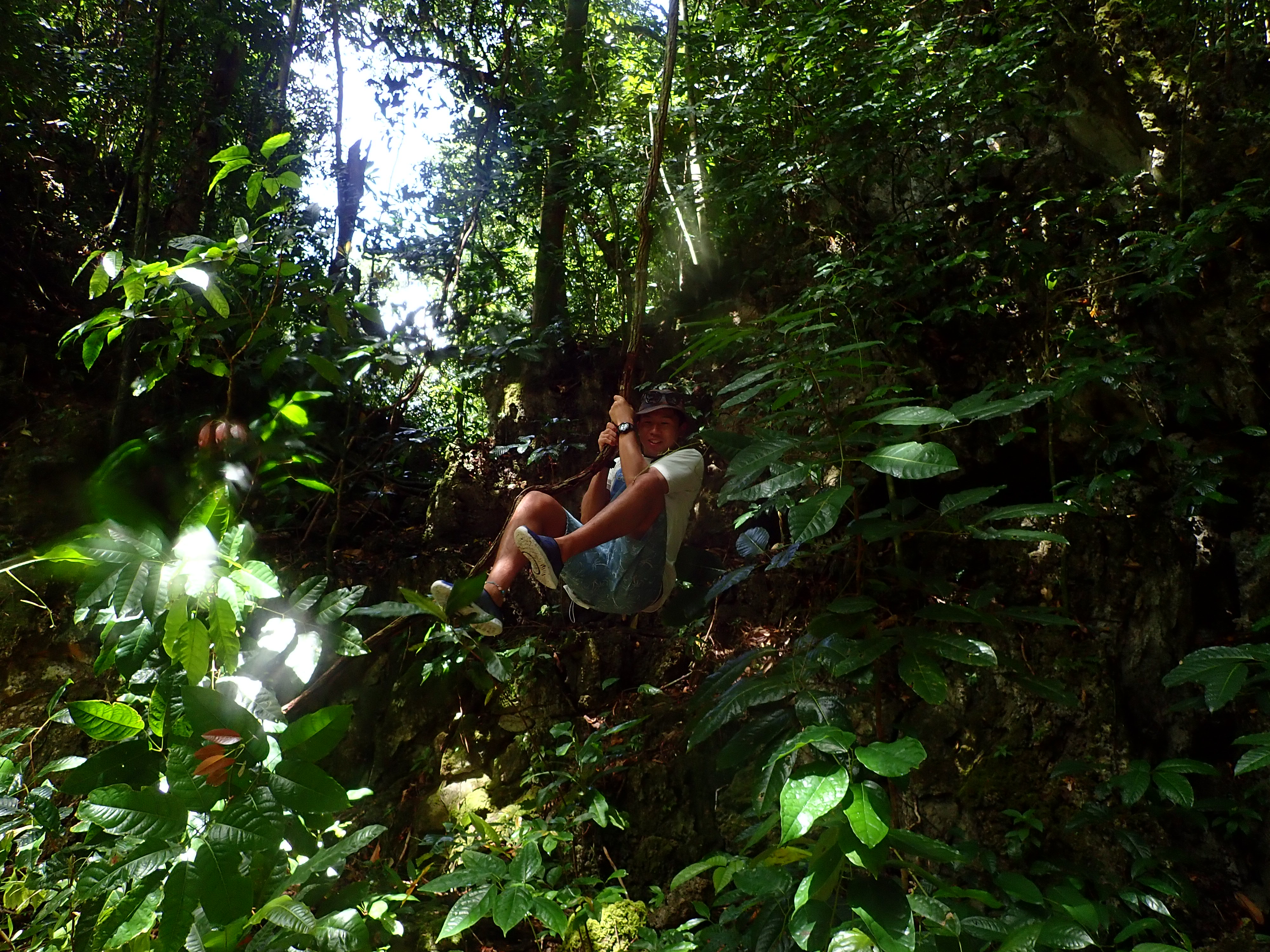 お昼は無人島の岩場でジャングルランチ。丈夫なツタがあったのでターザンごっこも楽しめました。