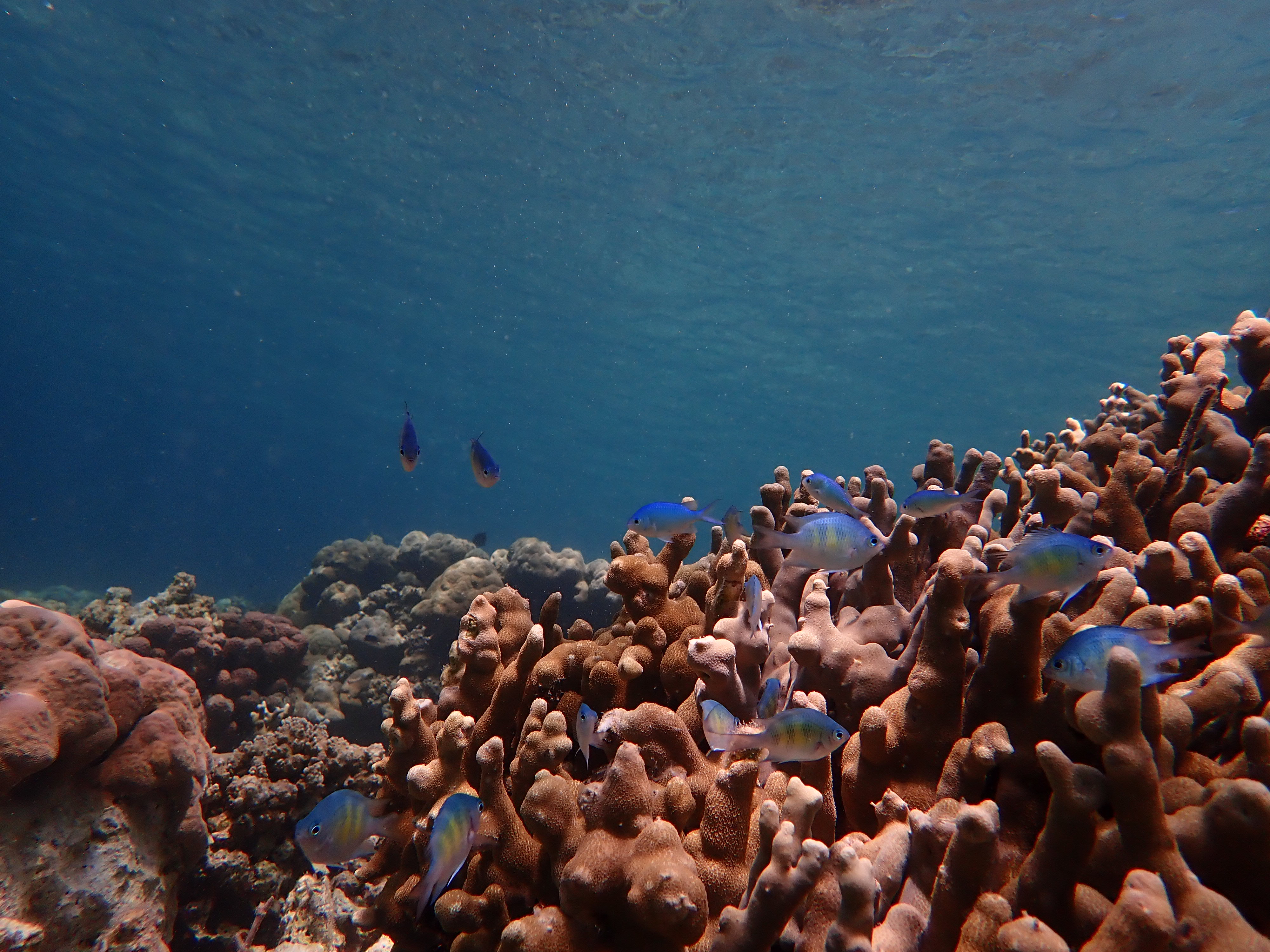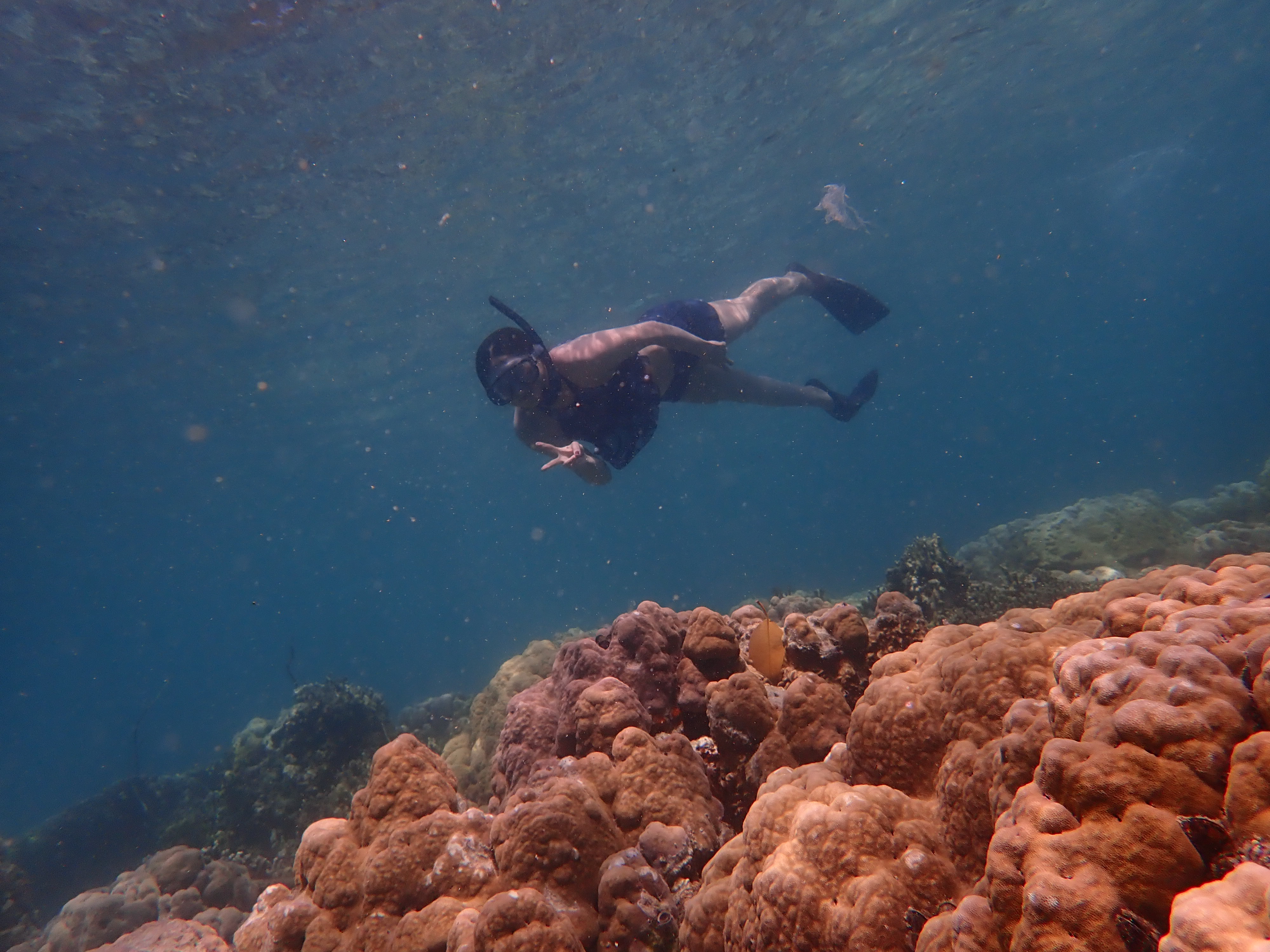 穏やかな入江でのんびりとスノーケル。外洋とは違った雰囲気を楽しめ、様々な種類の珊瑚や魚達を近くで見る事が出来ます。