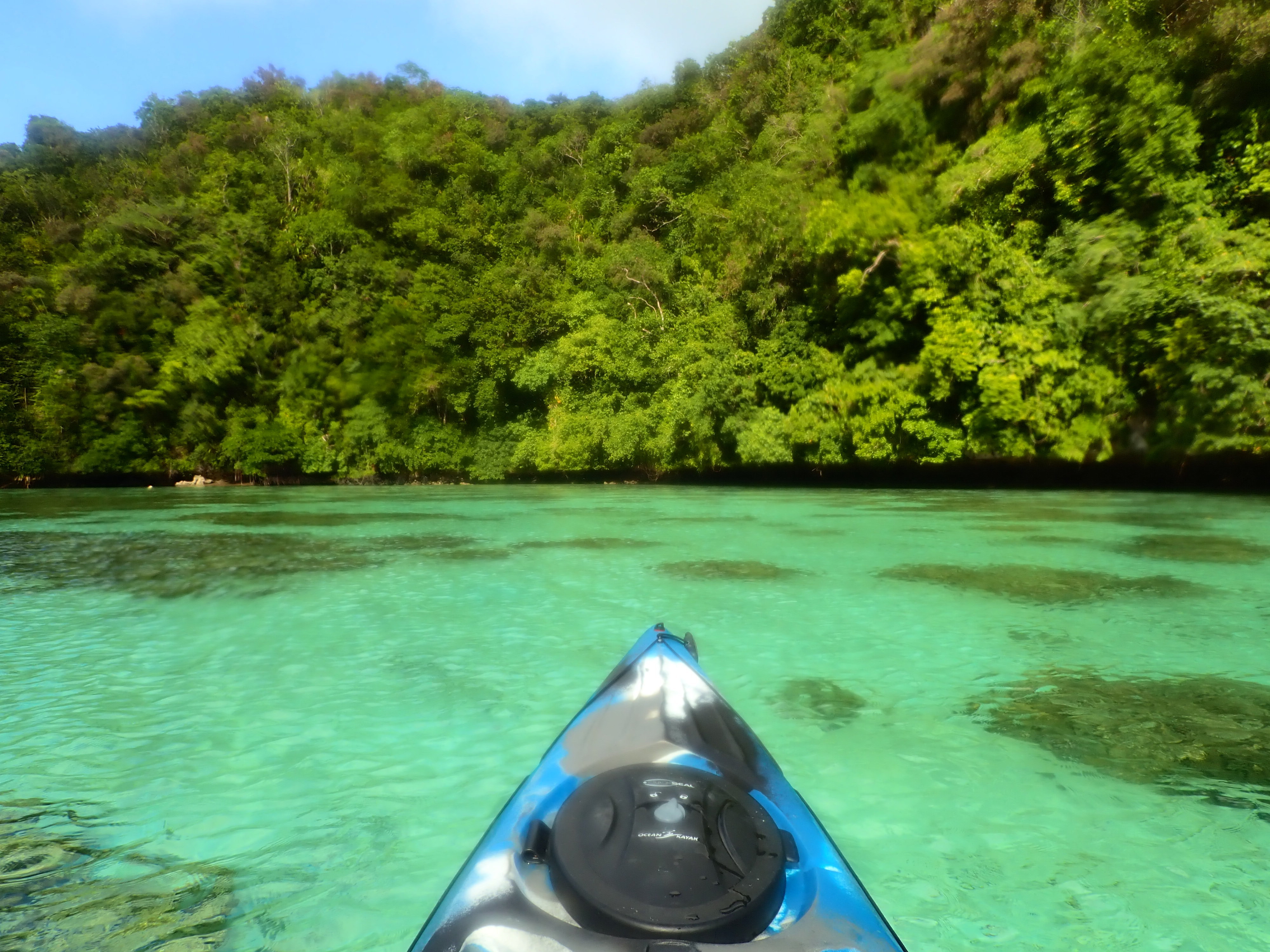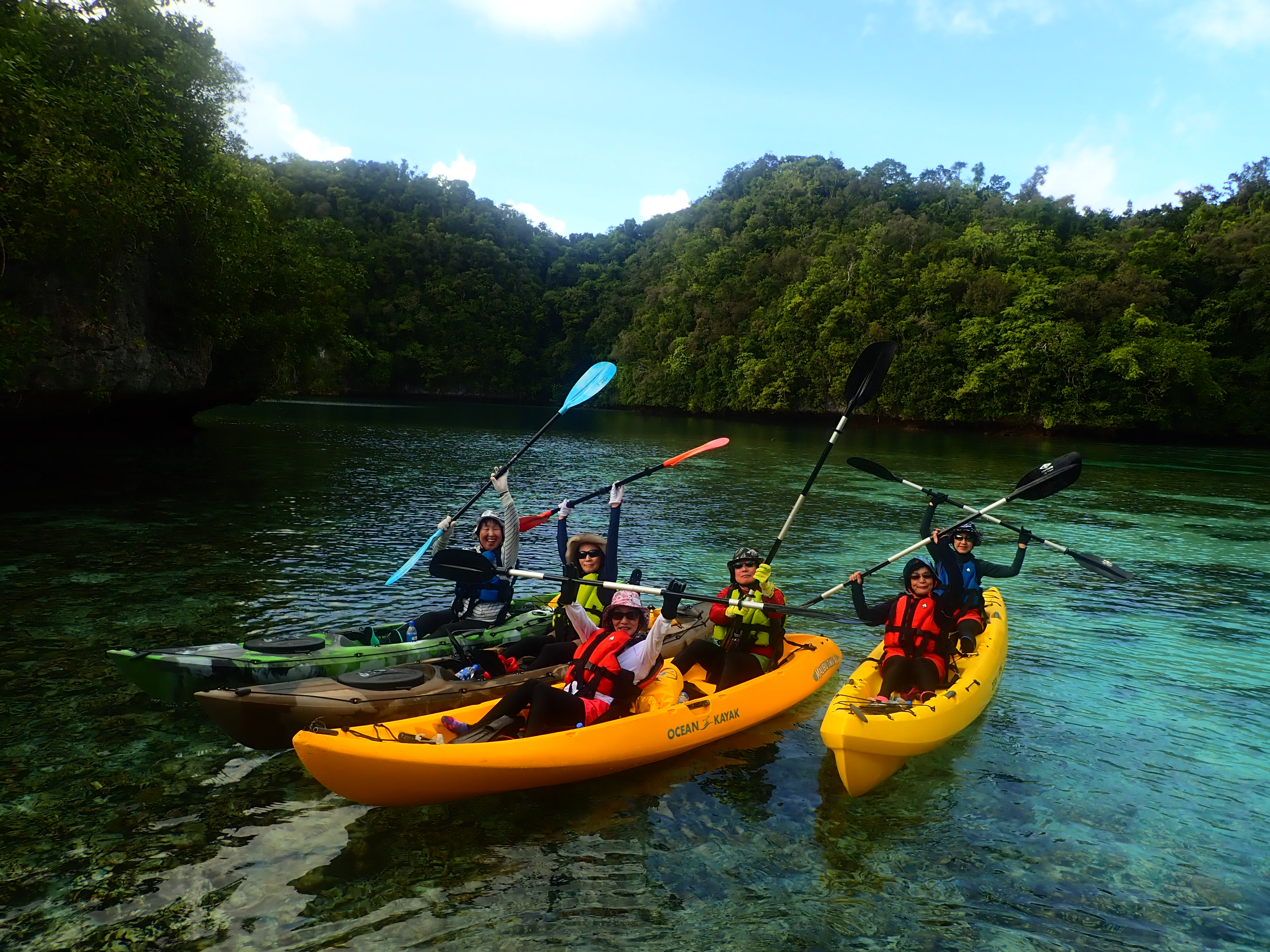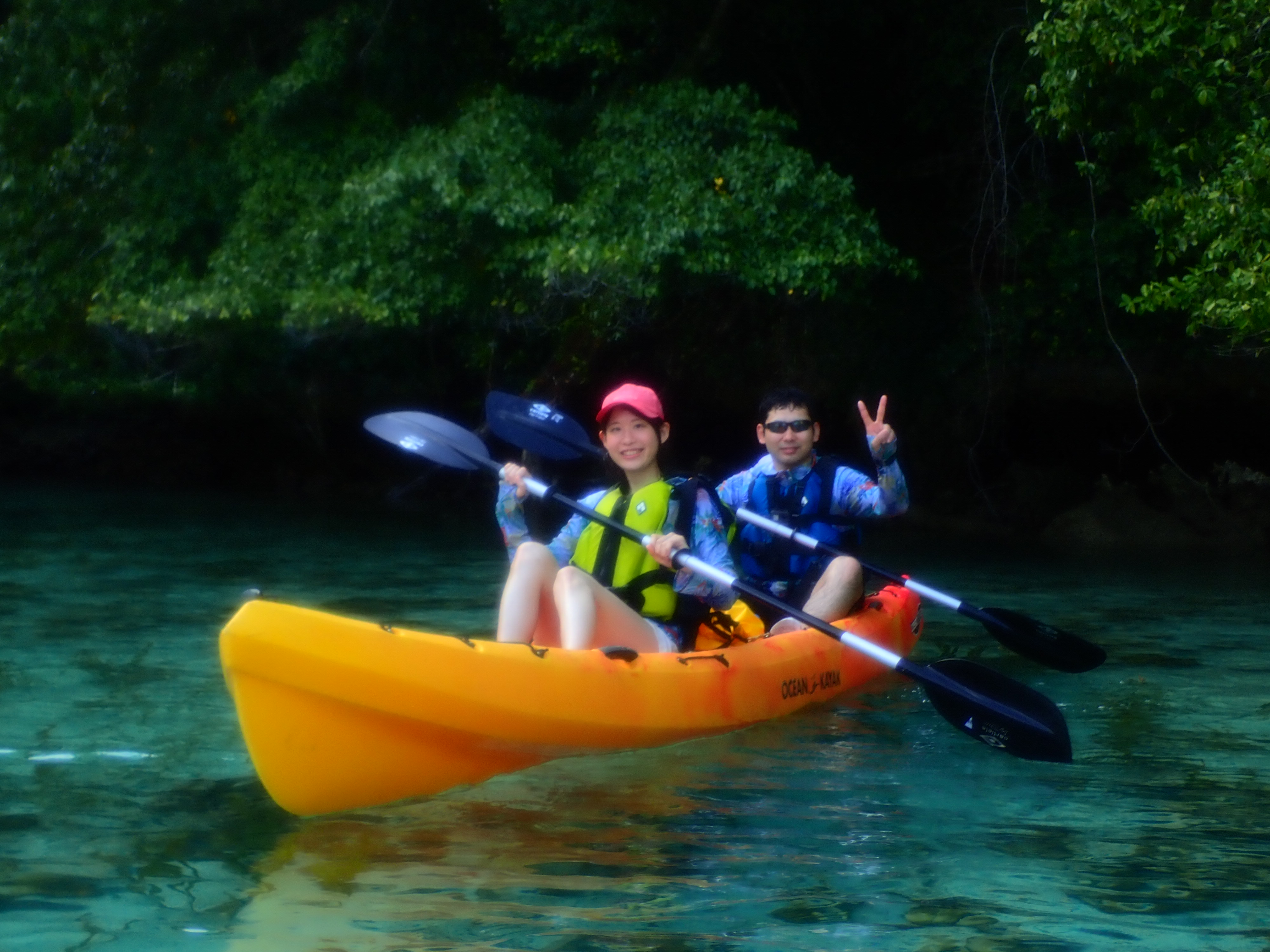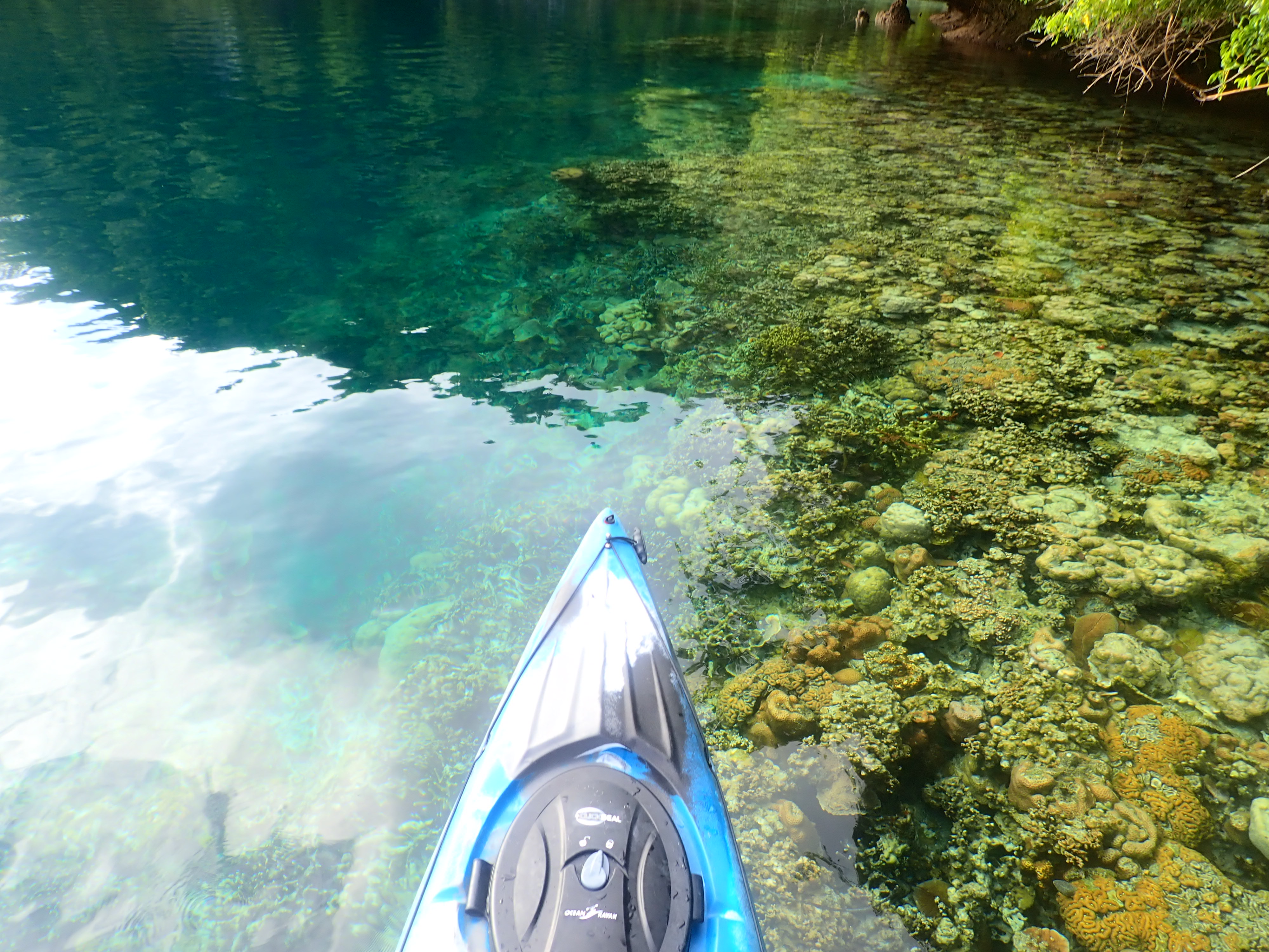 スノーケル後ももちろんカヤック。ひと泳ぎすると不思議と皆さん、上手く漕げるようになることが良くあります。おそらく、ひと泳ぎして、少し疲れると肩の力が抜けて自然体で漕げるからではないかと考えています。カヤックを漕ぐ際は少し力を抜いて自然体がおすすめです。