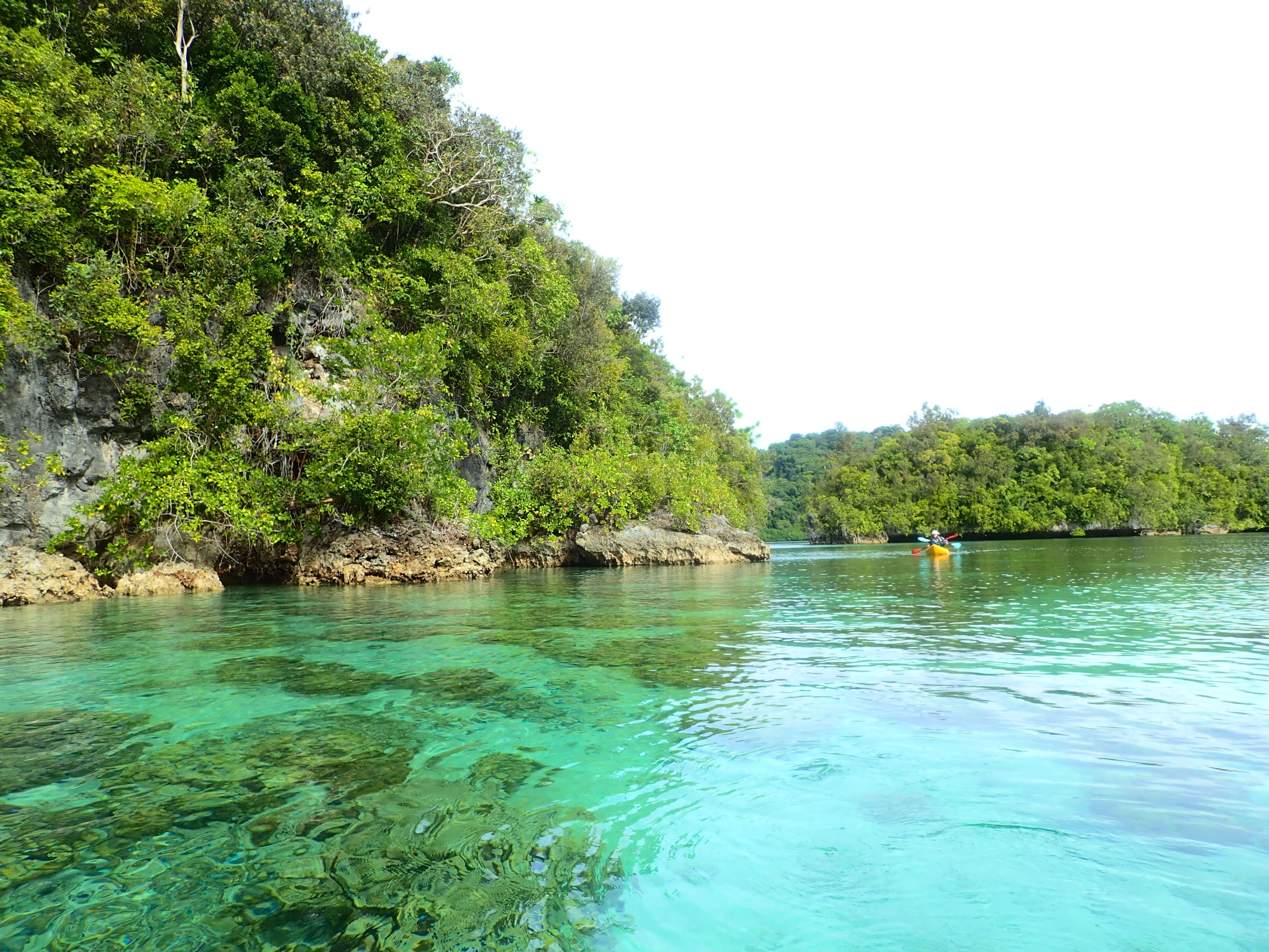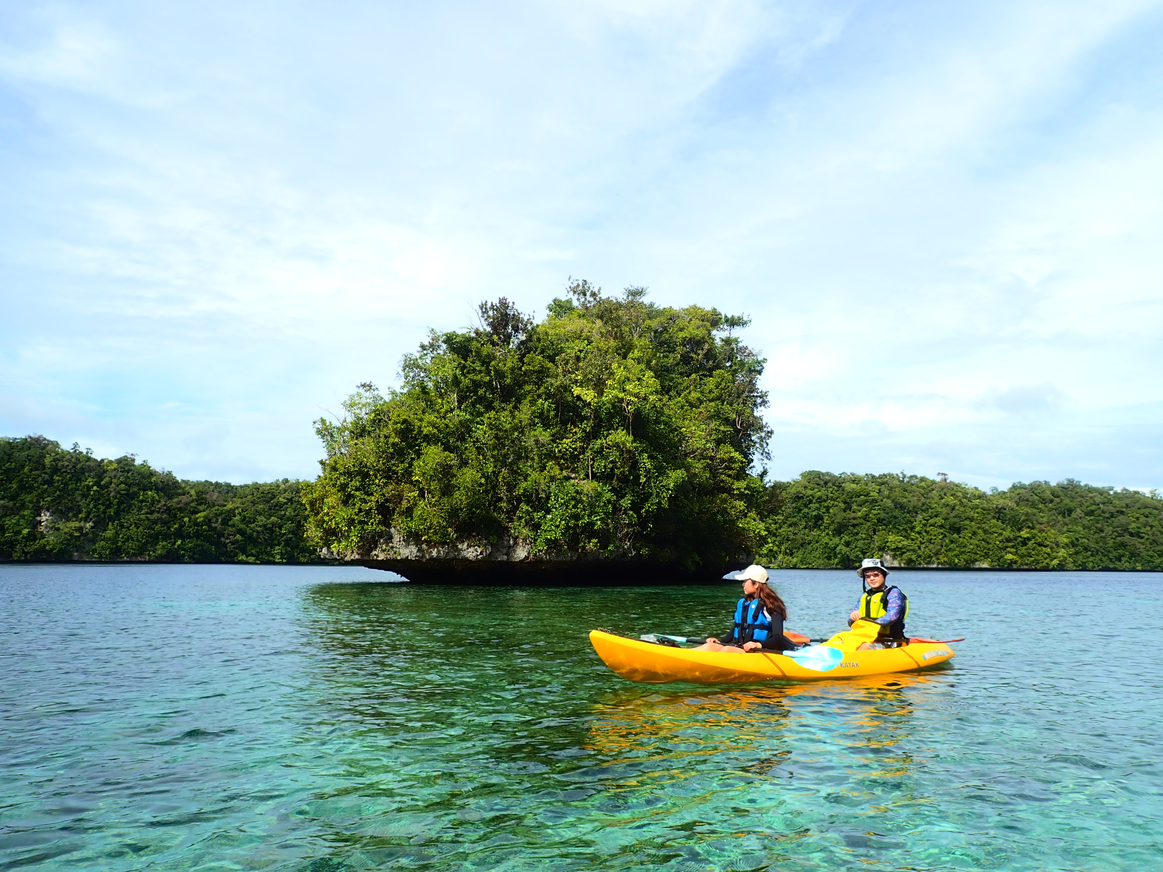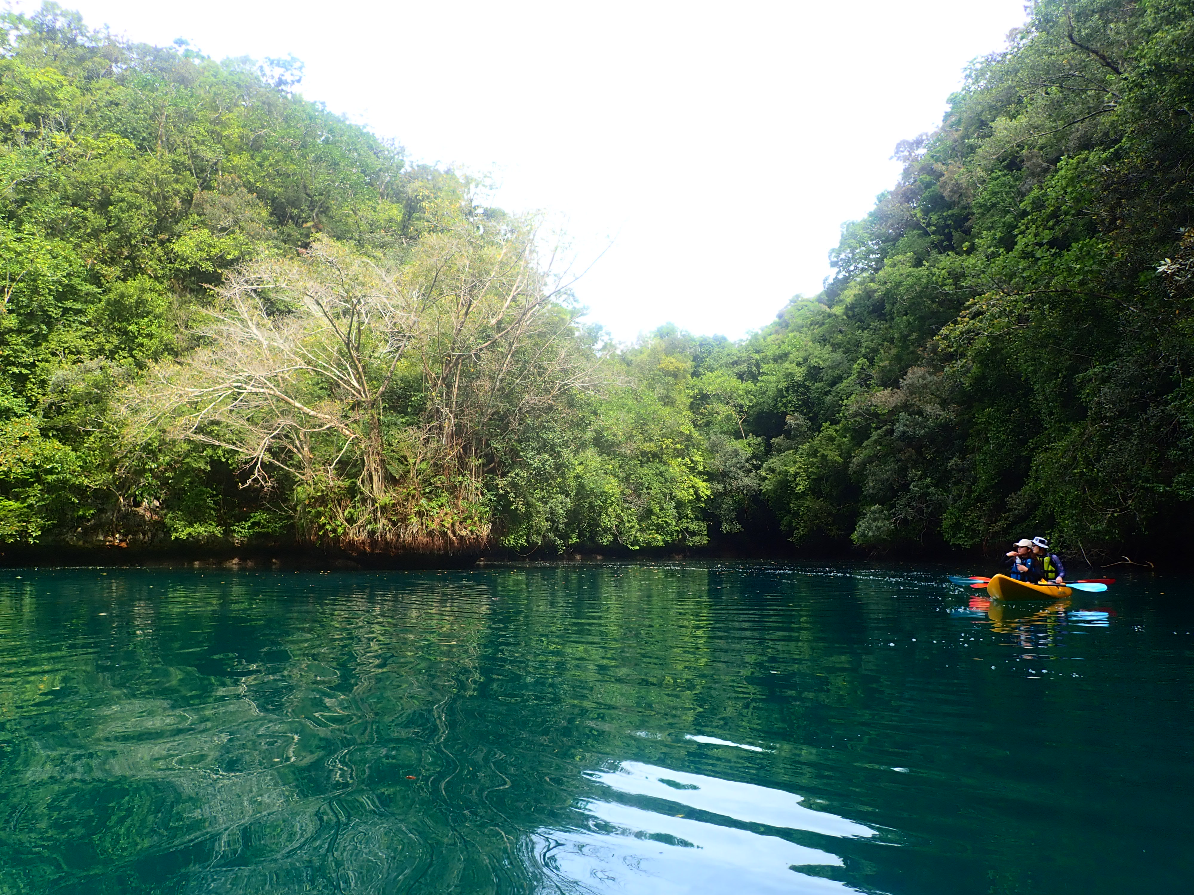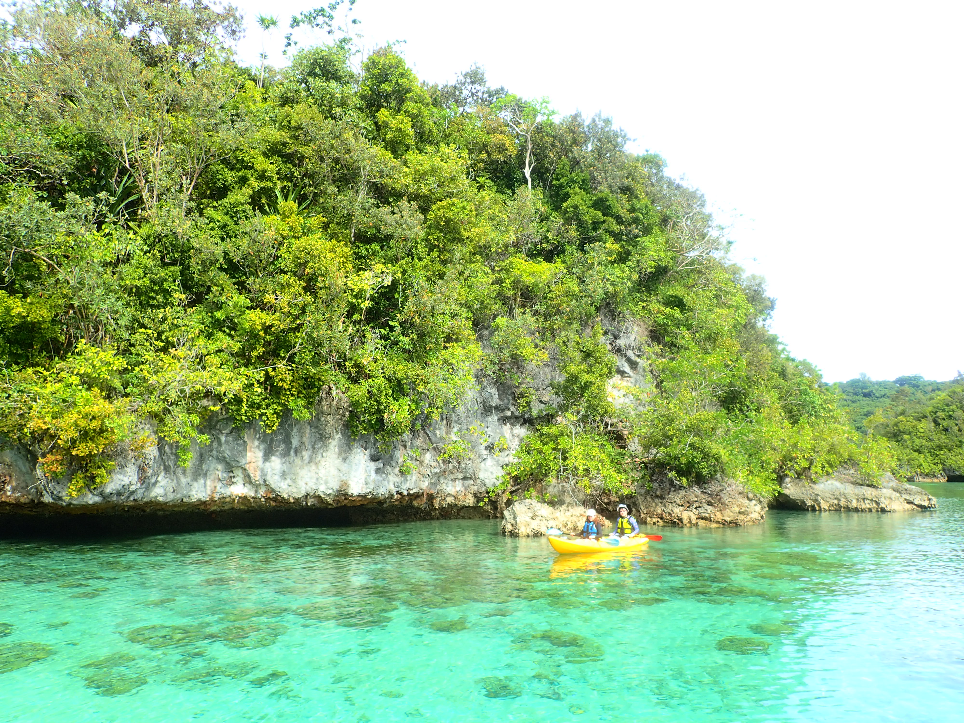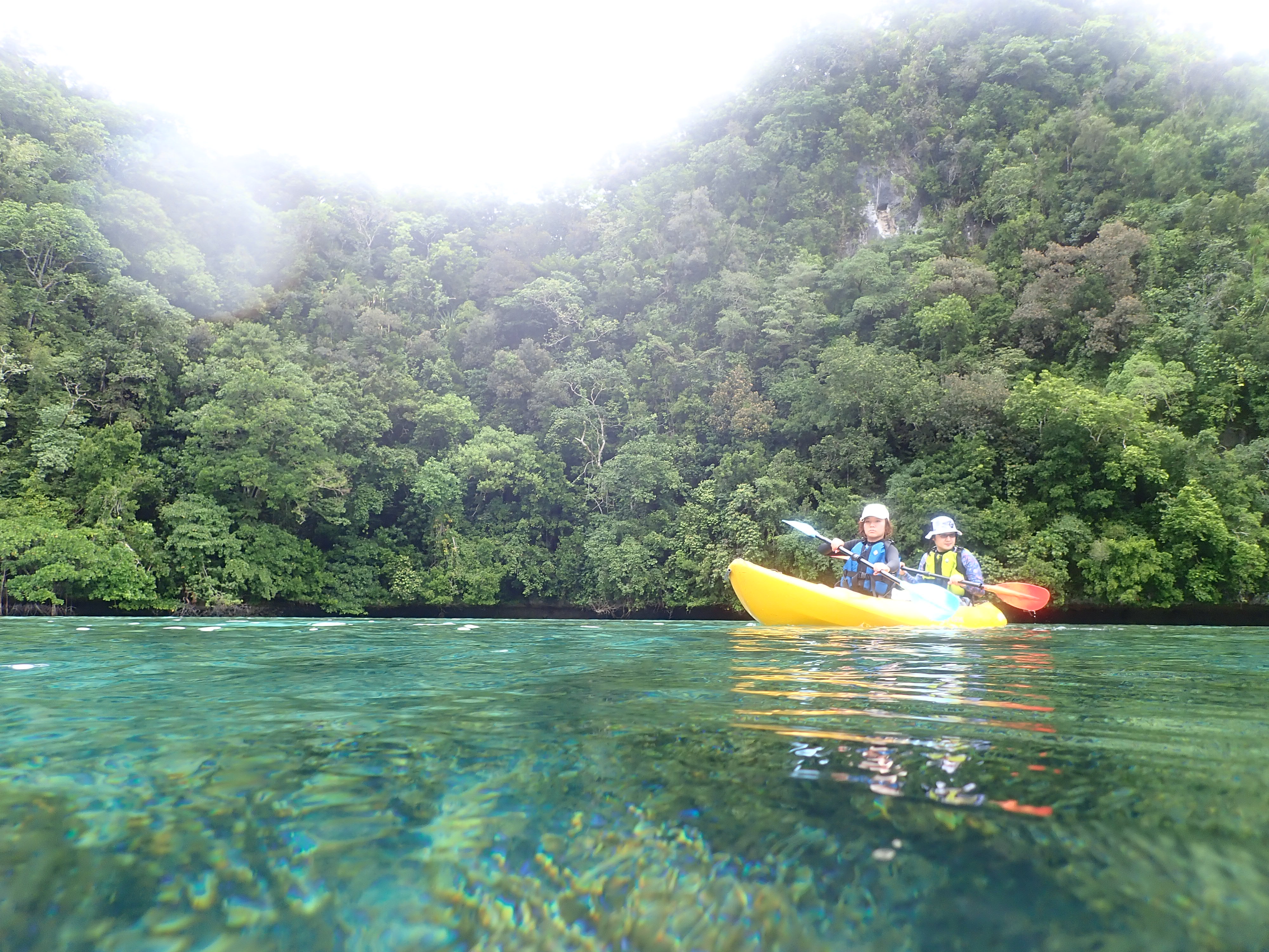 透明感の浅瀬をカヤックで進むのが心地よいです。