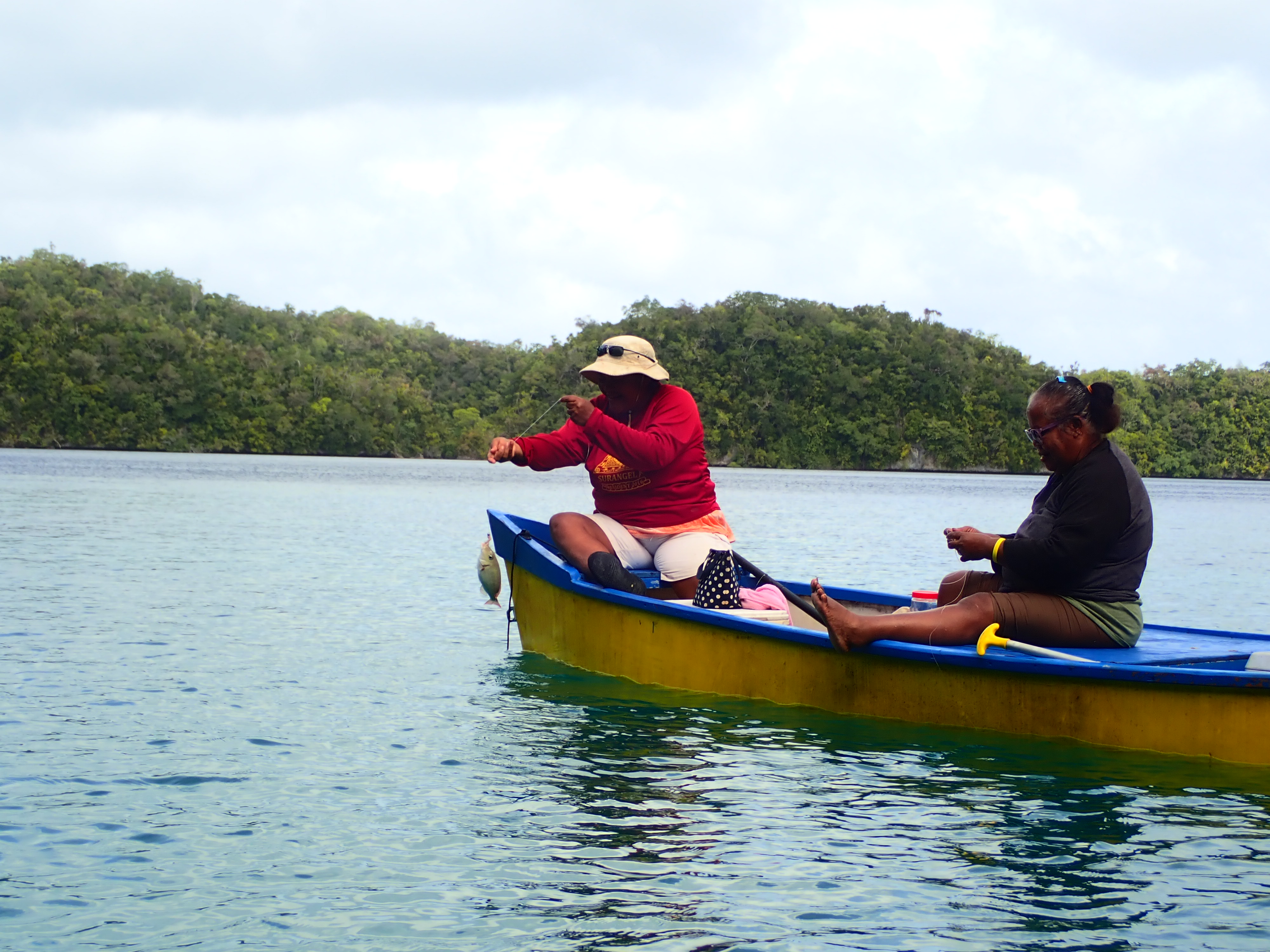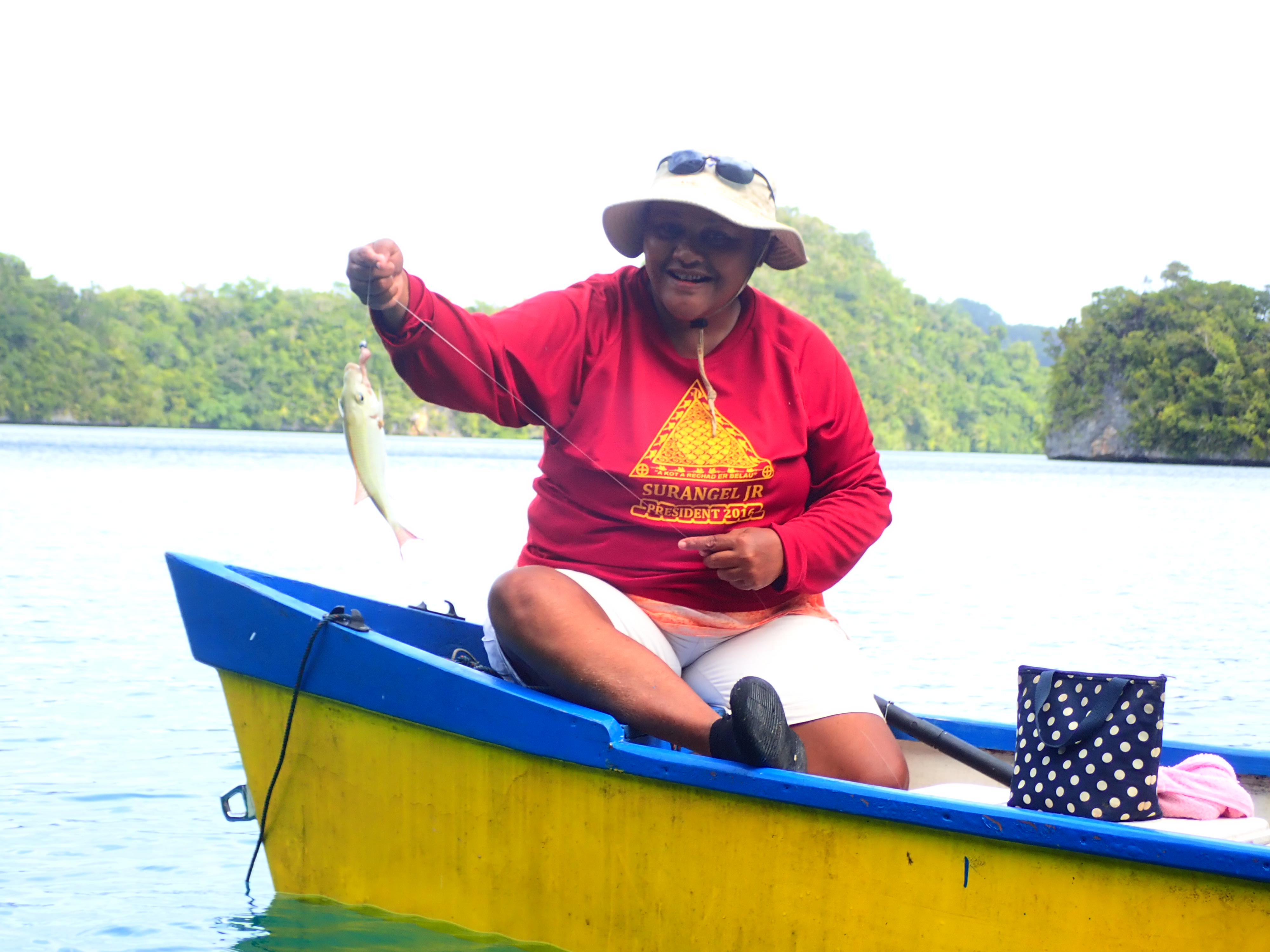 We met a local who is coming fishing with a small boat. All locals in Palau are very well at fishing.They are simple fishing gear, but they used to fish easily.