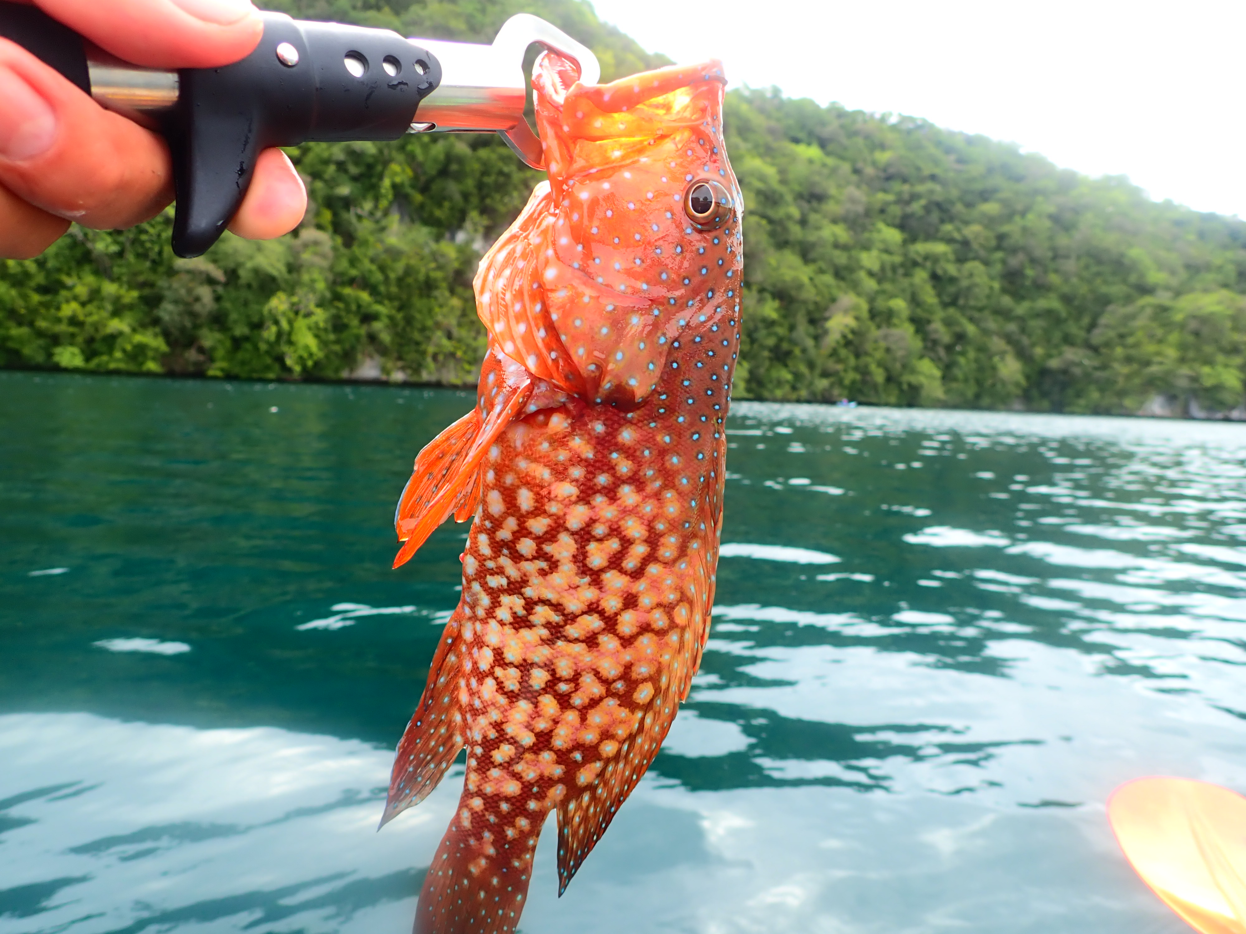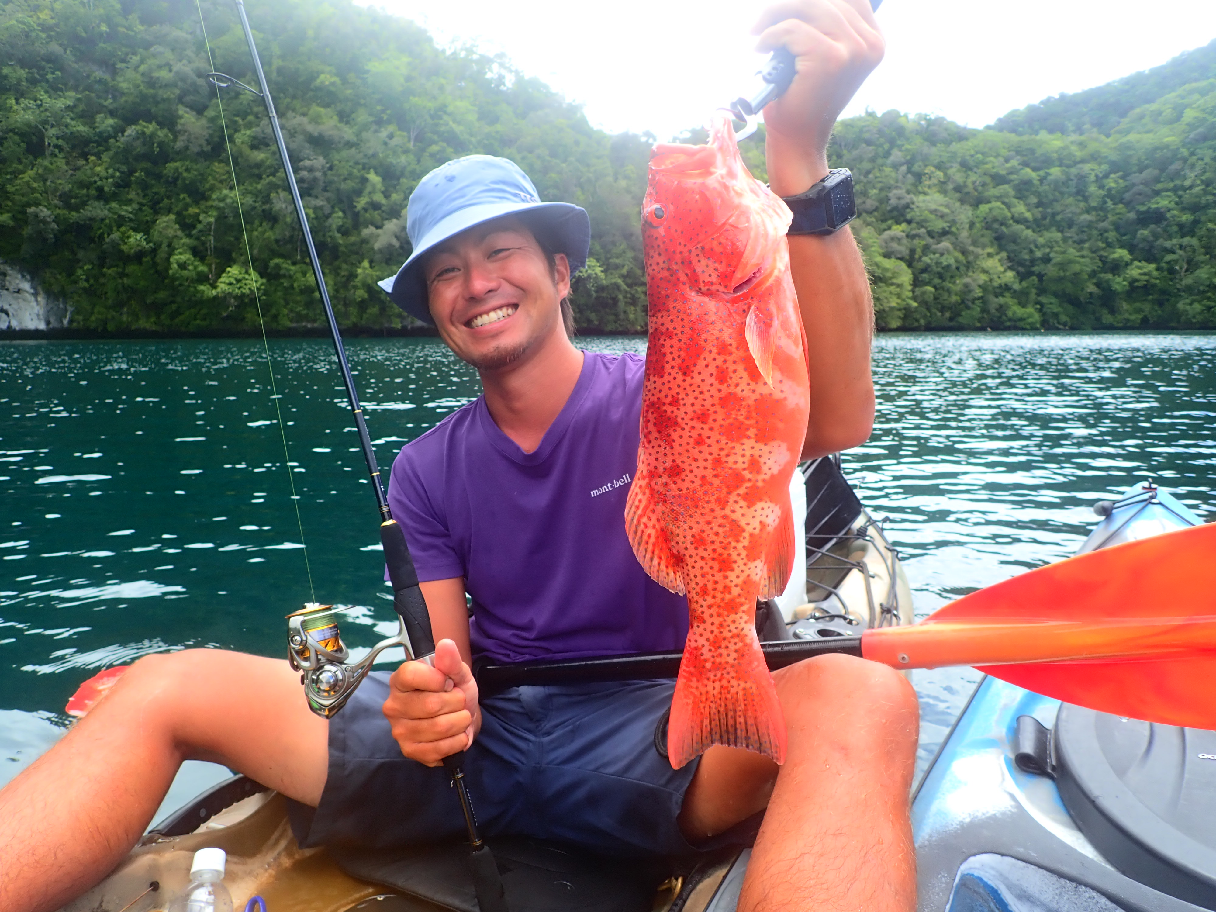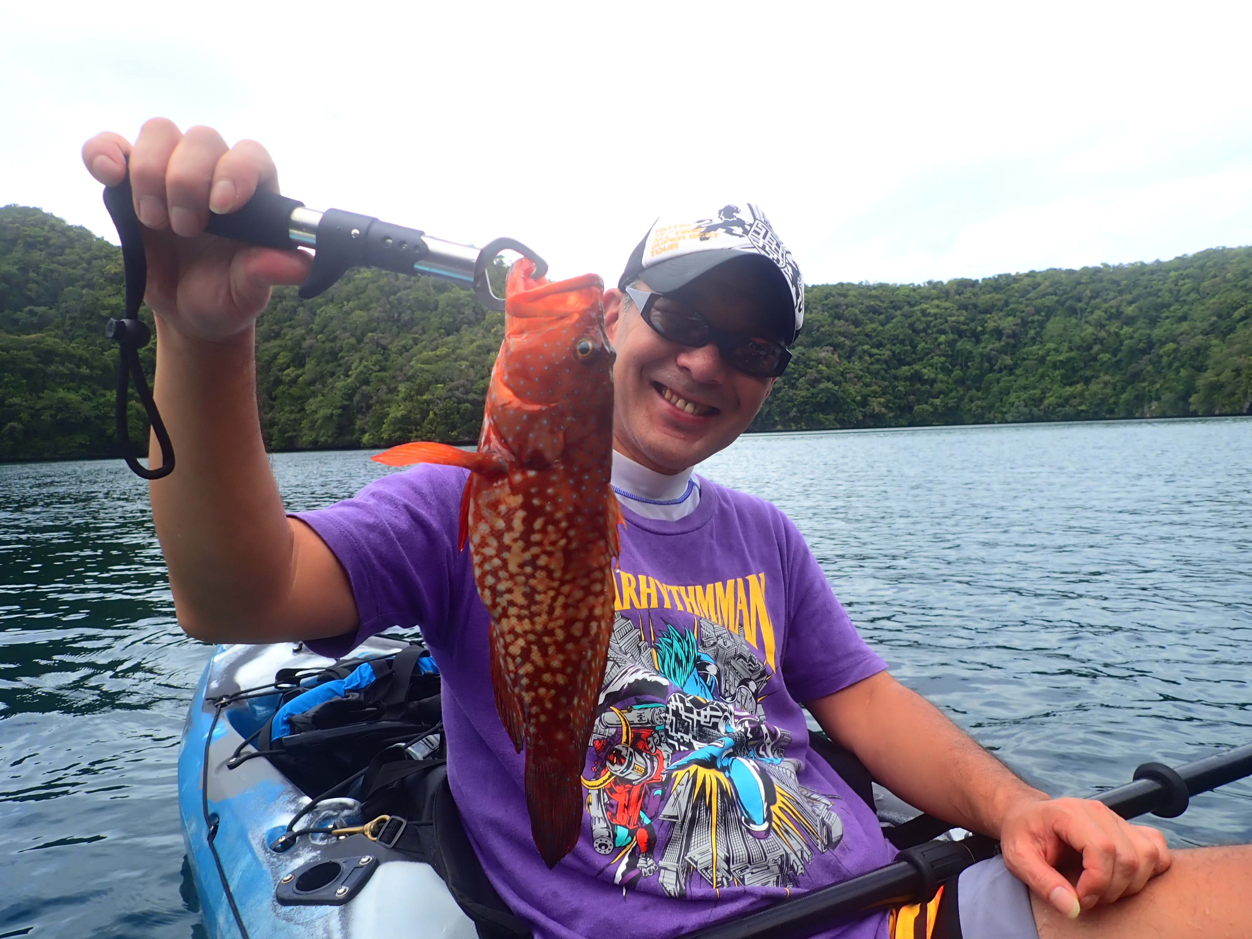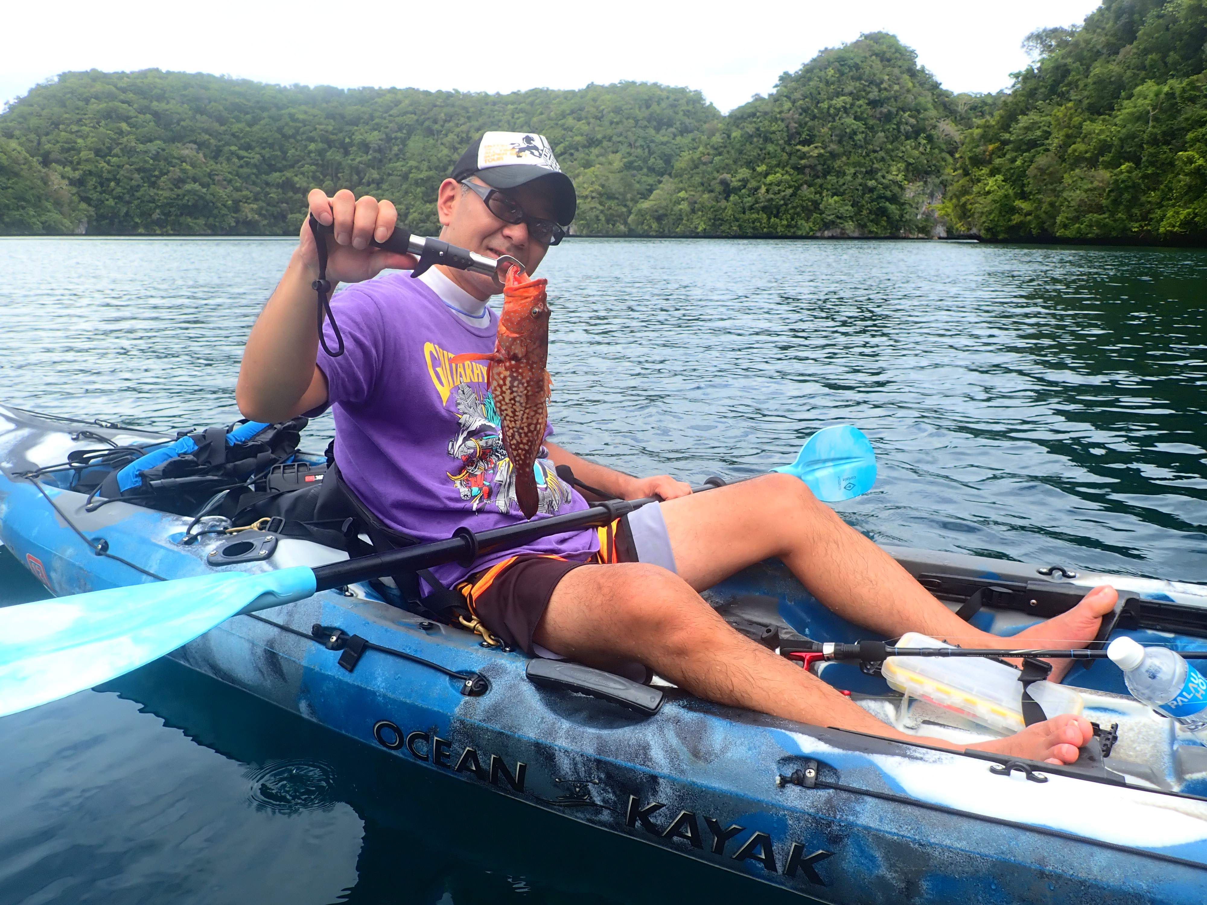 タテフエダイに続きキジハタ。小物もちょこちょこ掛かりますが、釣りは釣れてナンボ。ロックアイランドの美しい景色を眺めながら、のんびりとカヤックフィッシング。これぞ大人の休日といった優雅な一時。