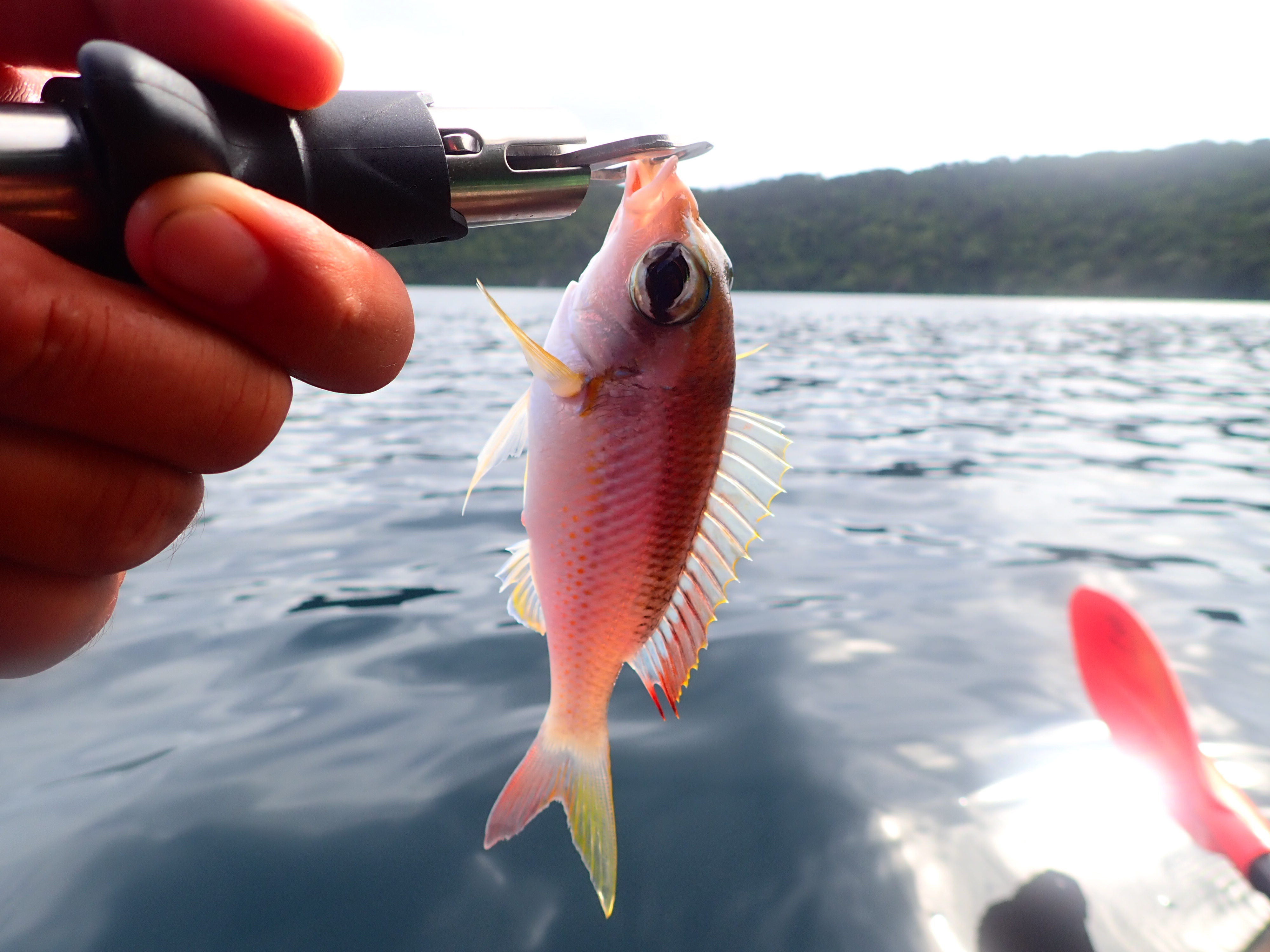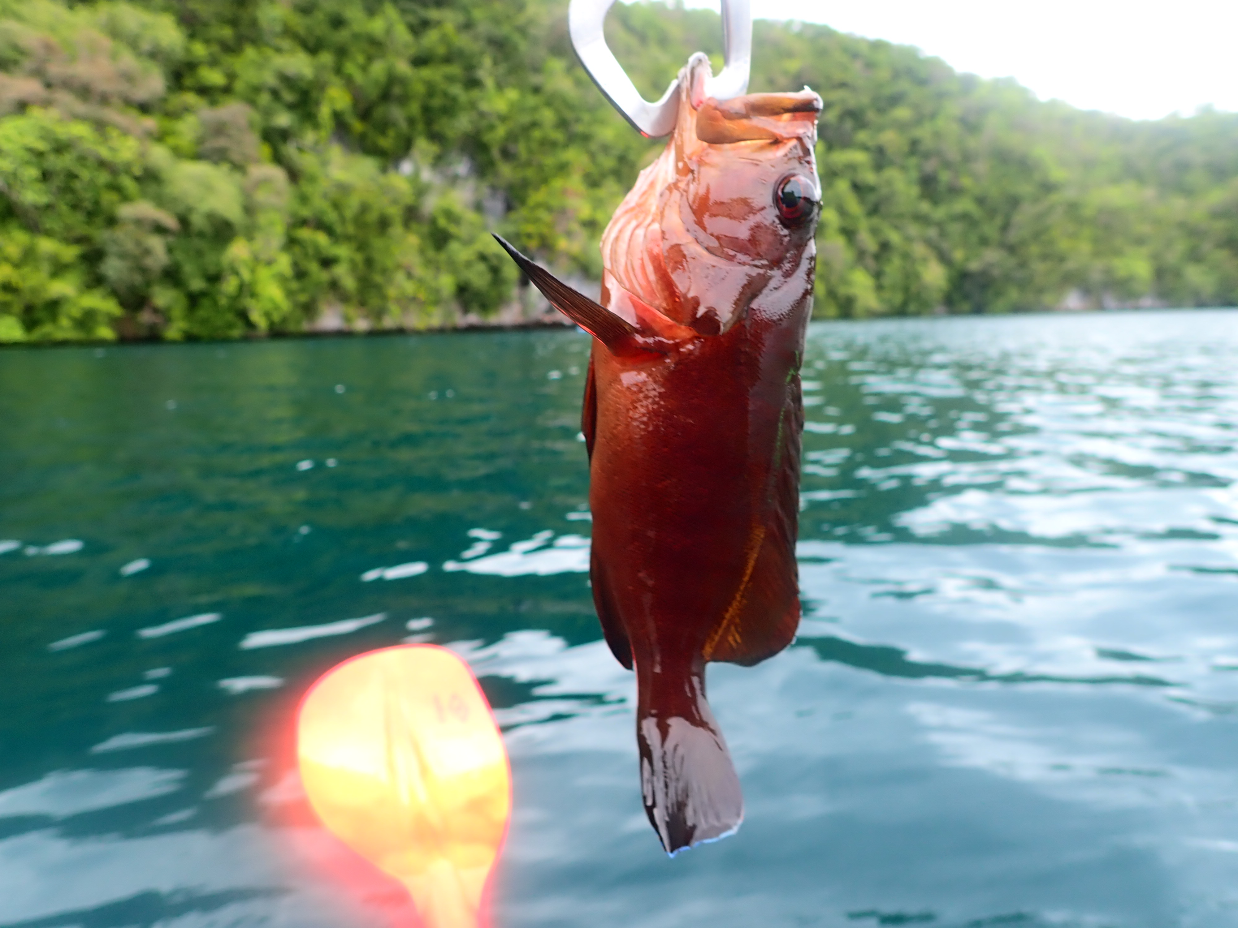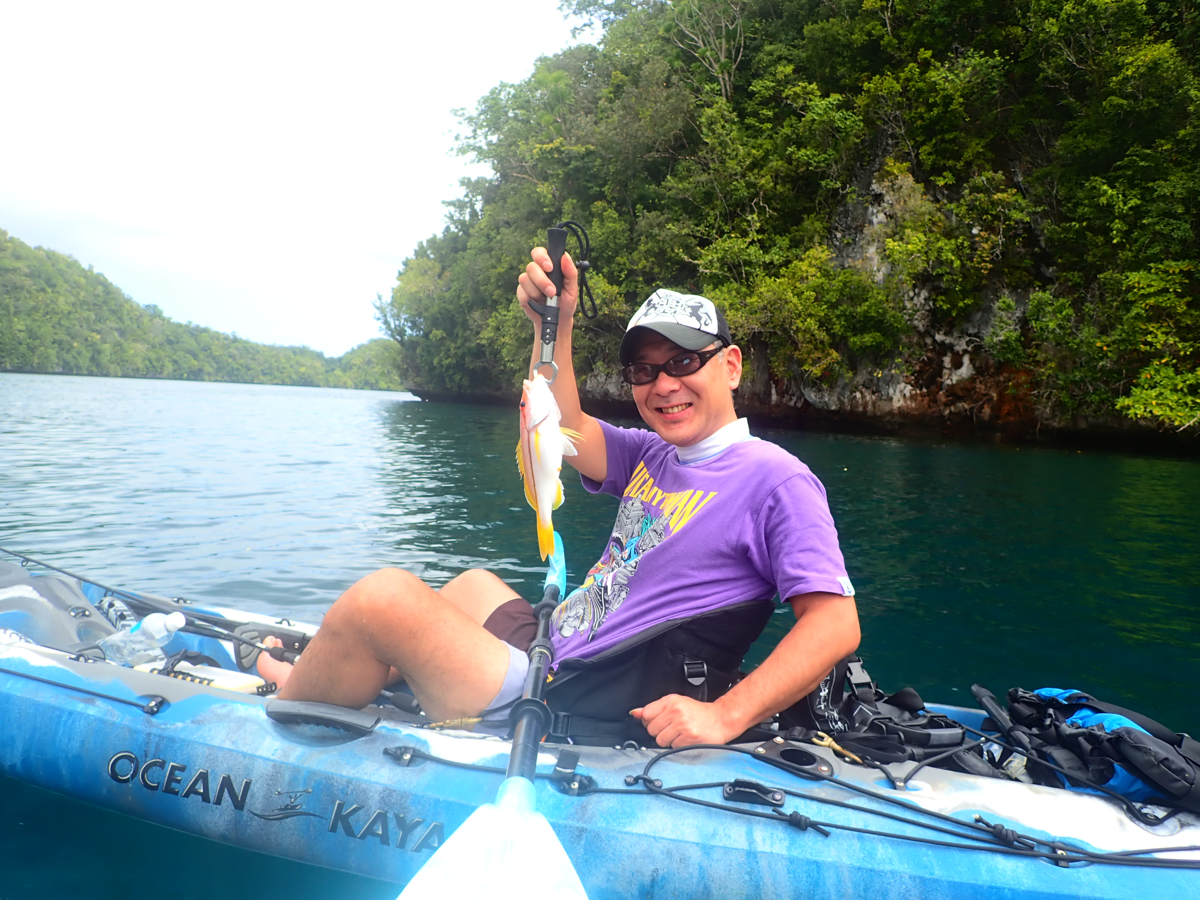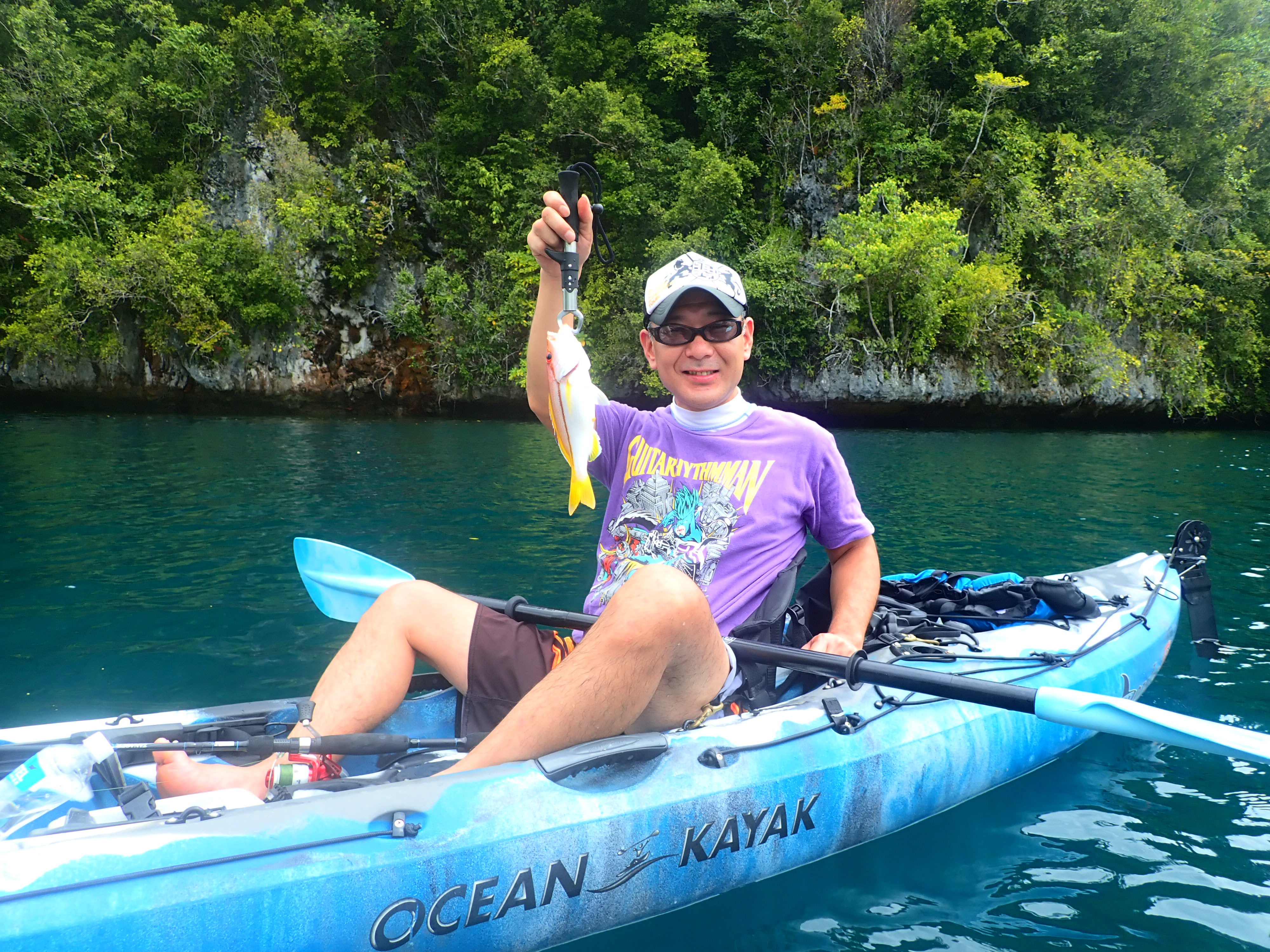タテフエダイに続きキジハタ。小物もちょこちょこ掛かりますが、釣りは釣れてナンボ。ロックアイランドの美しい景色を眺めながら、のんびりとカヤックフィッシング。これぞ大人の休日といった優雅な一時。