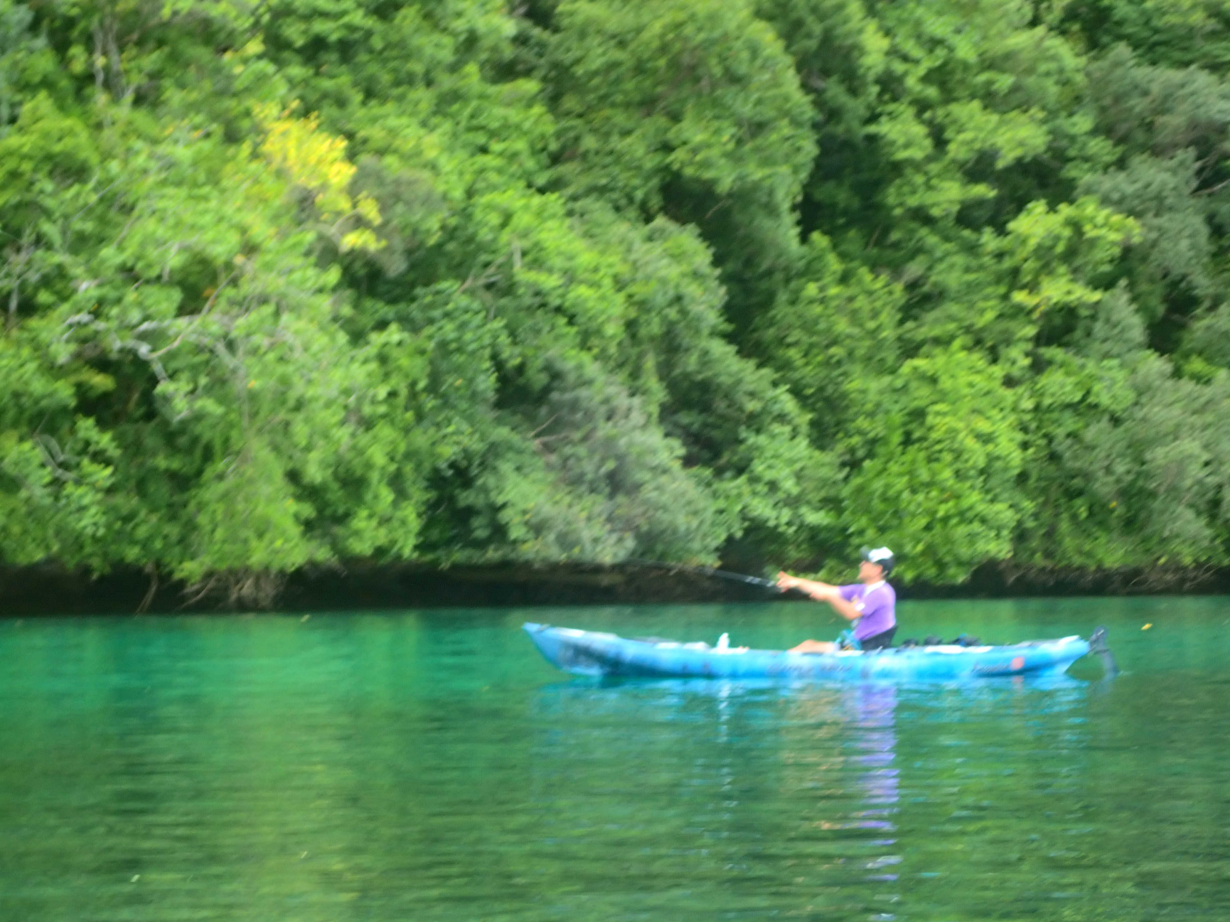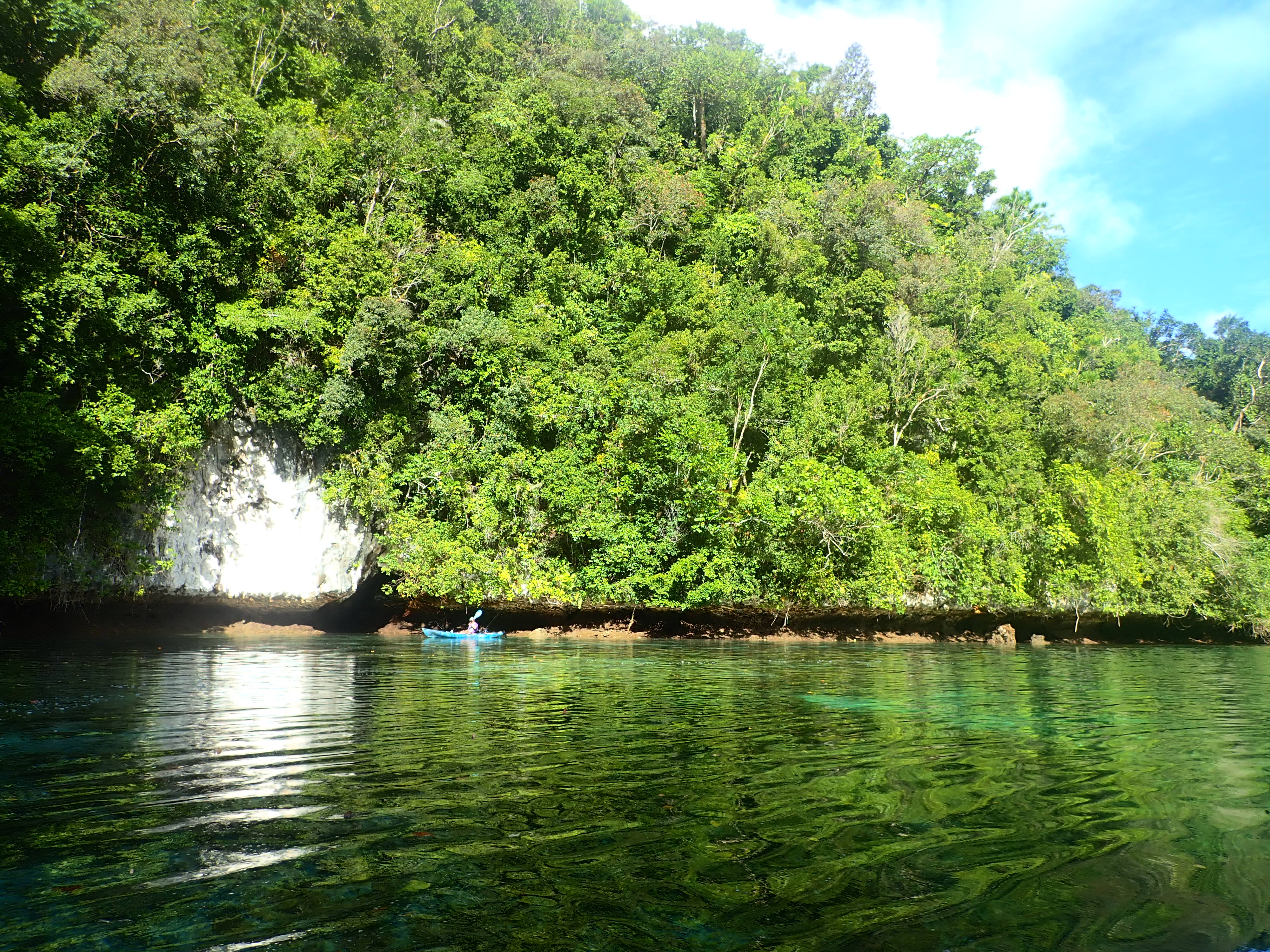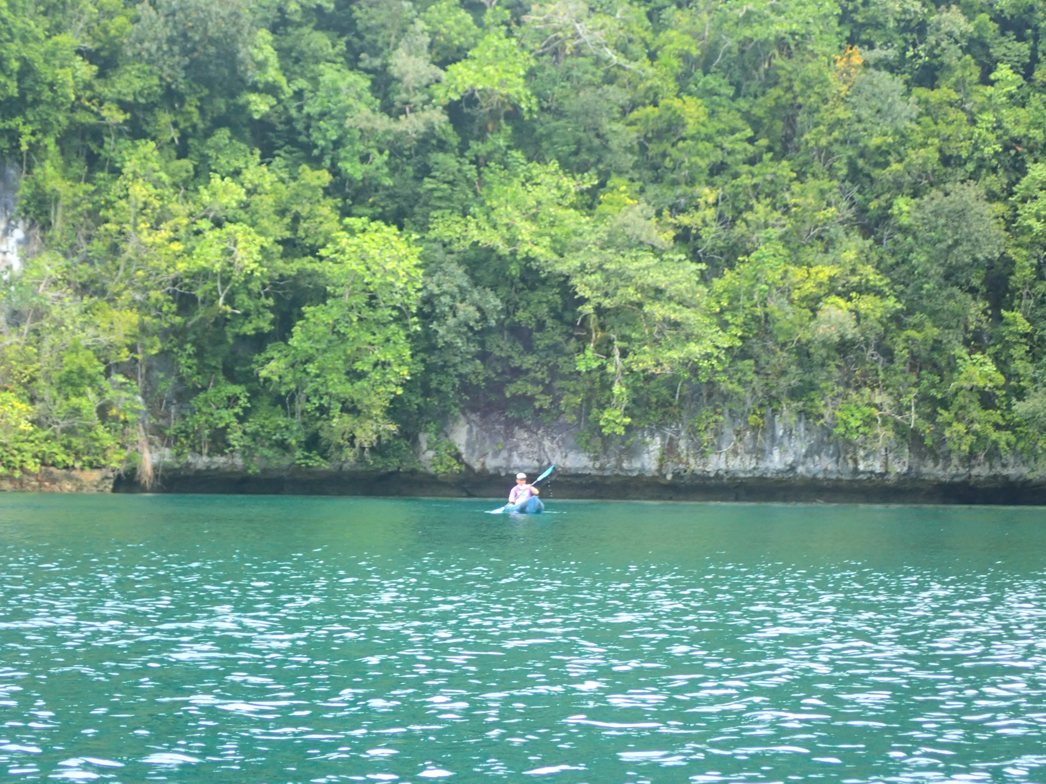 という訳で時間もお昼時だったので、ロックアイランドの岩場で釣った魚で天ぷら&ソーメンランチ。お昼の後は洞窟にも行きました。眠くなったら、ジャングルの木漏れ日が心地よいカヤックの上で昼寝。