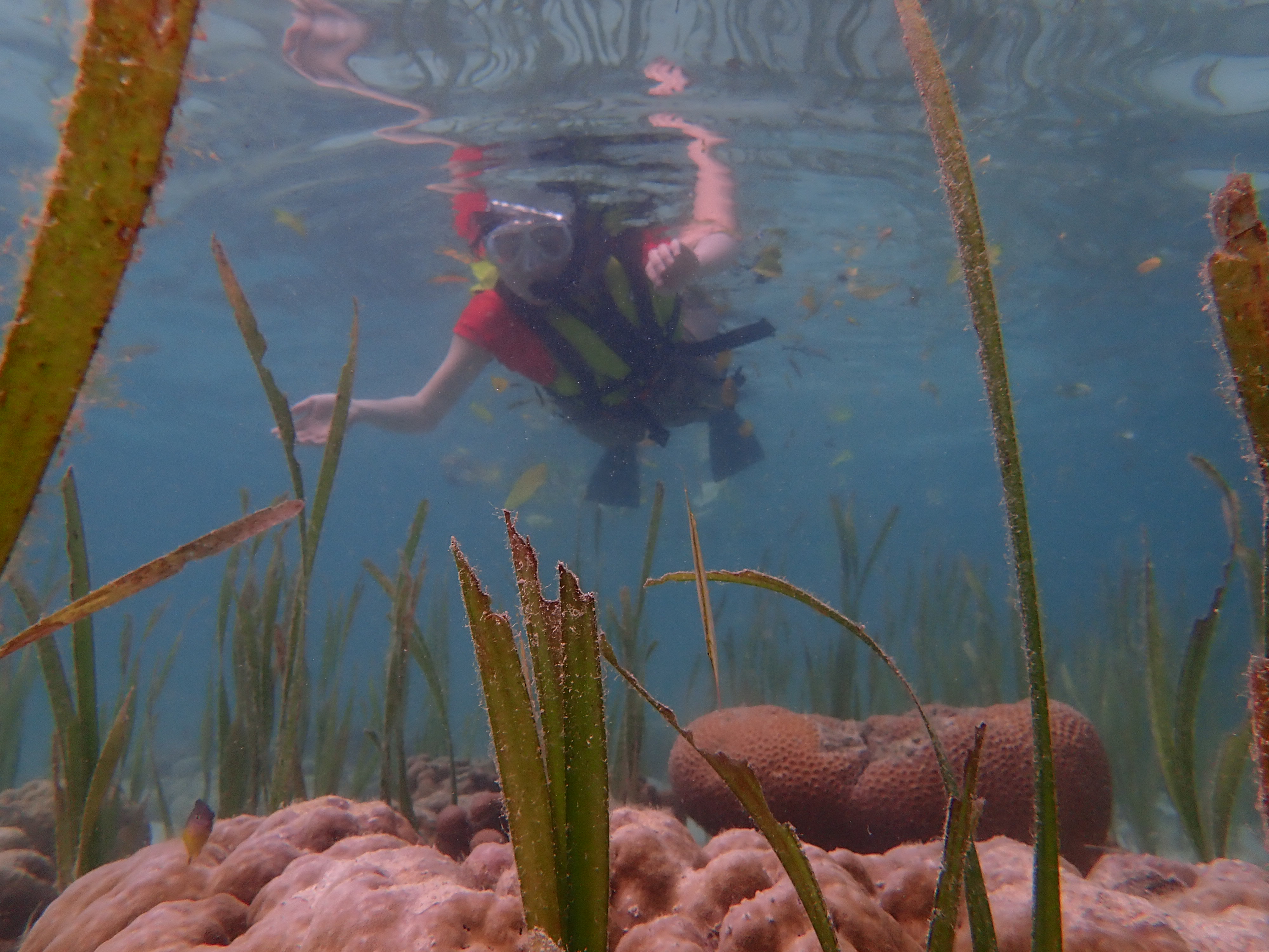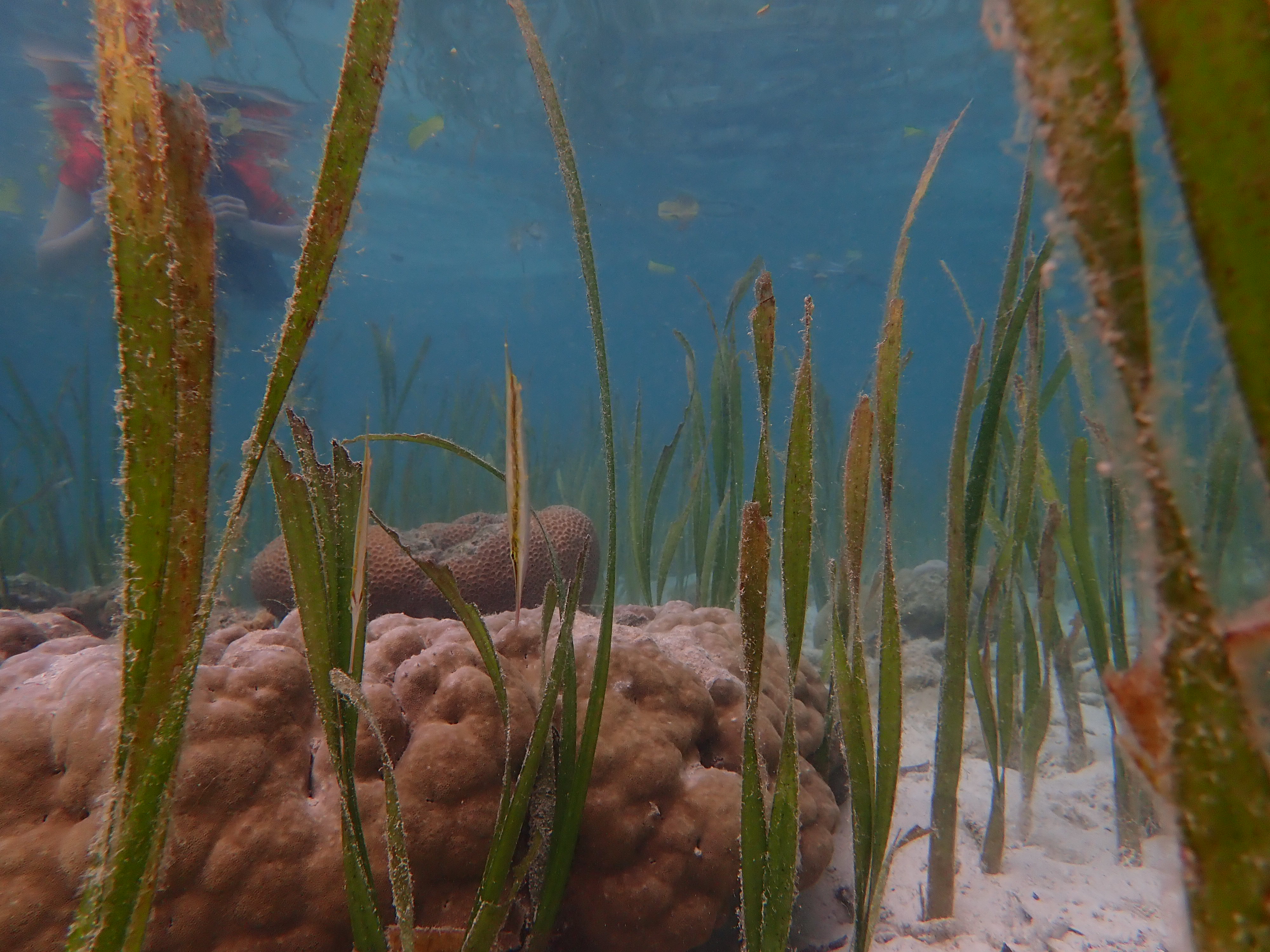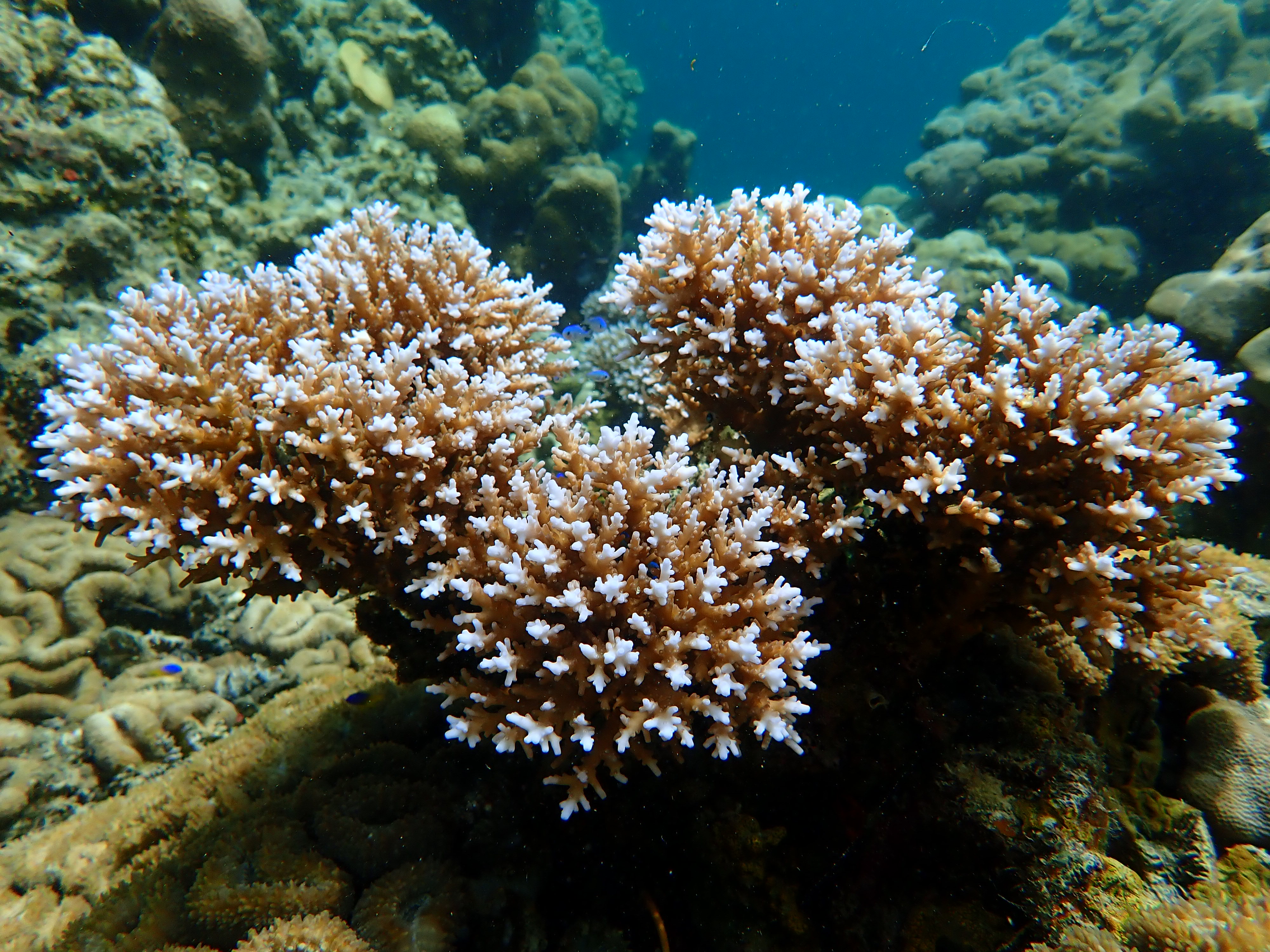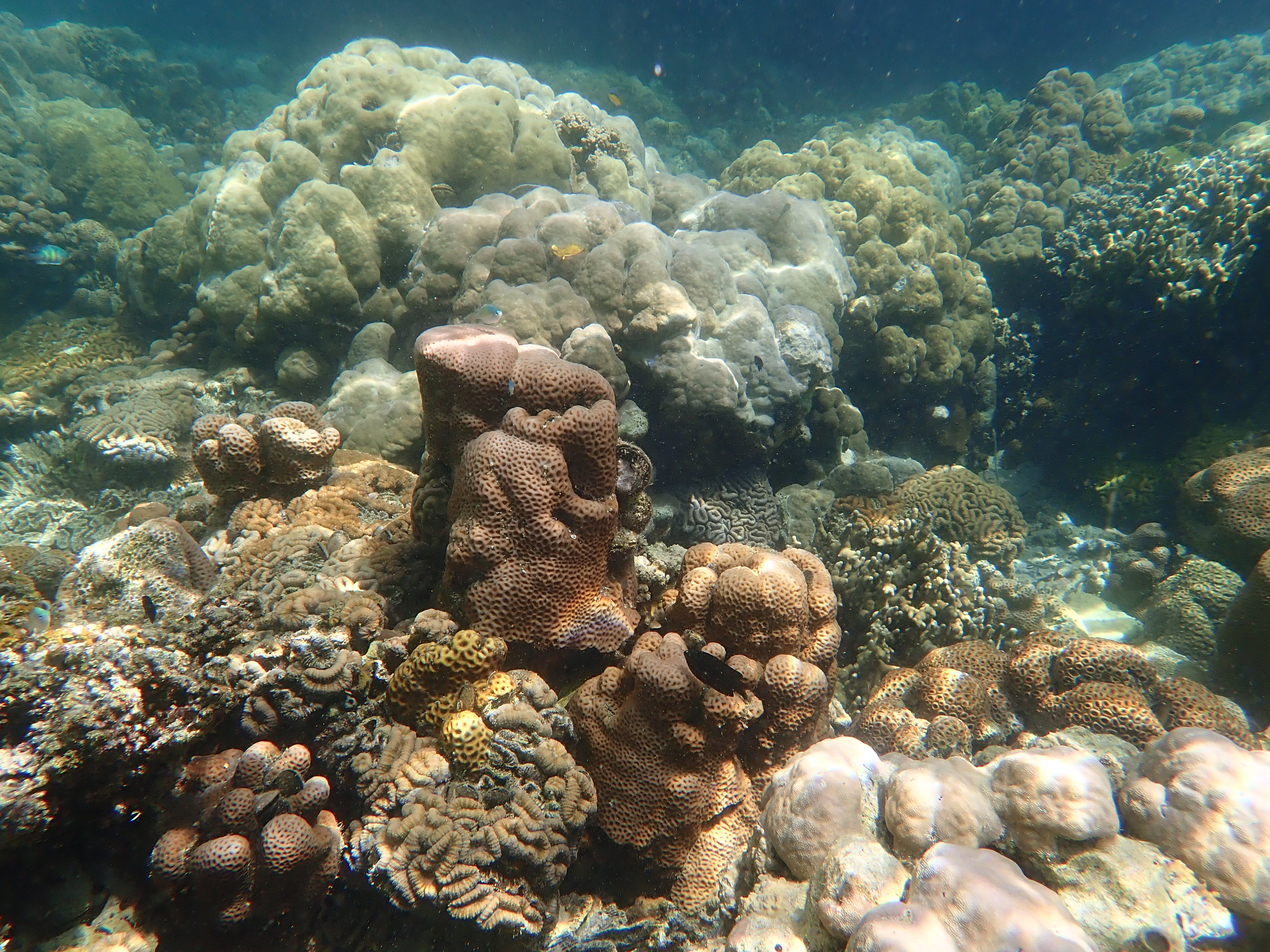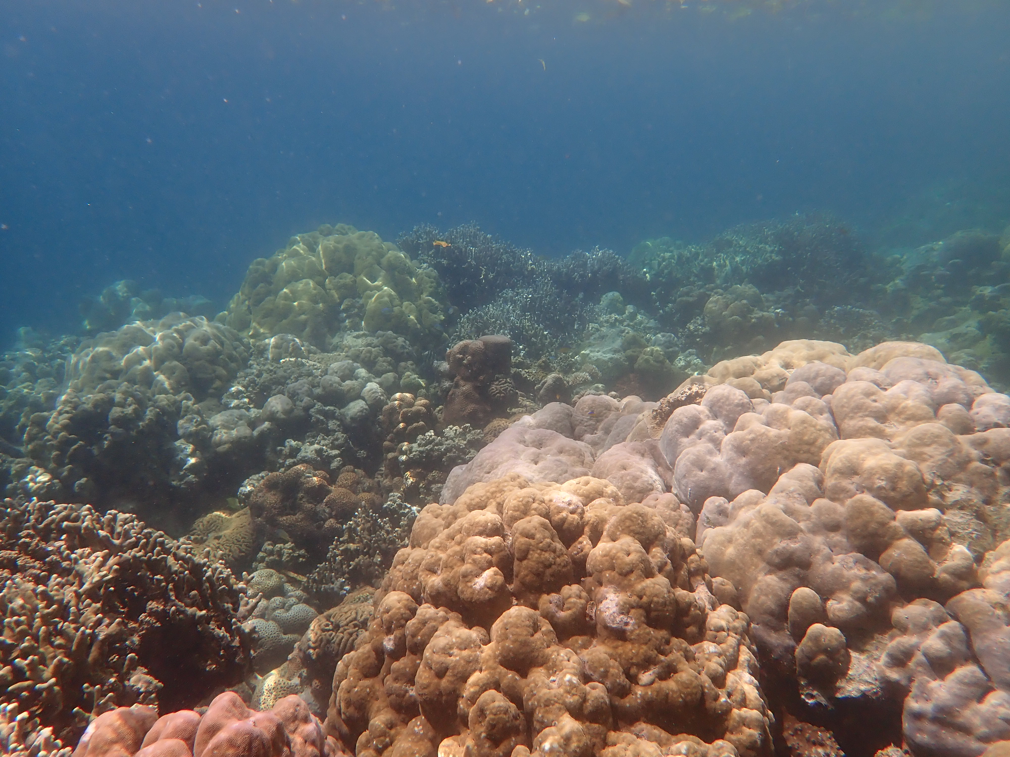 こちらもバラサンゴの場所です。カヤック上からではわかりずらいですが、海の中はこんな感じです。