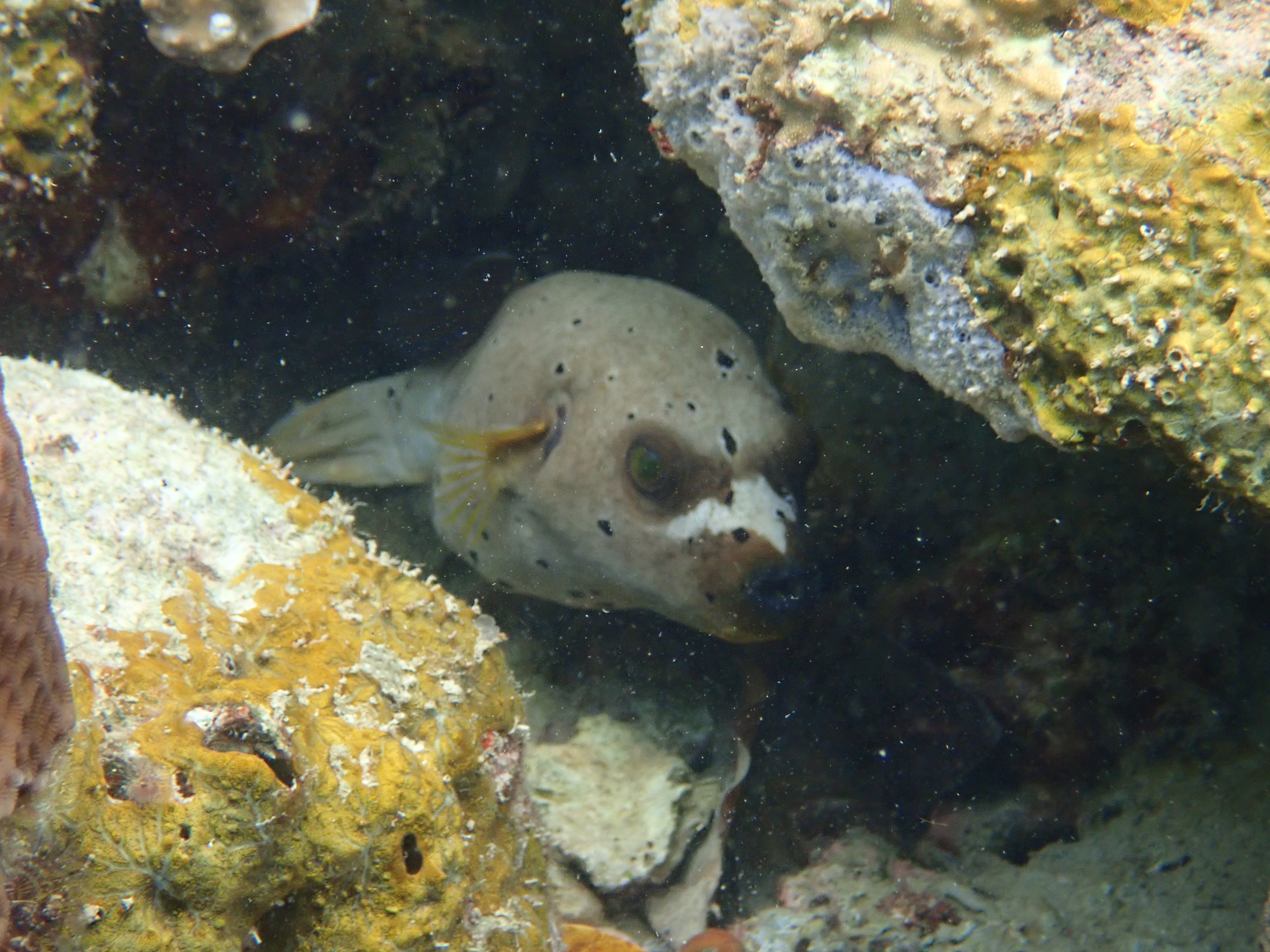 いつもの入り江でスノーケル。ちょっとマヌケな顔立ちのコクテンフグがいました。個人的にはゴマアザラシフグと呼んでいます。可愛いけれど、フグはフグ。けっこうな毒をお持ちだそうです。