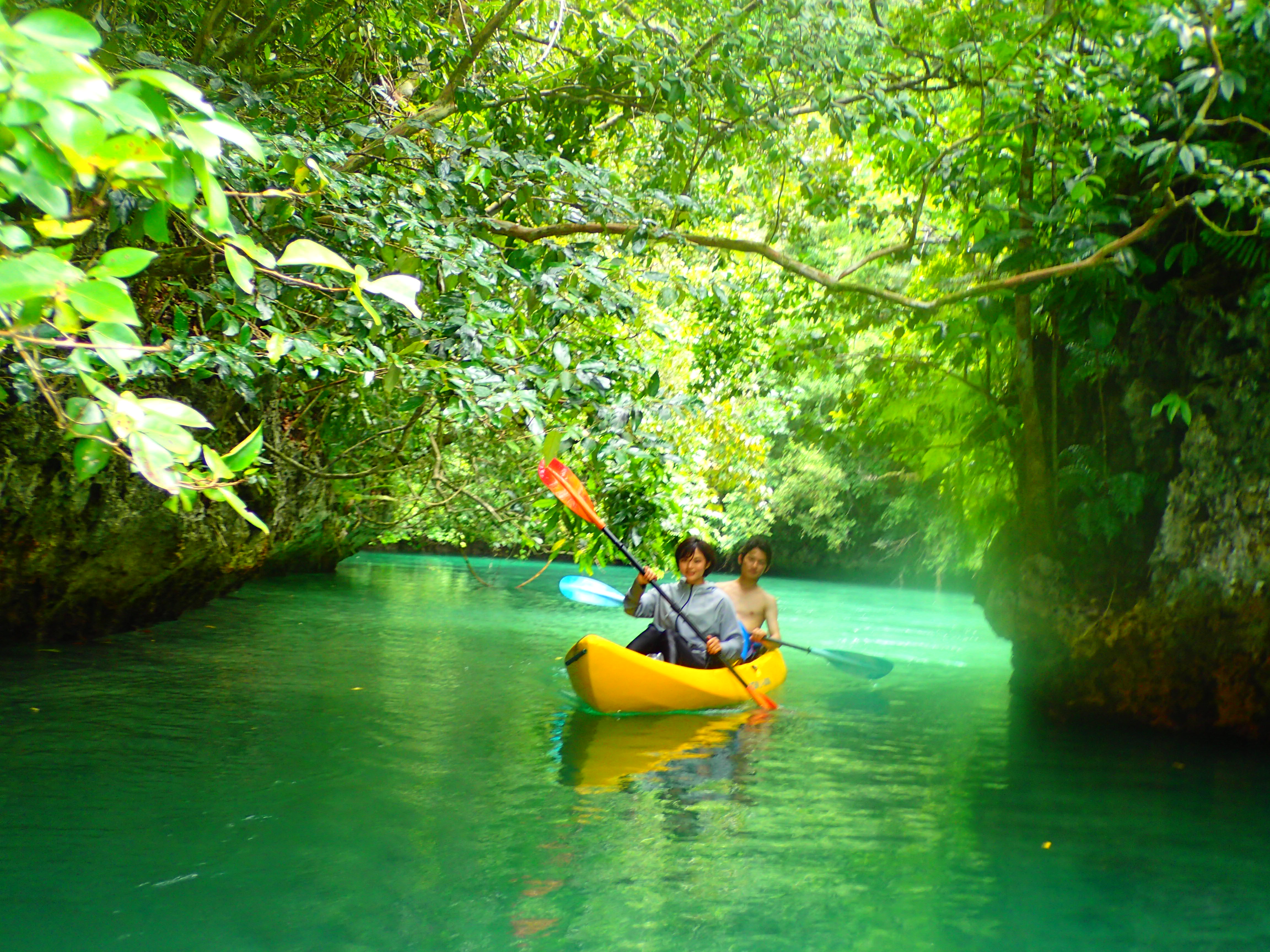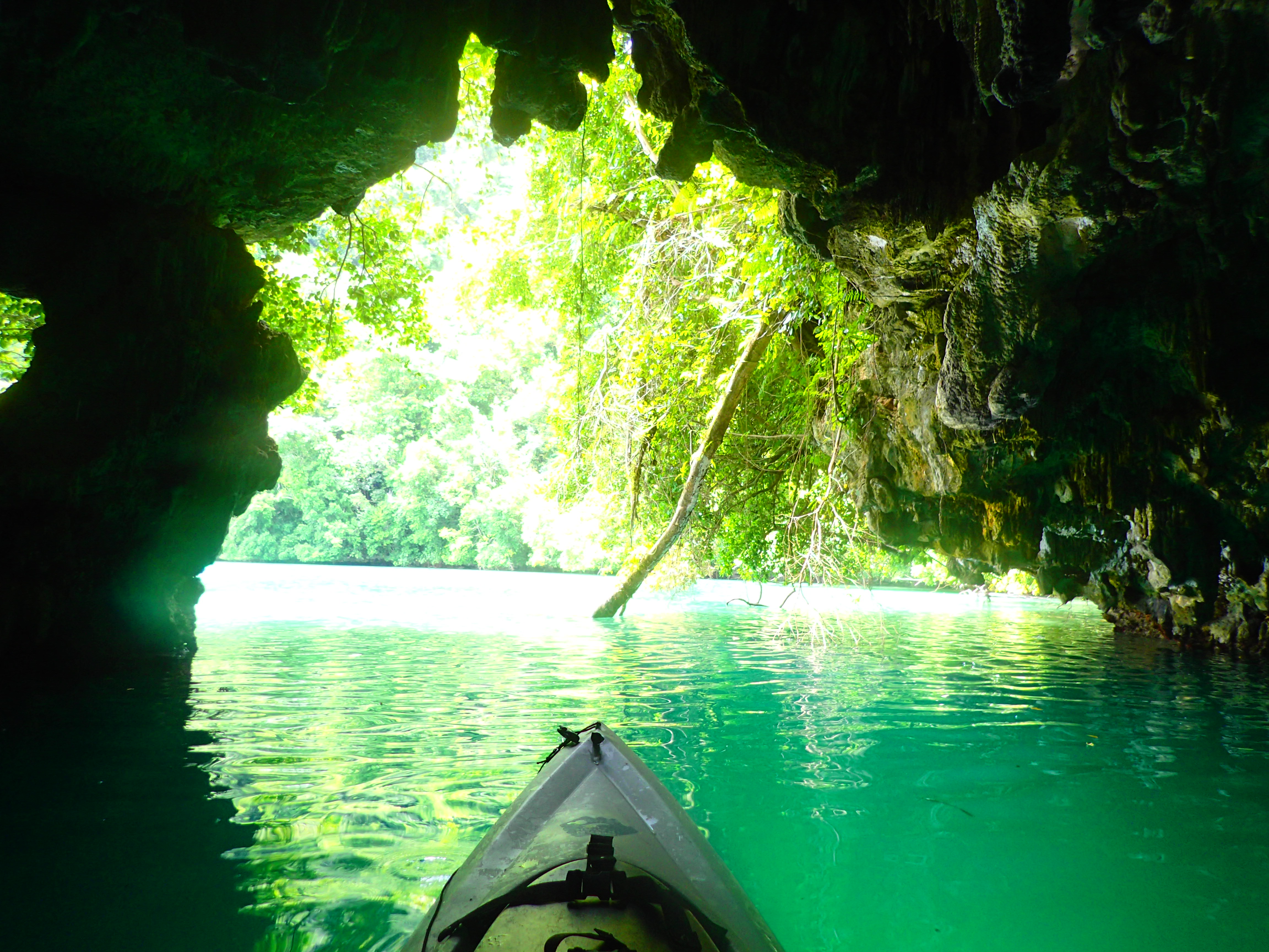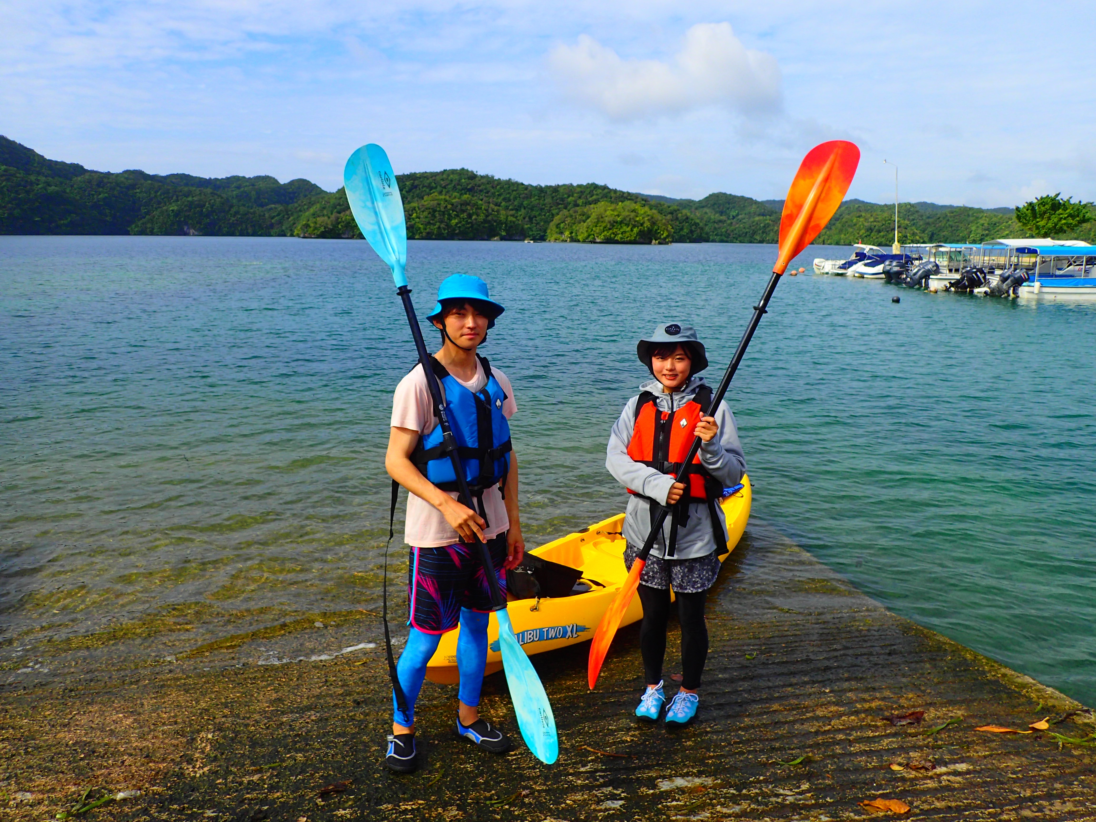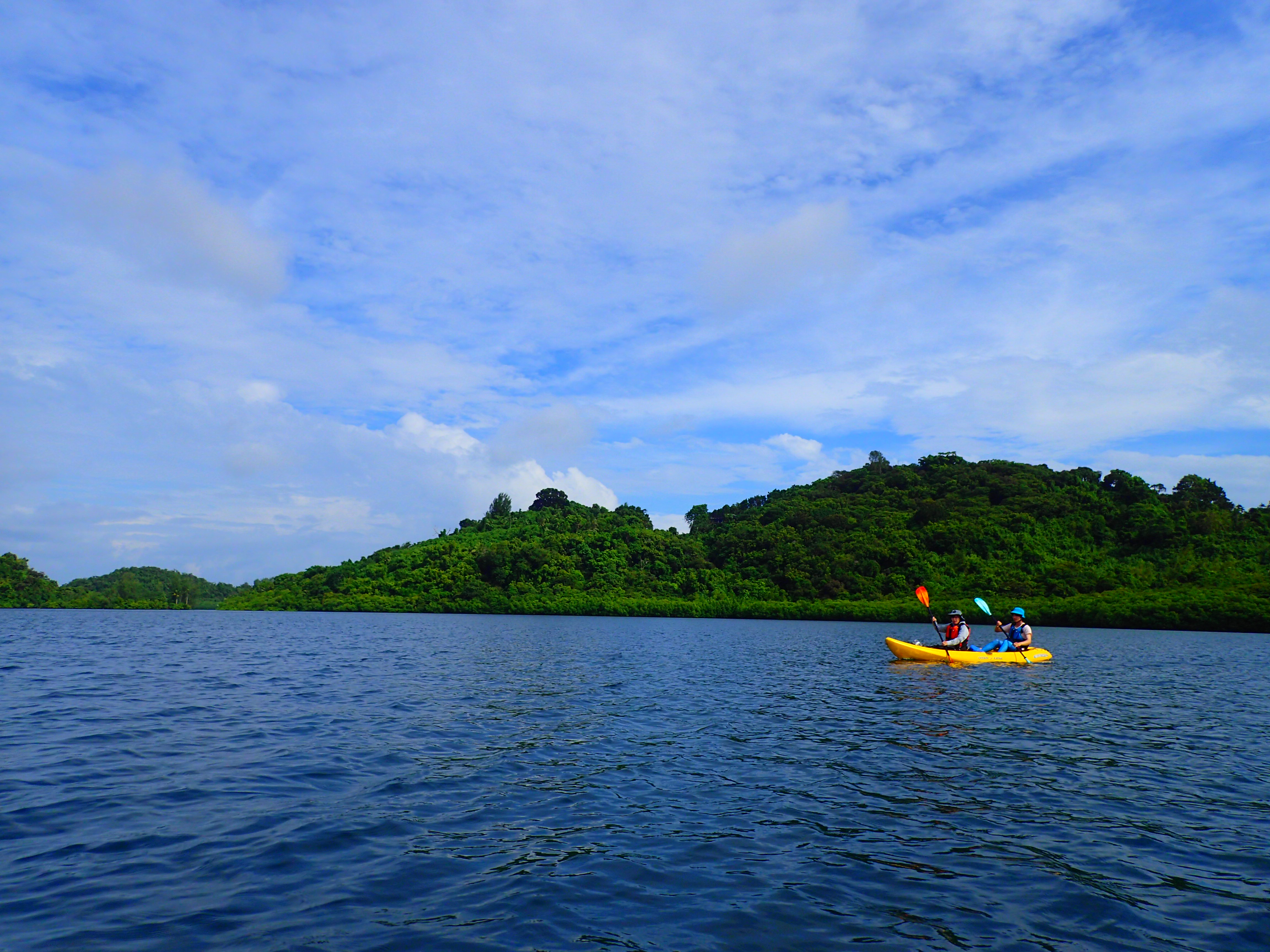 普段は半日ではここまで漕ぎませんが、コツを掴むと意外と進めちゃうんです、カヤック。またパラオ松島と呼ばれる穏やかな入江は波も無く、