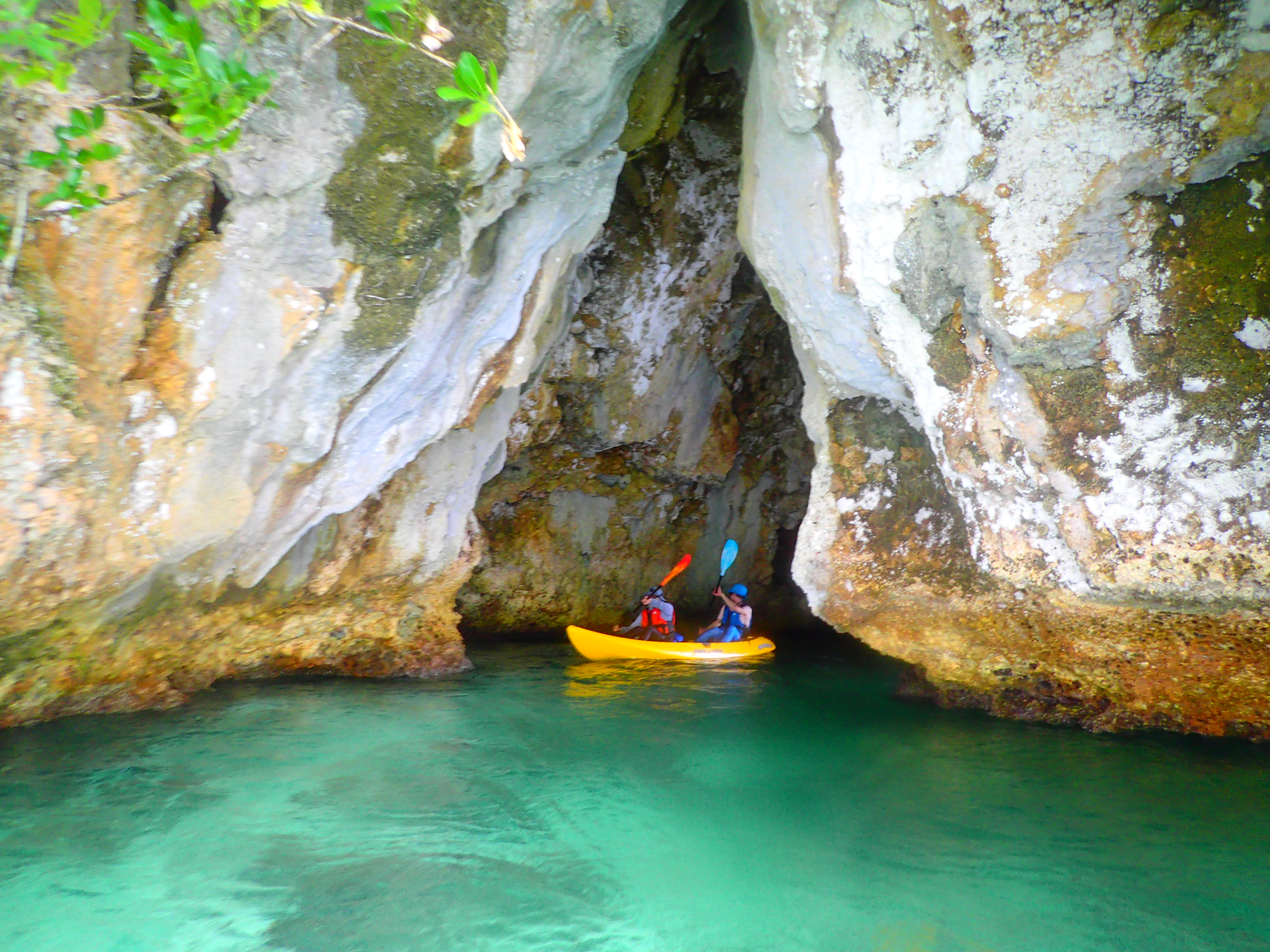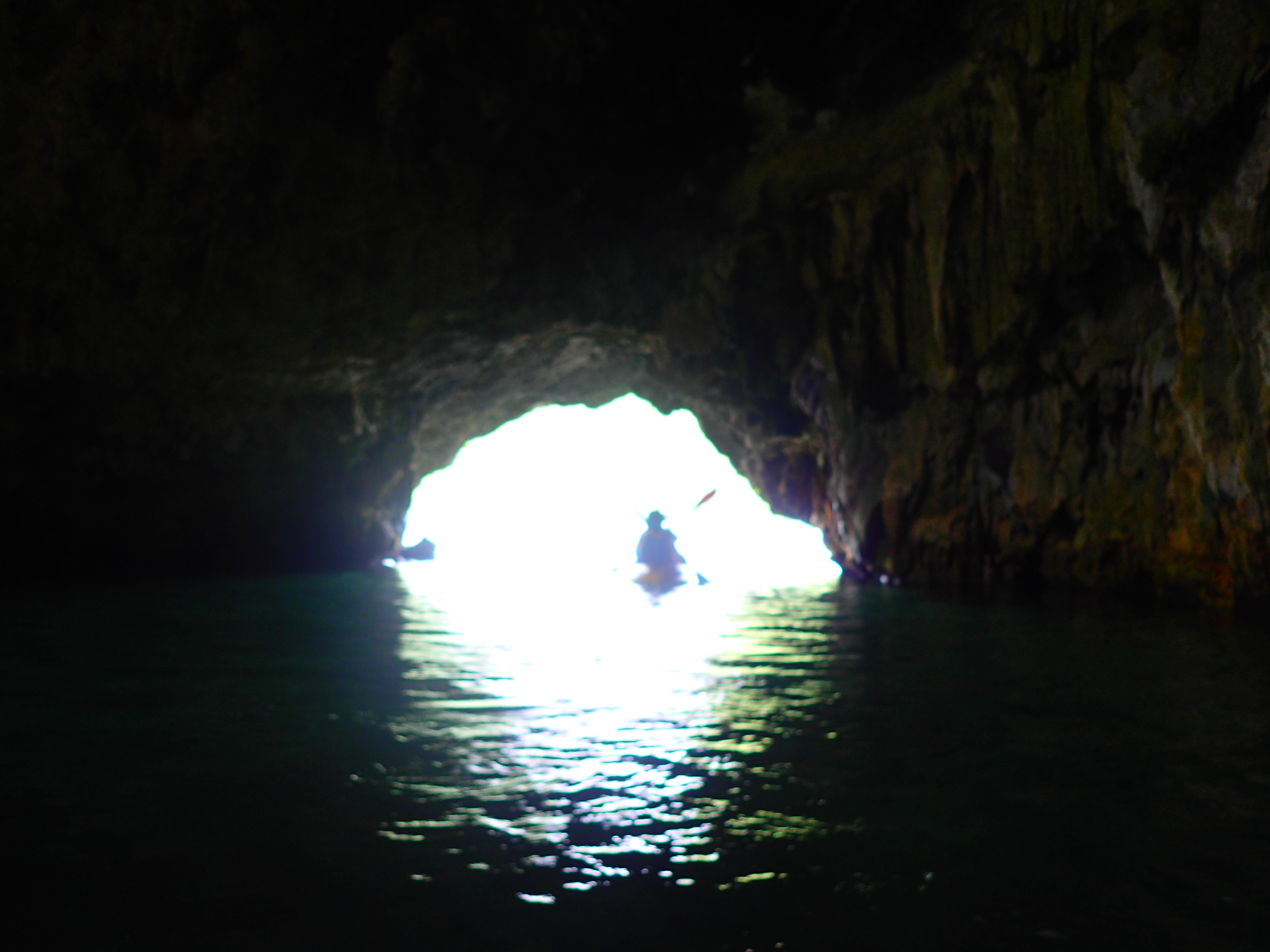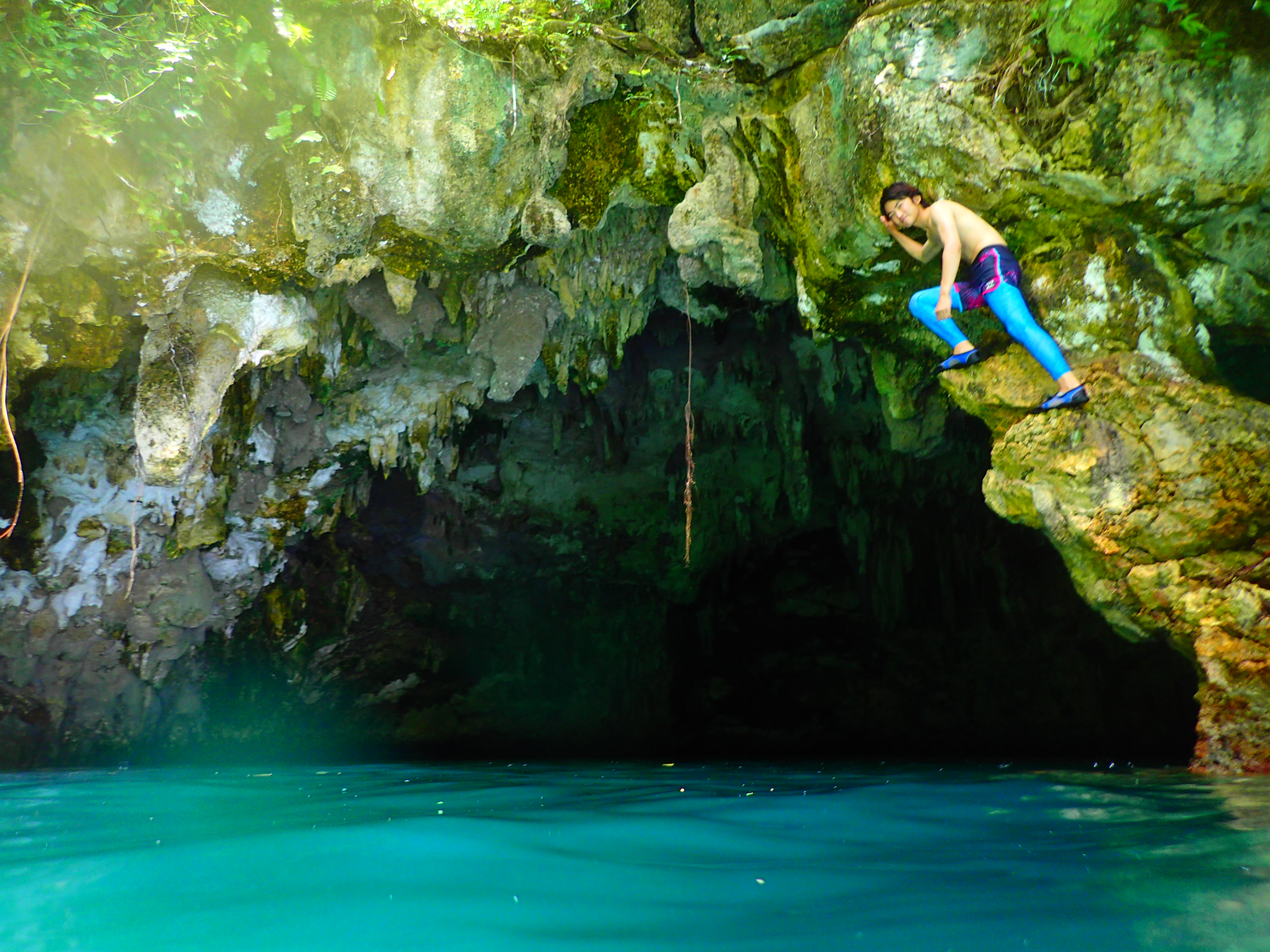 写真は洞窟内から見ると淡い色合いが美しい碧の洞窟ことEmerald Cave..