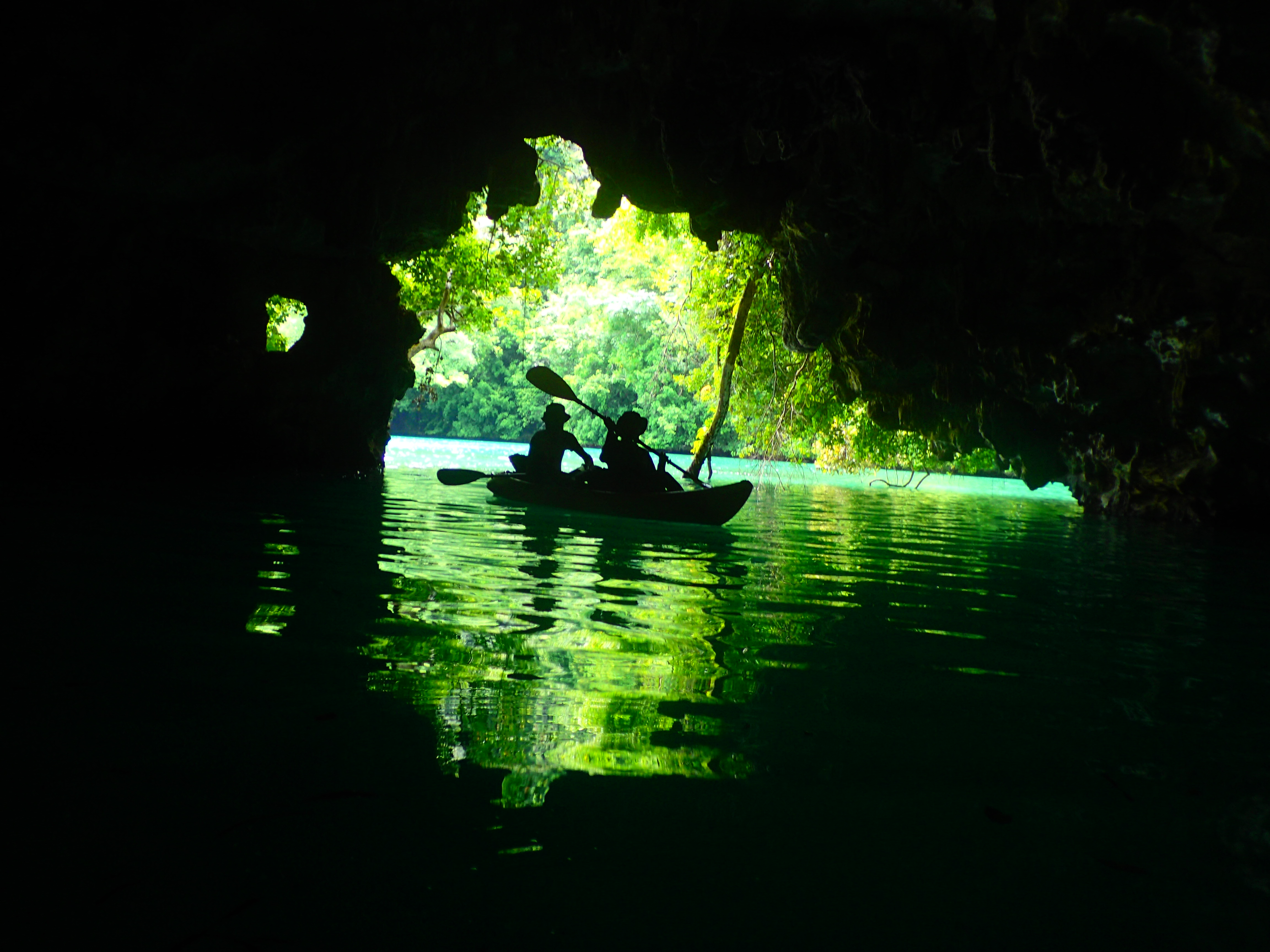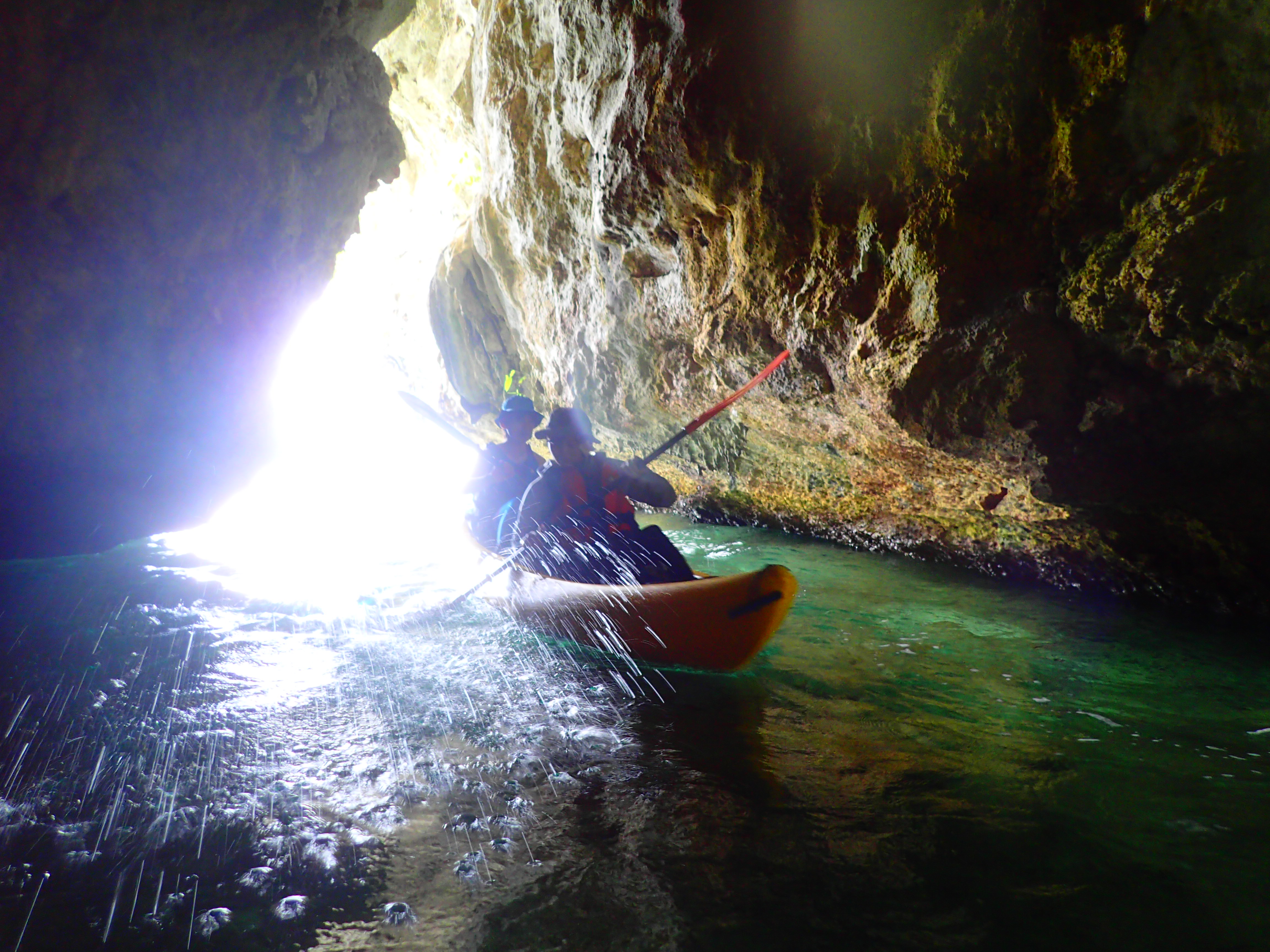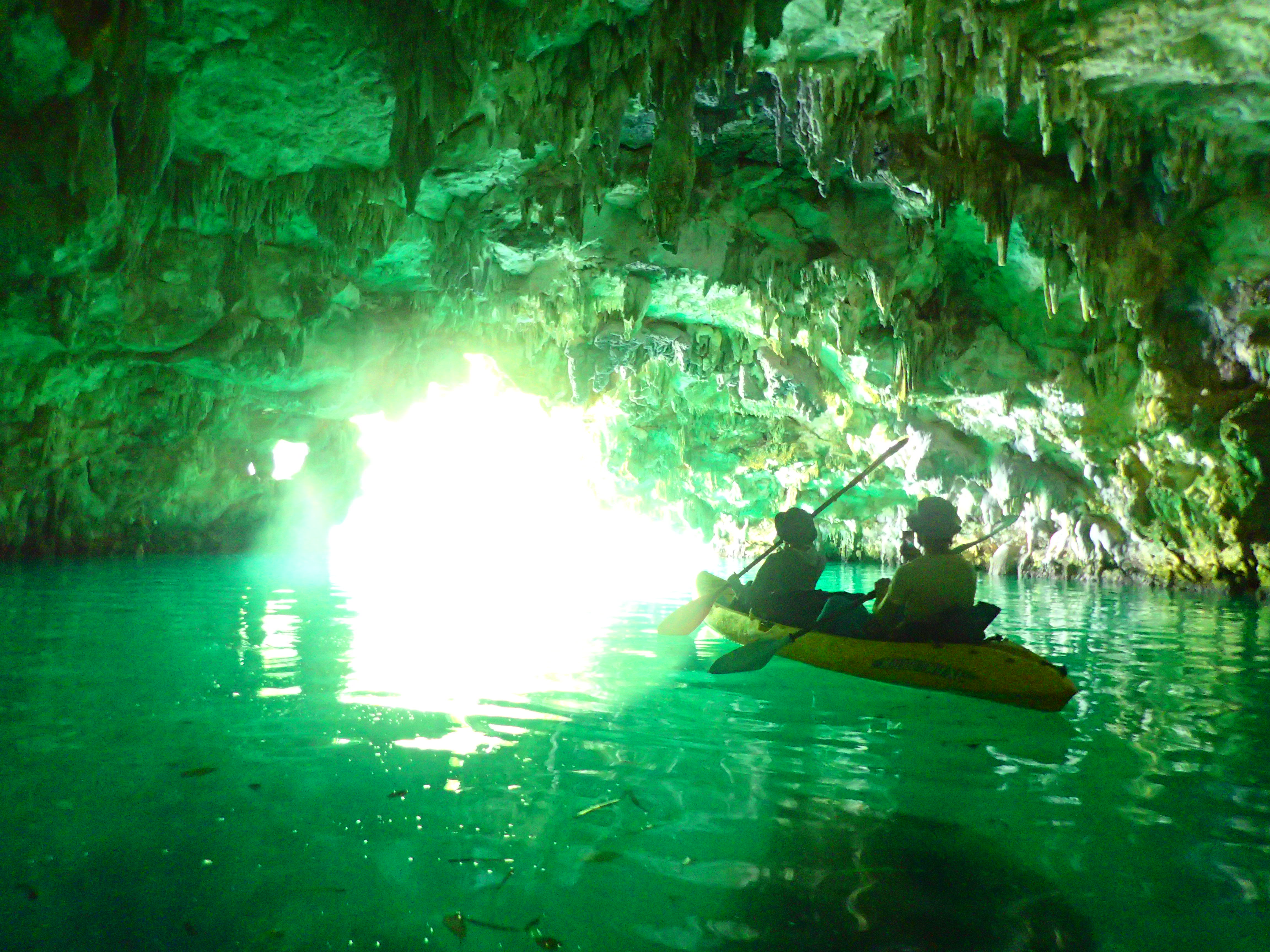 写真は洞窟内から見ると淡い色合いが美しい碧の洞窟ことEmerald Cave..
