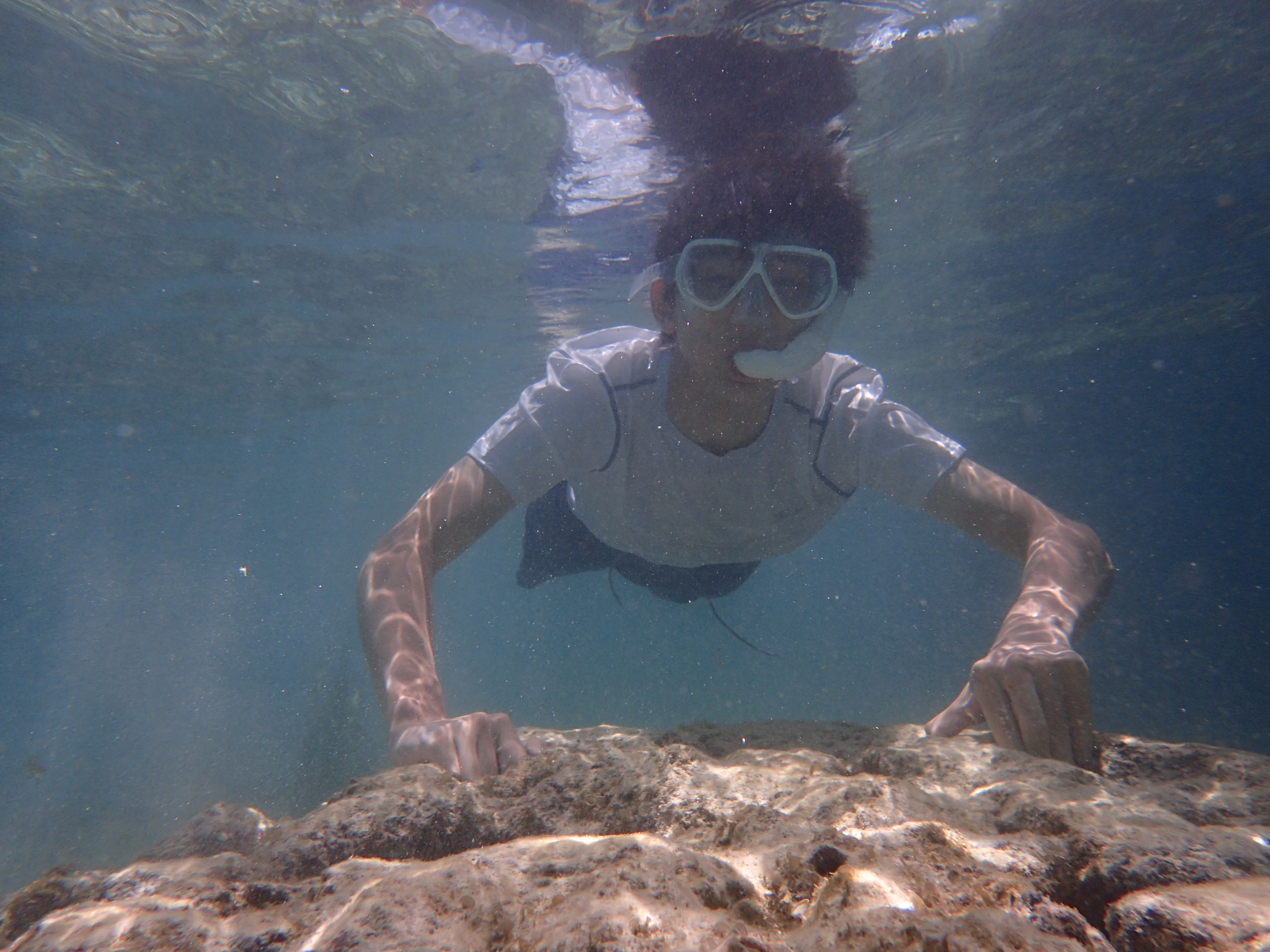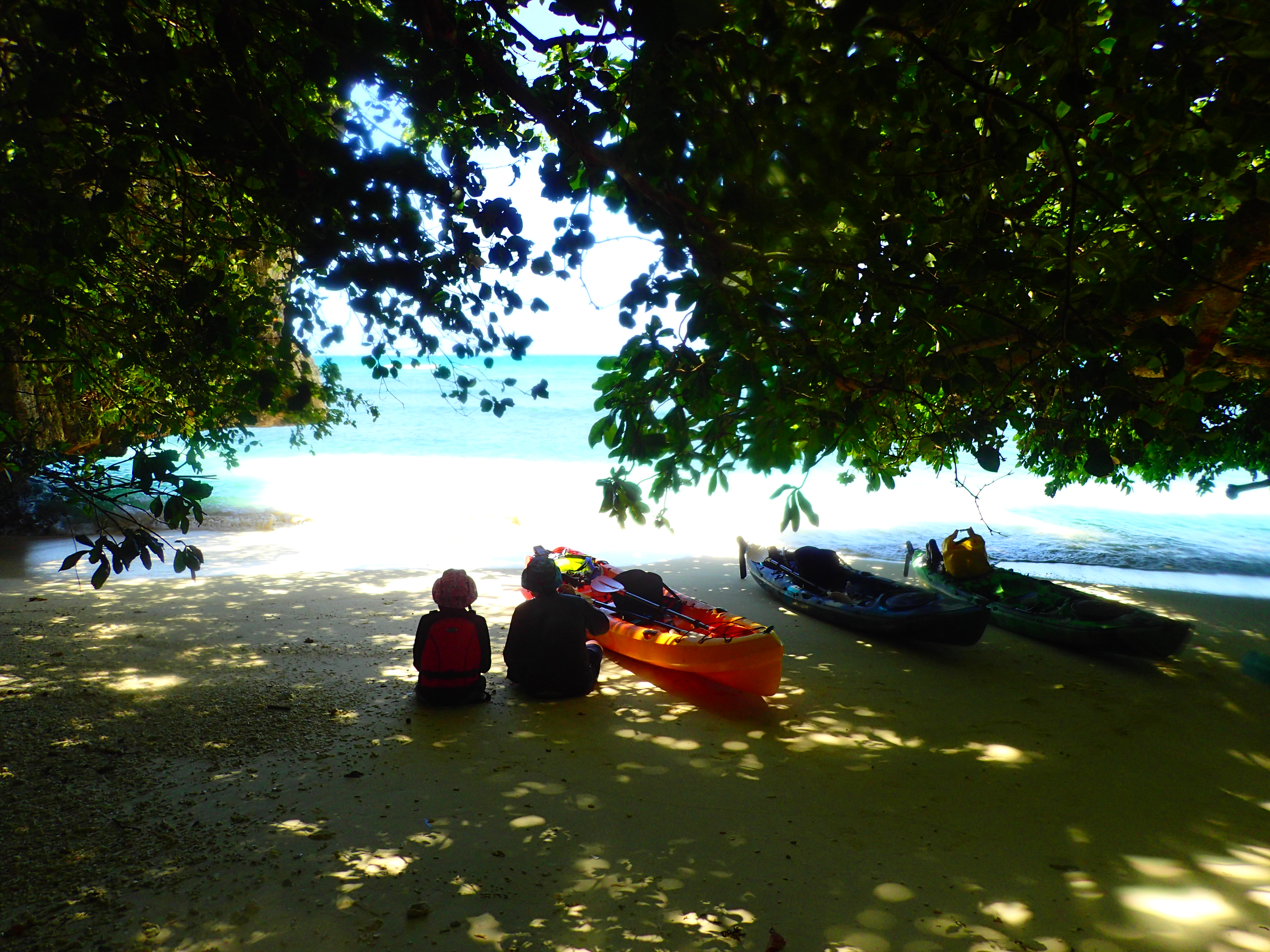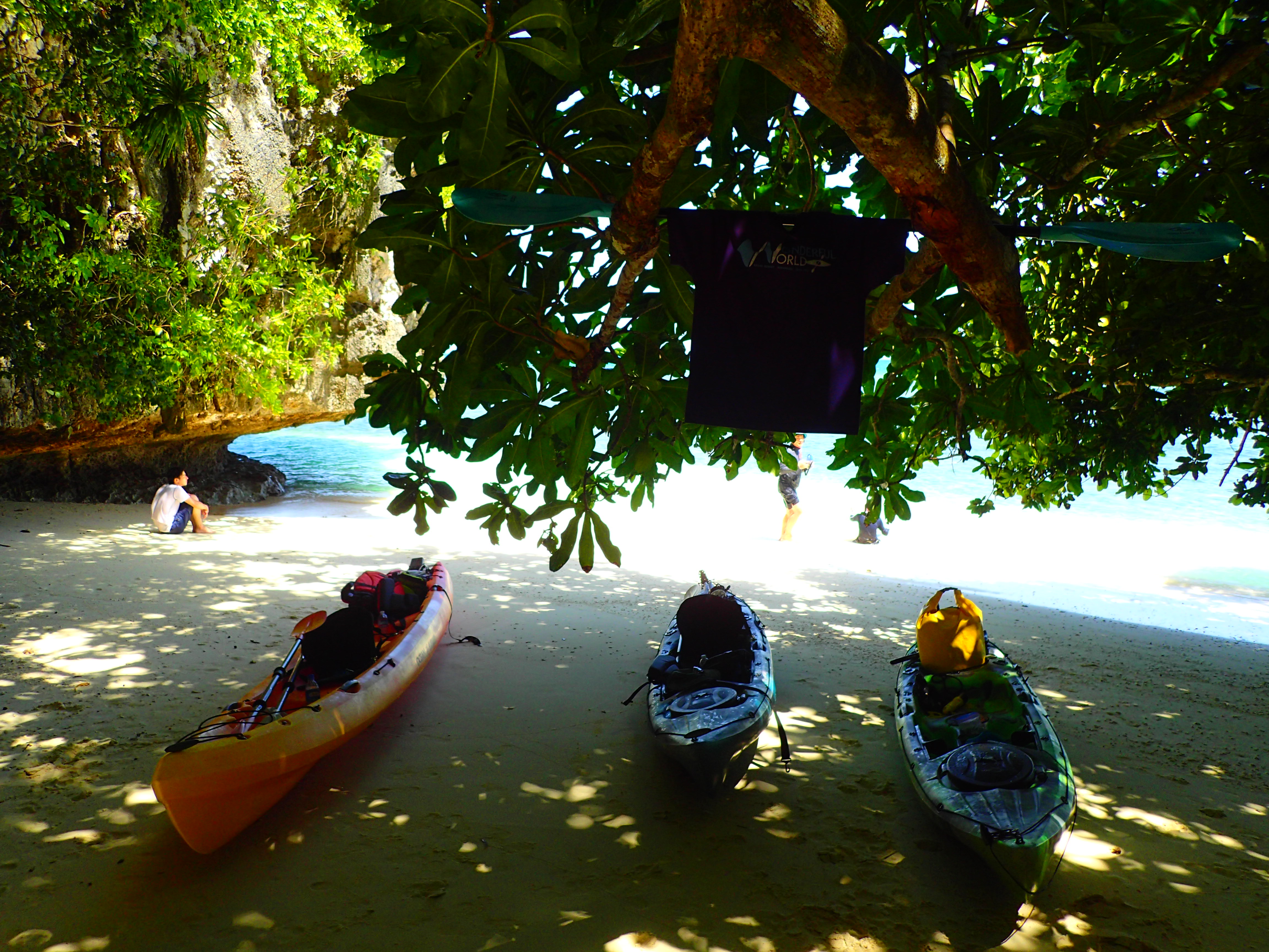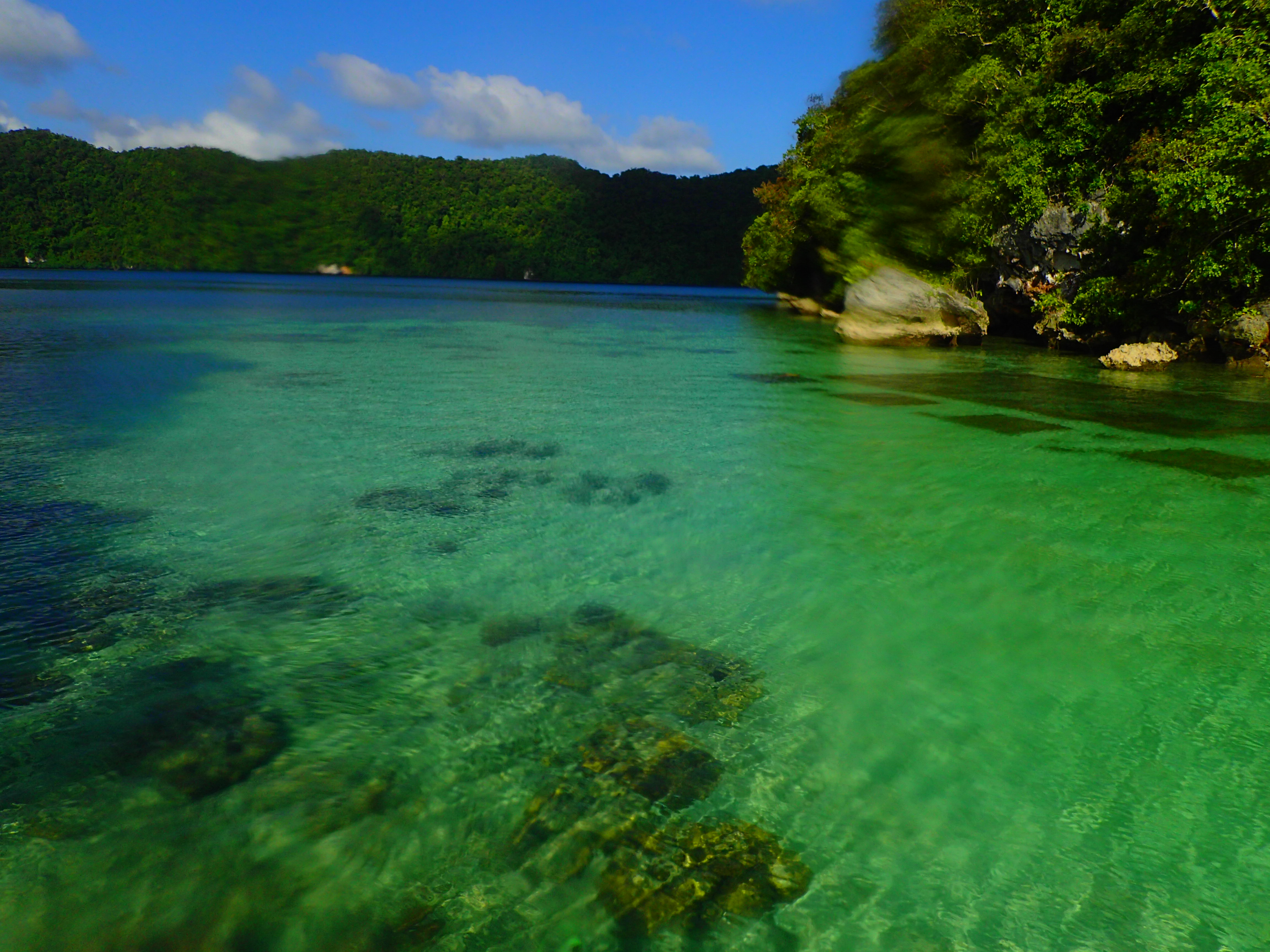 海と湖の間。穏やかな入江は覗いてみると中々素敵です。派手さは無いものの、独特の魅力があり、お客様に声を掛けないで見守っていると皆様かなりの時間スノーケルを楽しんでいます。カヤックからドボン!とスノーケルをするのはワンダフルワールド・パラオ独特の遊び方。カヤックに上がる際はお手伝いしまうのでご安心ください。