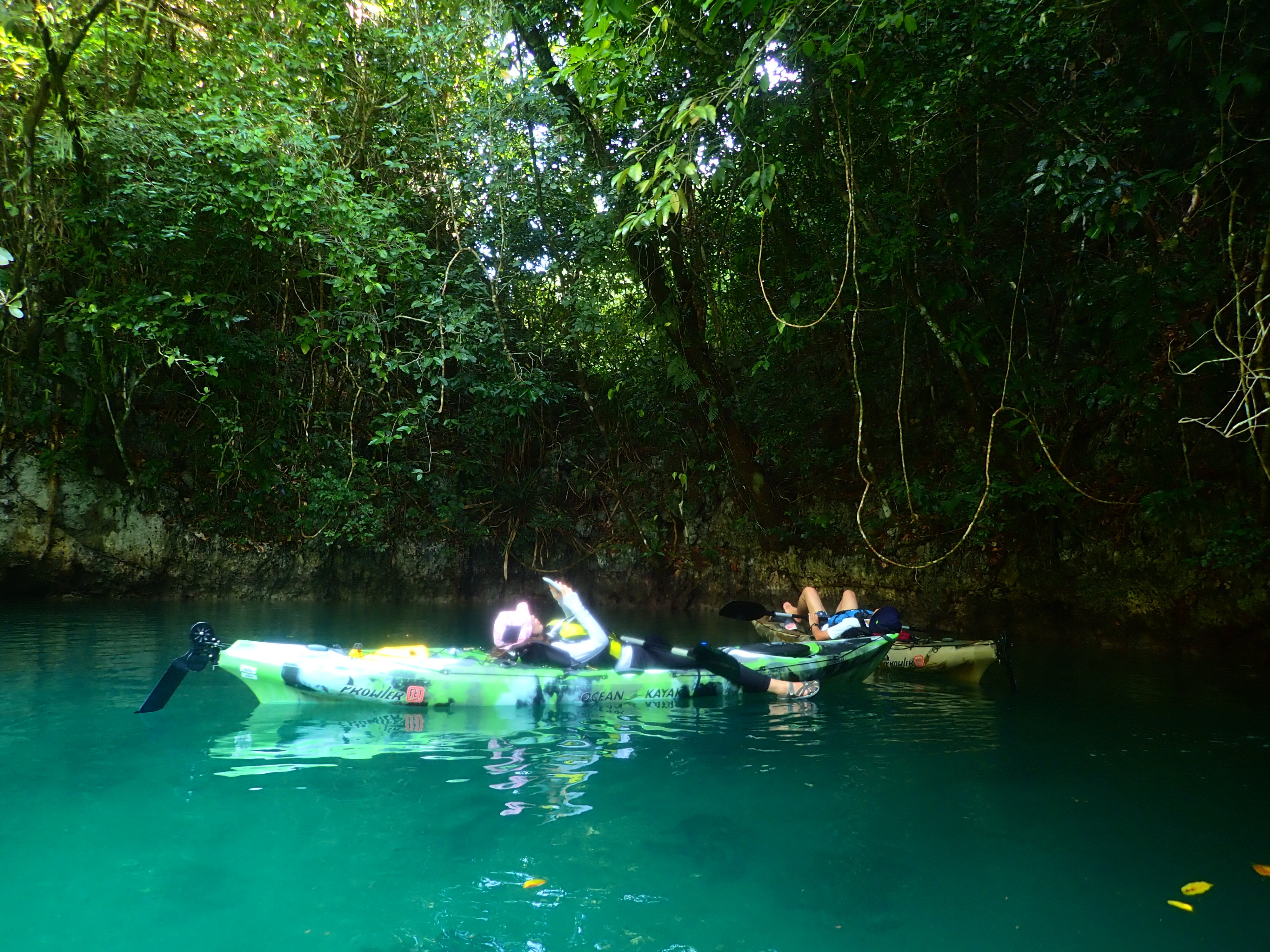 少し漕いだら入江で休憩。ジャングルの木漏れ日を浴びながらカヤックの上で寝そべると、野鳥や蝉の鳴き声が心地よく、本当に寝てしまいそうになる事も。