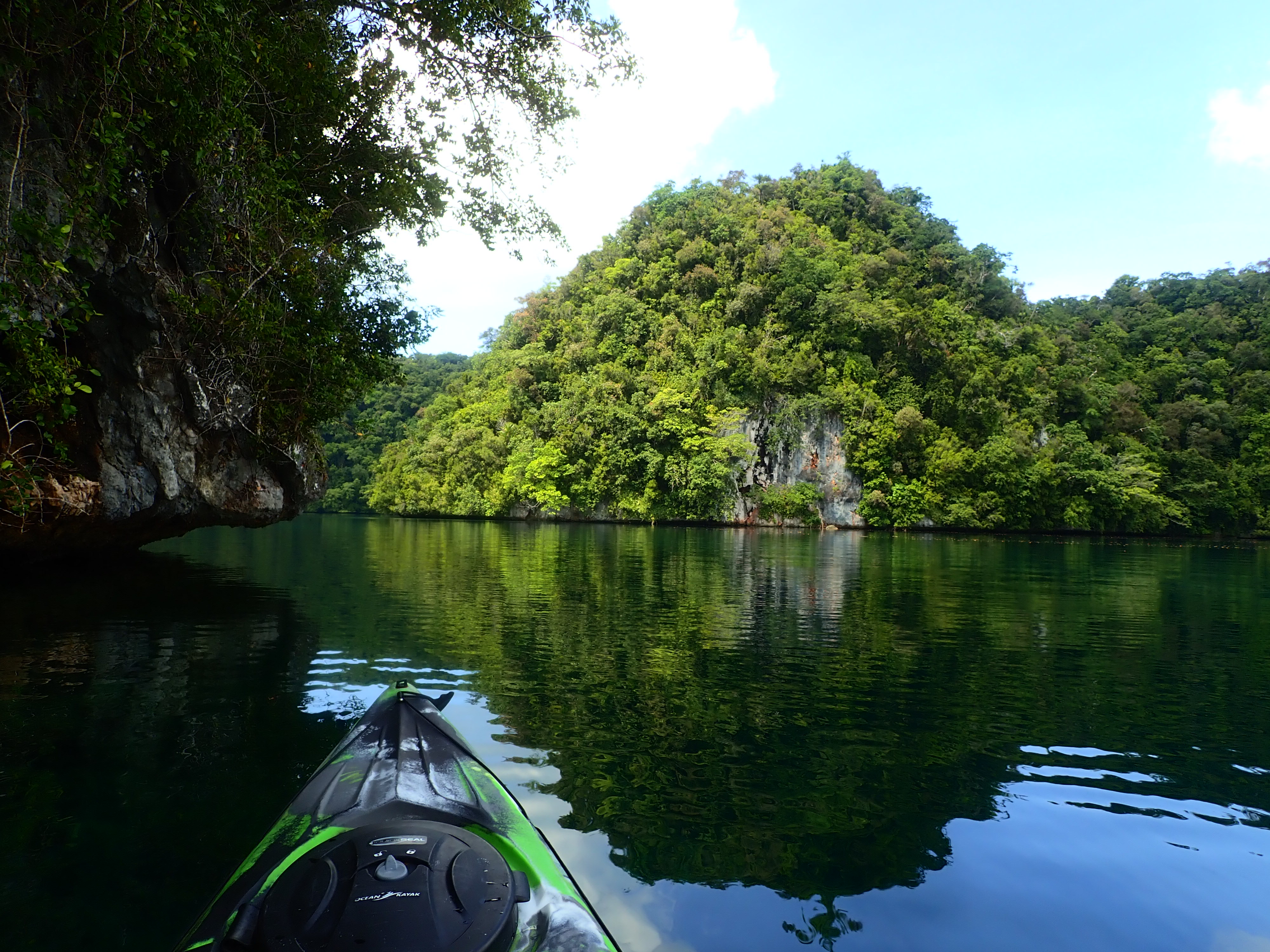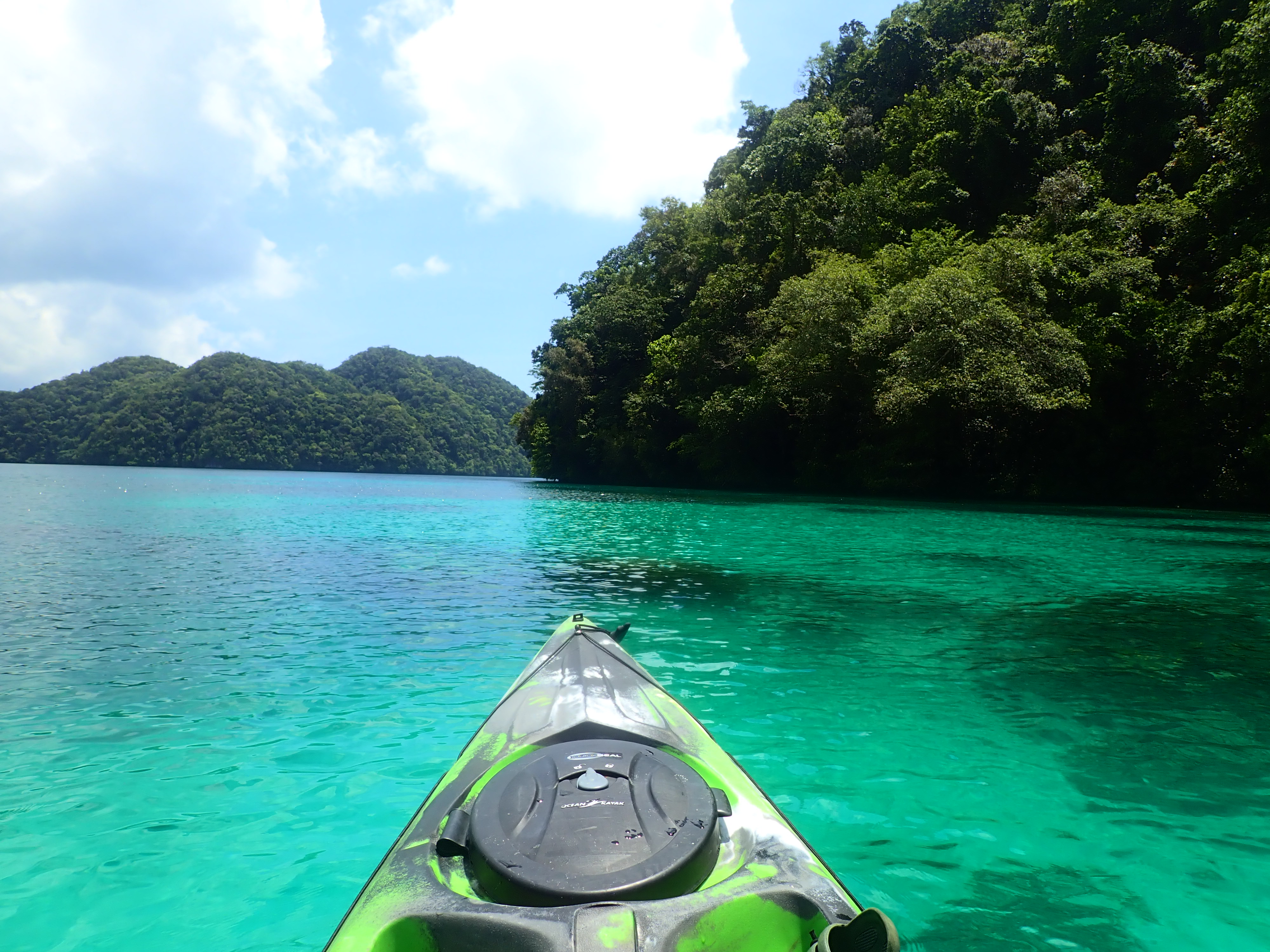 ここ数日で催行のコンディション。風、ほぼ無風、波無し、天気晴れ。少し雲もありましたが、南国のカヤッキングにはちょうど良い日陰になるので、実は雲は大変ありがたいモノです。