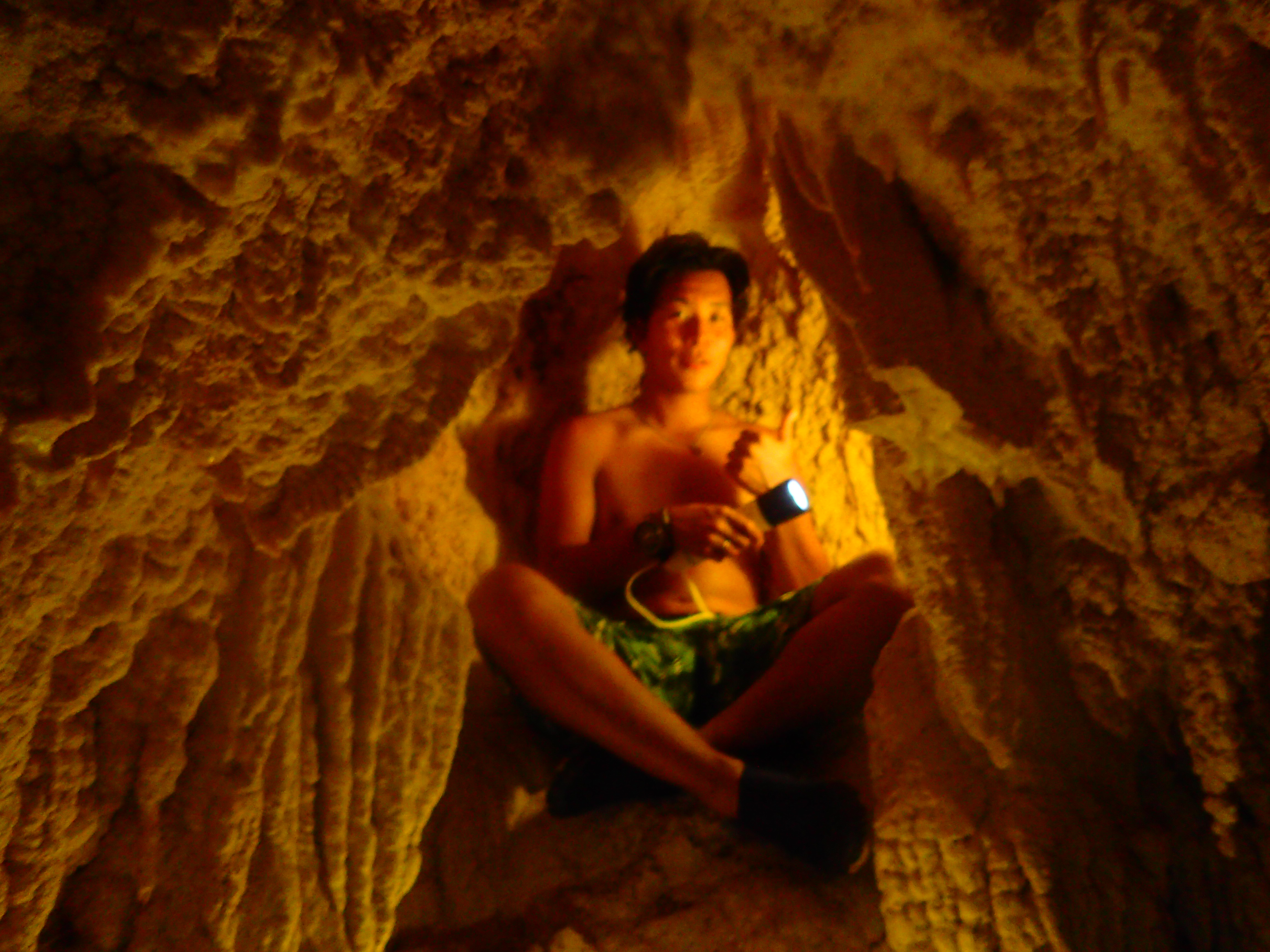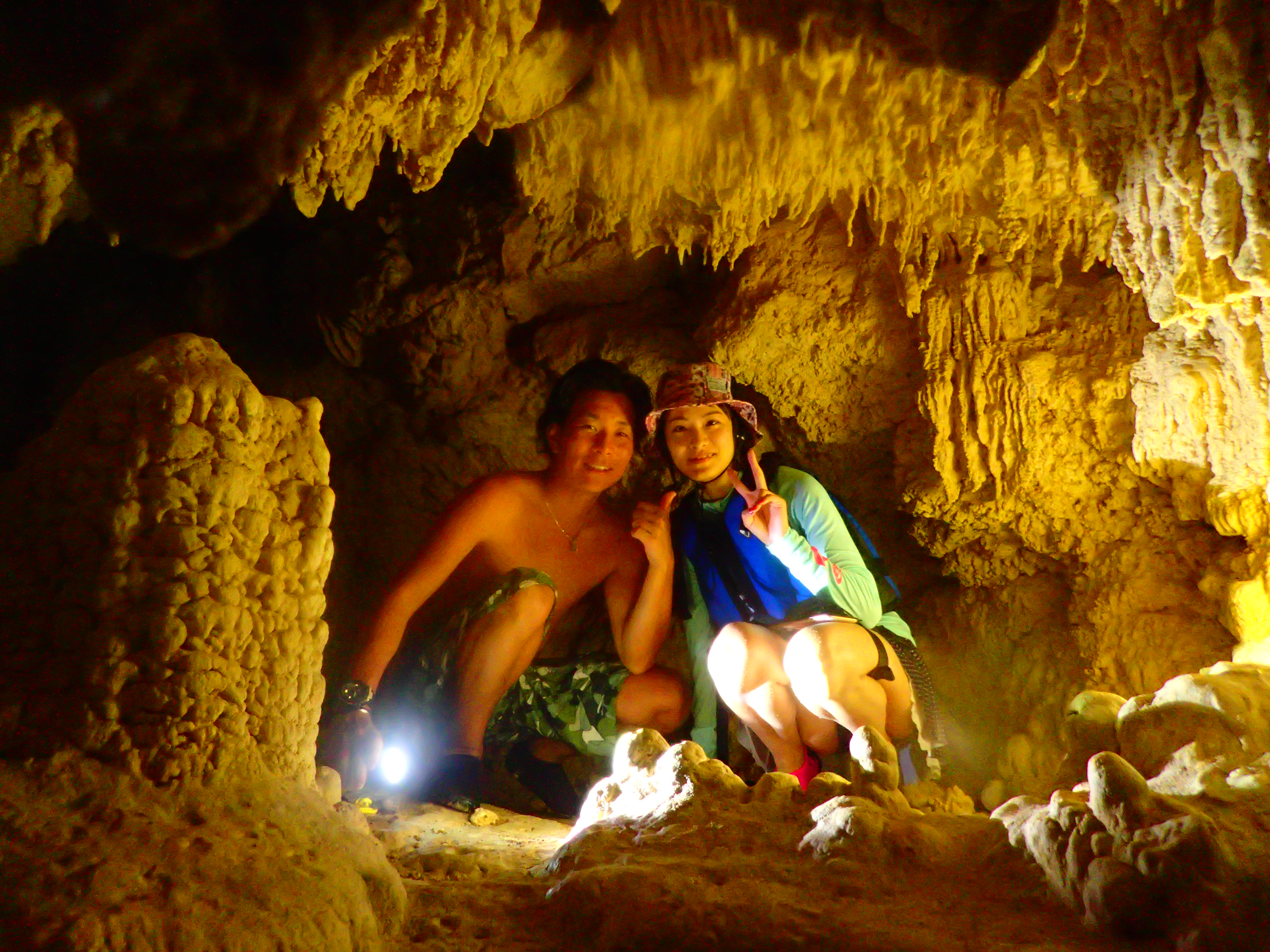鍾乳洞で記念撮影、なかなか素敵な一枚。