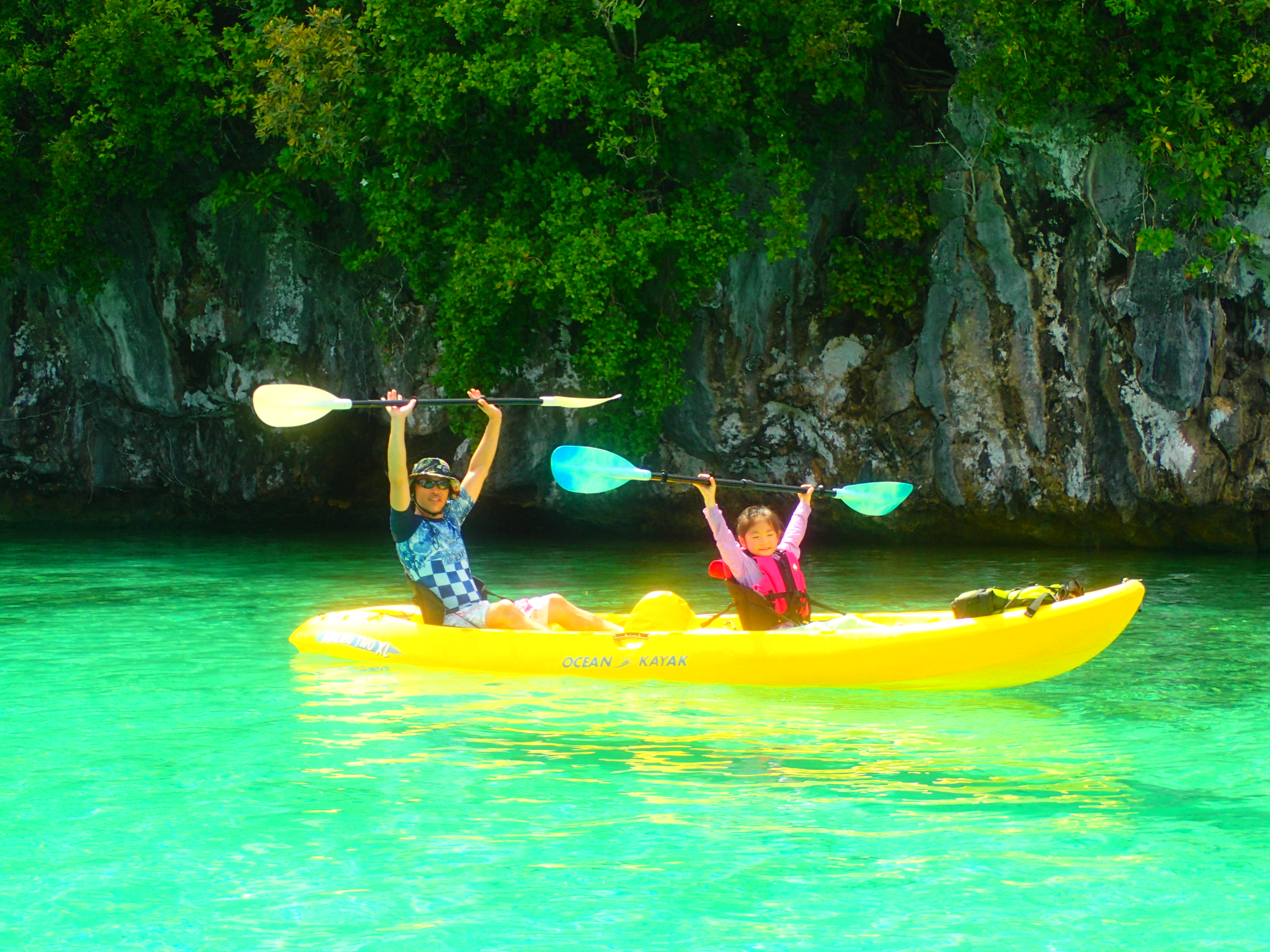 天気も良くパラオ日和。お子さんもパドリングにトライ!中々様になってます♪