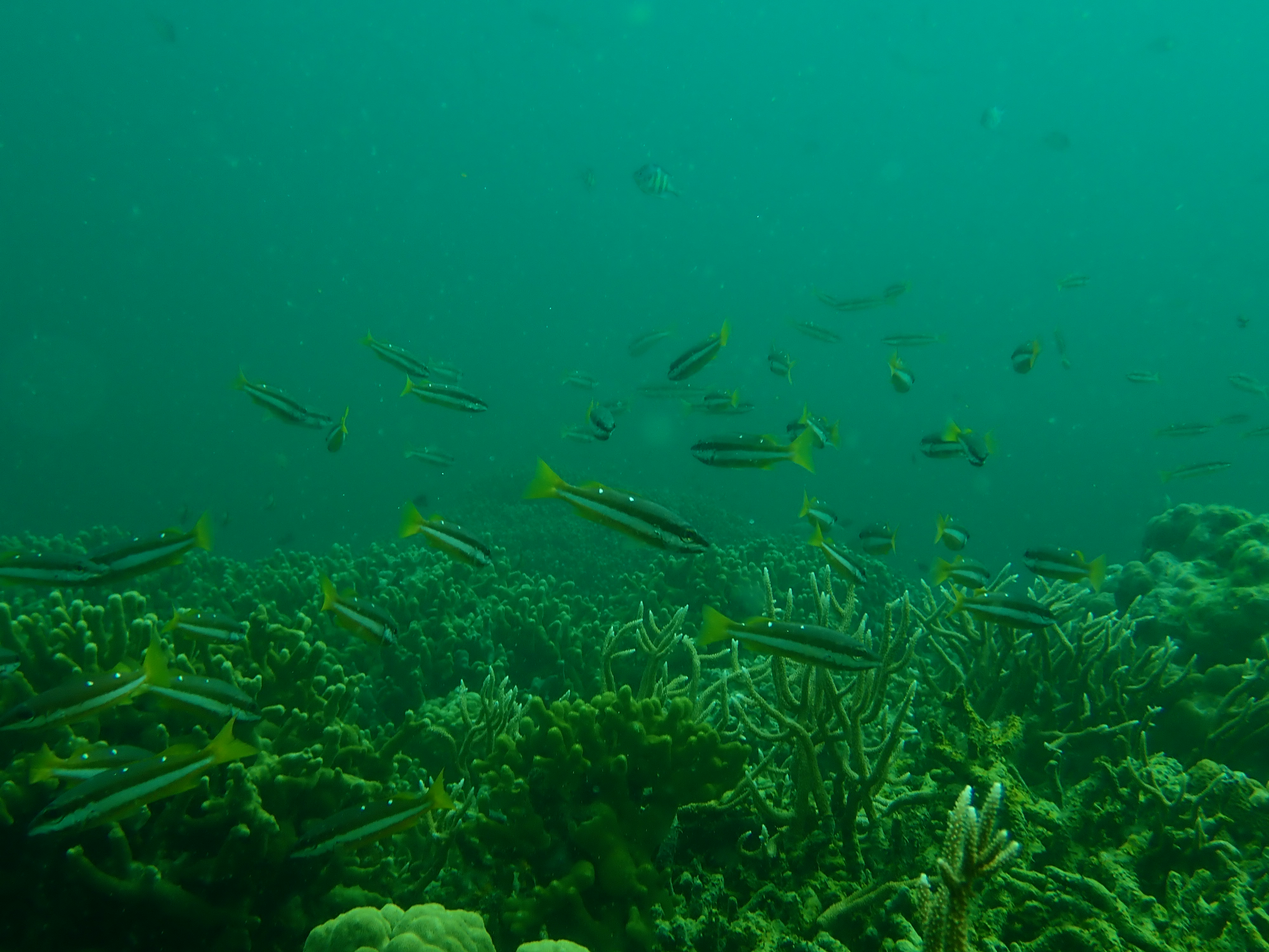 It was first snorkeling,There were various kinds of small fish.Black and white fish were Whitetail dascyllus and many sardines were swimming behind.The picture below is a juvenile fish of Harlequin sweetlips. The pattern is cute fish. When becoming an adult, it is not cute and it becomes delicious fish.
