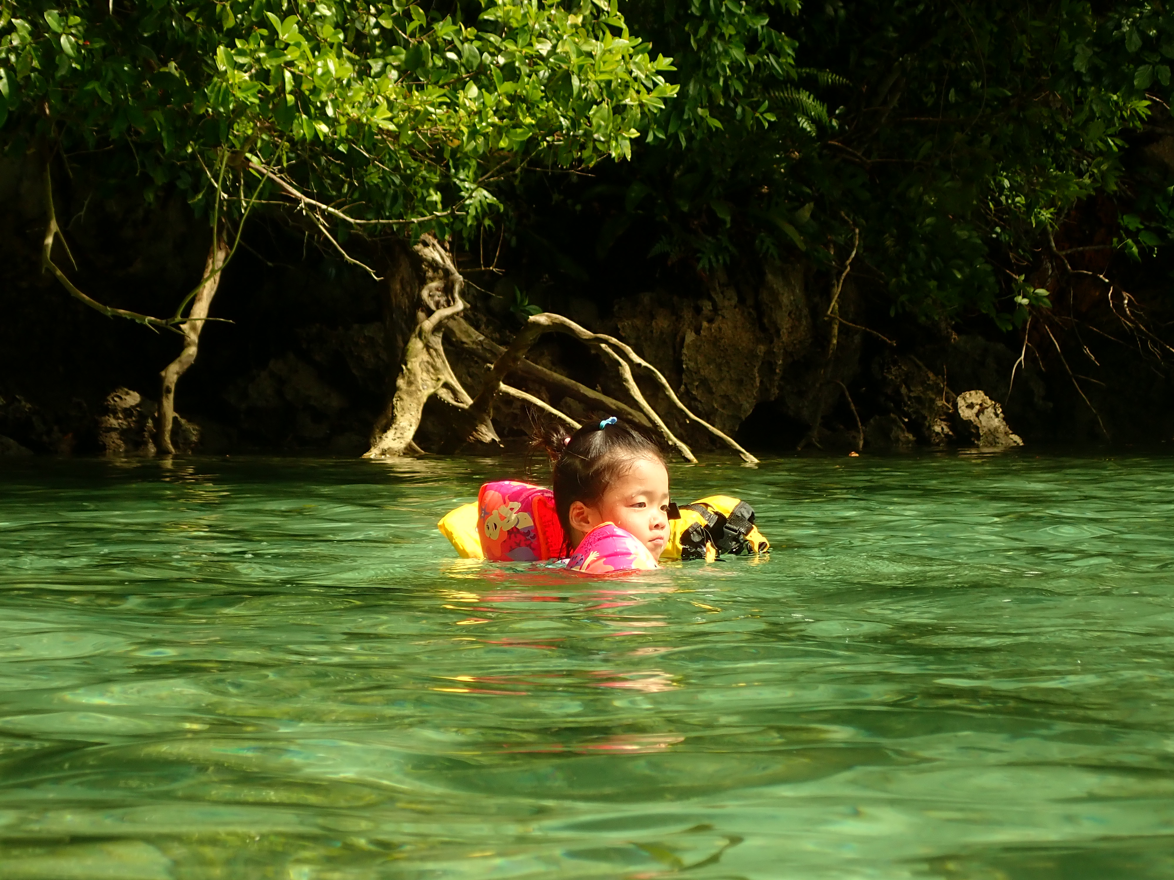 Snorkel was a calm cove.Since there was no wave, They could relax with fun long time.