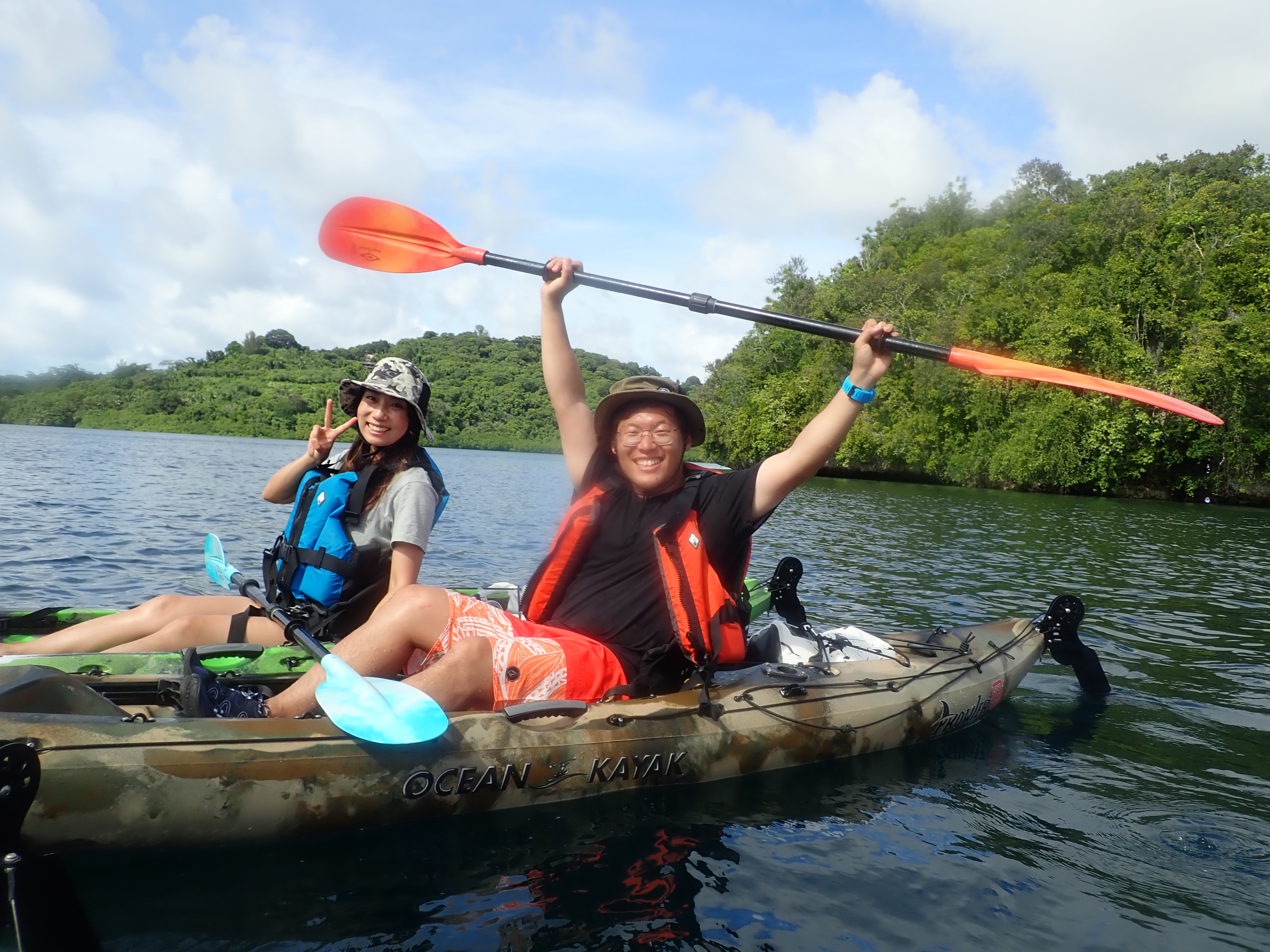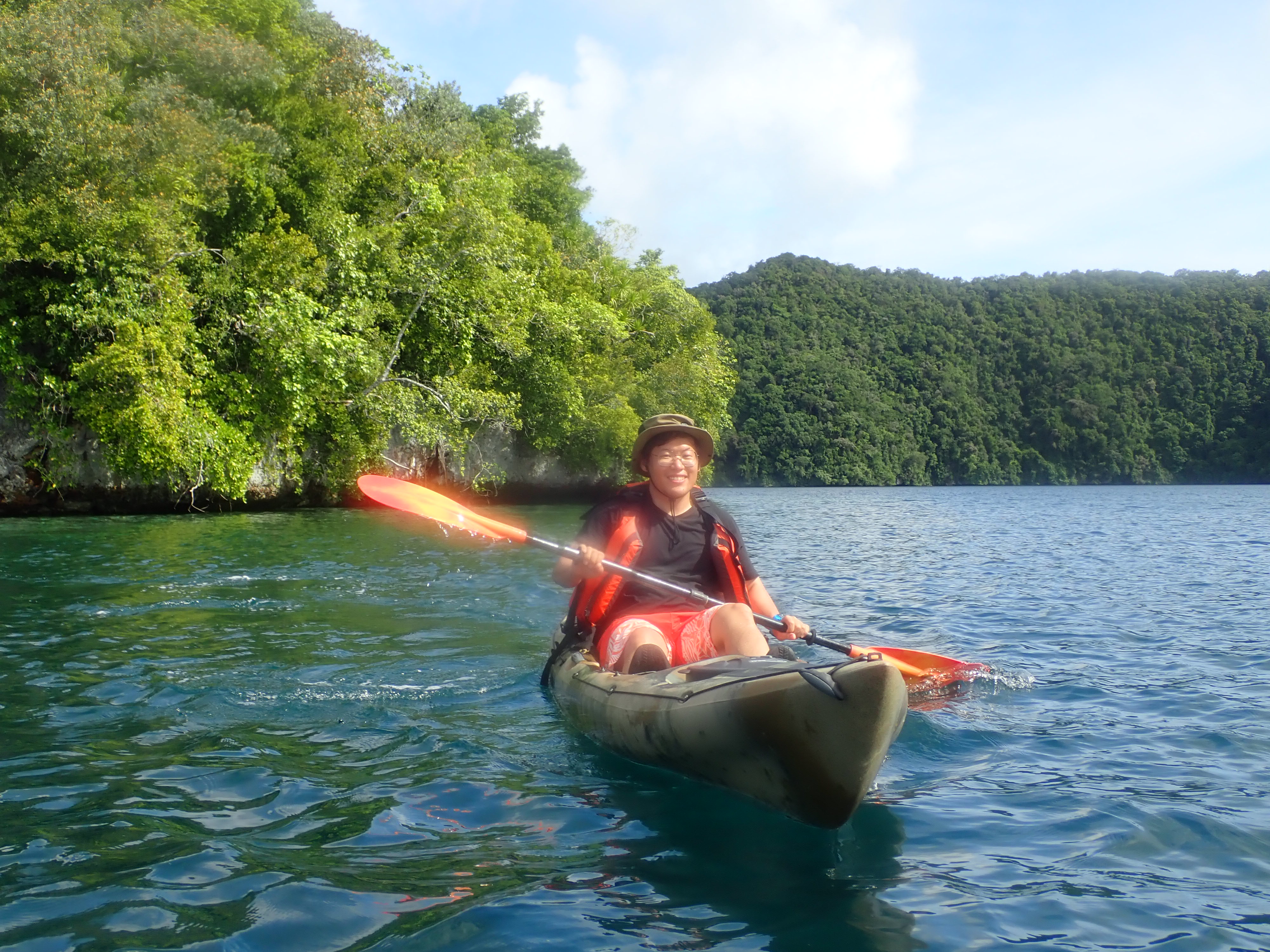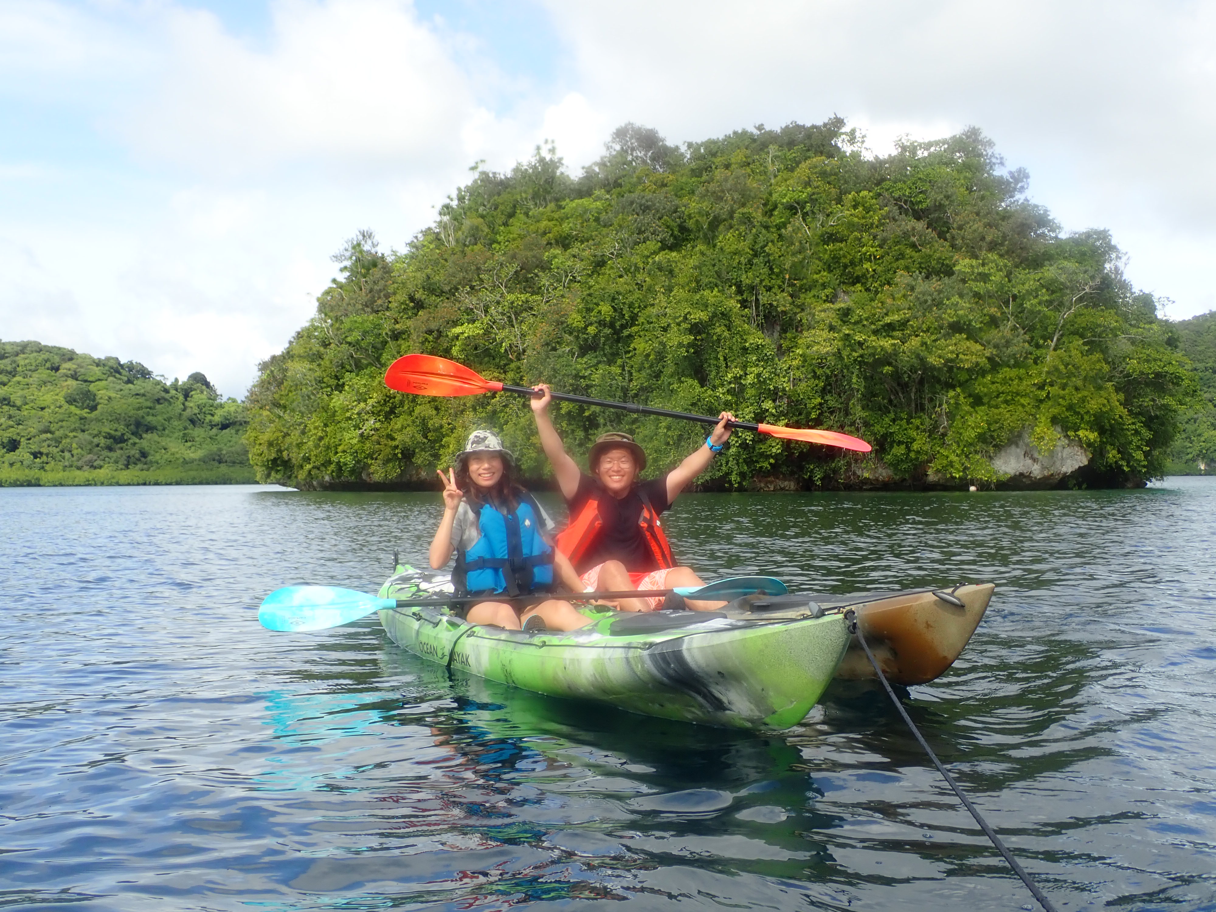 We went to Nikko bay kayaking for afternoon.They are kayaking for the first time today. He was good at kayaking sense. Was she a little hard?