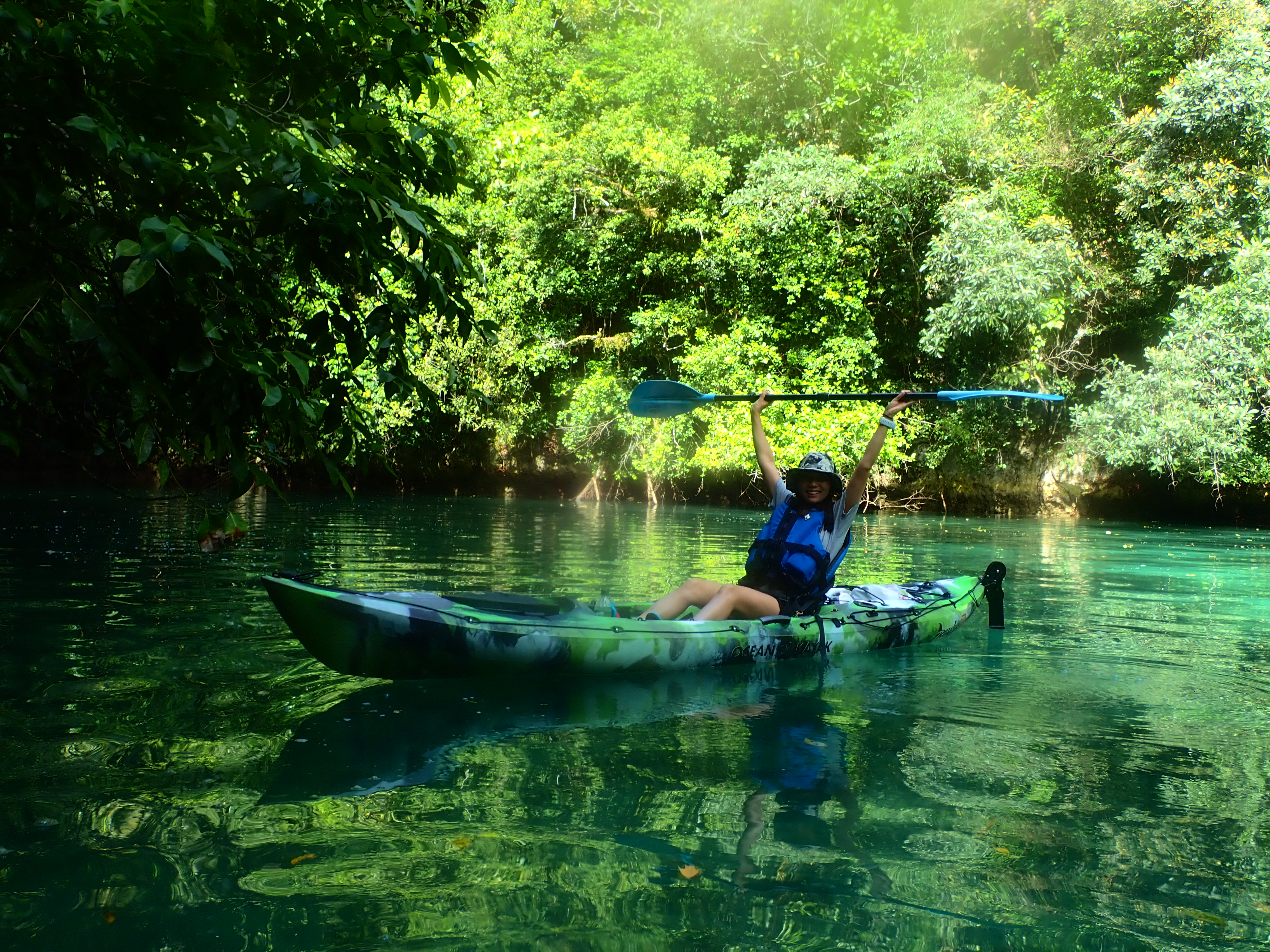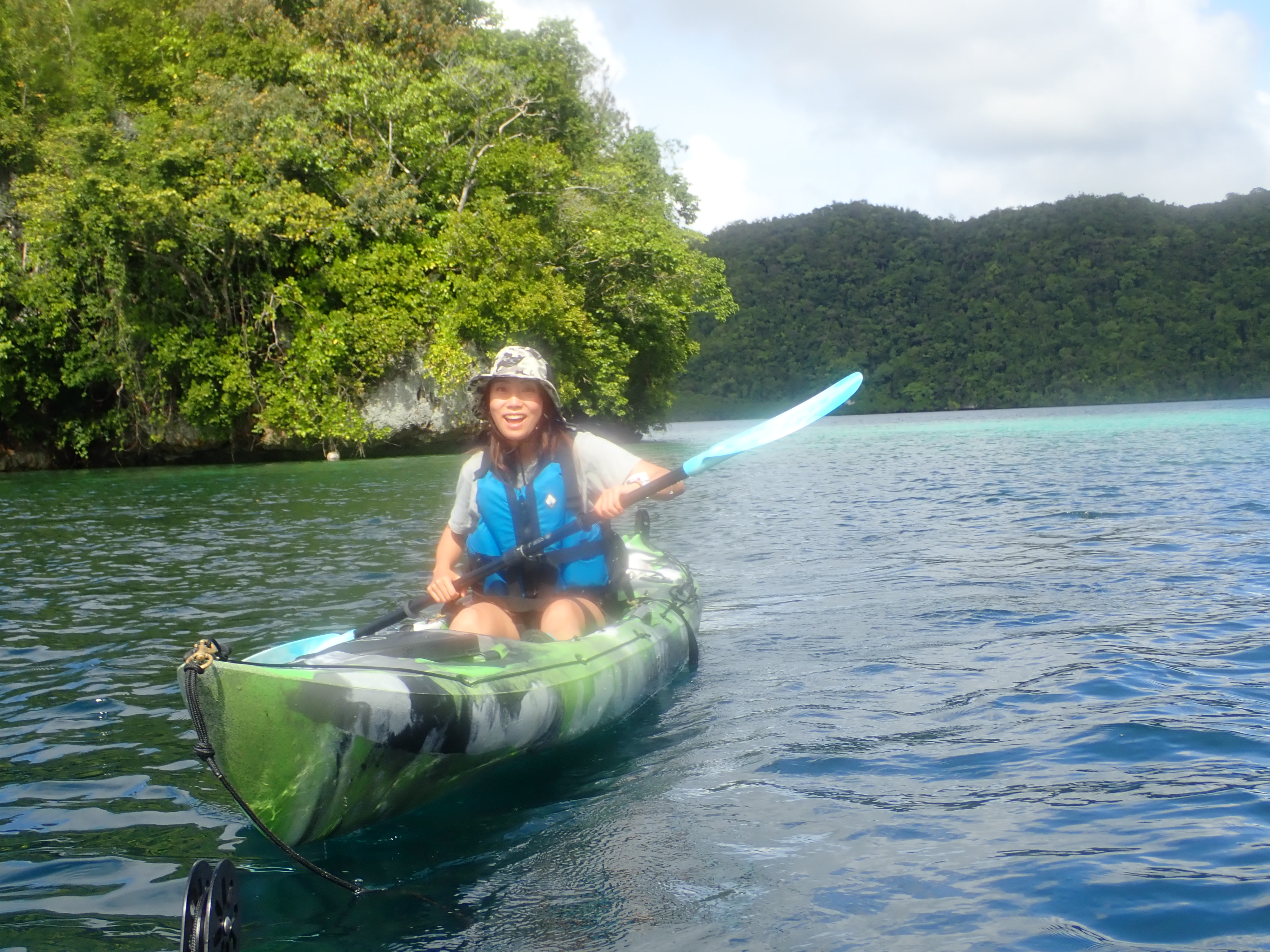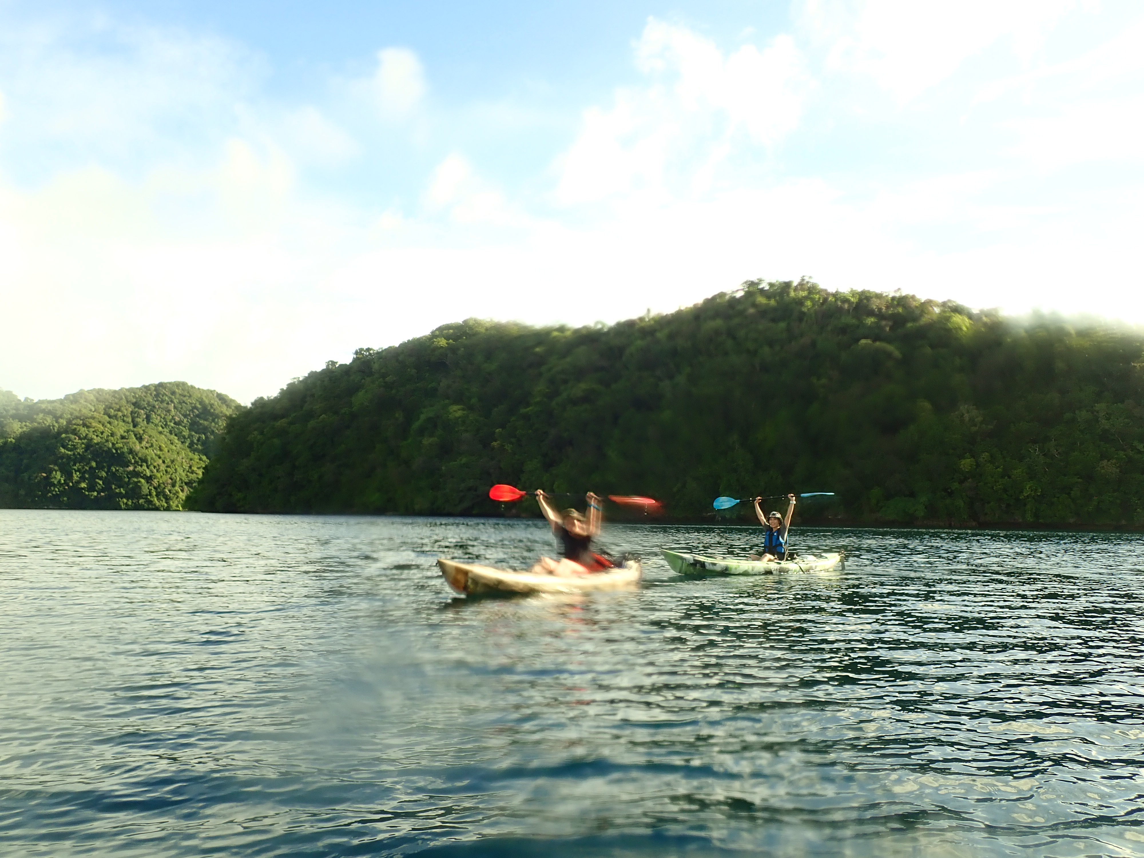 We went to Nikko bay kayaking for afternoon.They are kayaking for the first time today. He was good at kayaking sense. Was she a little hard?