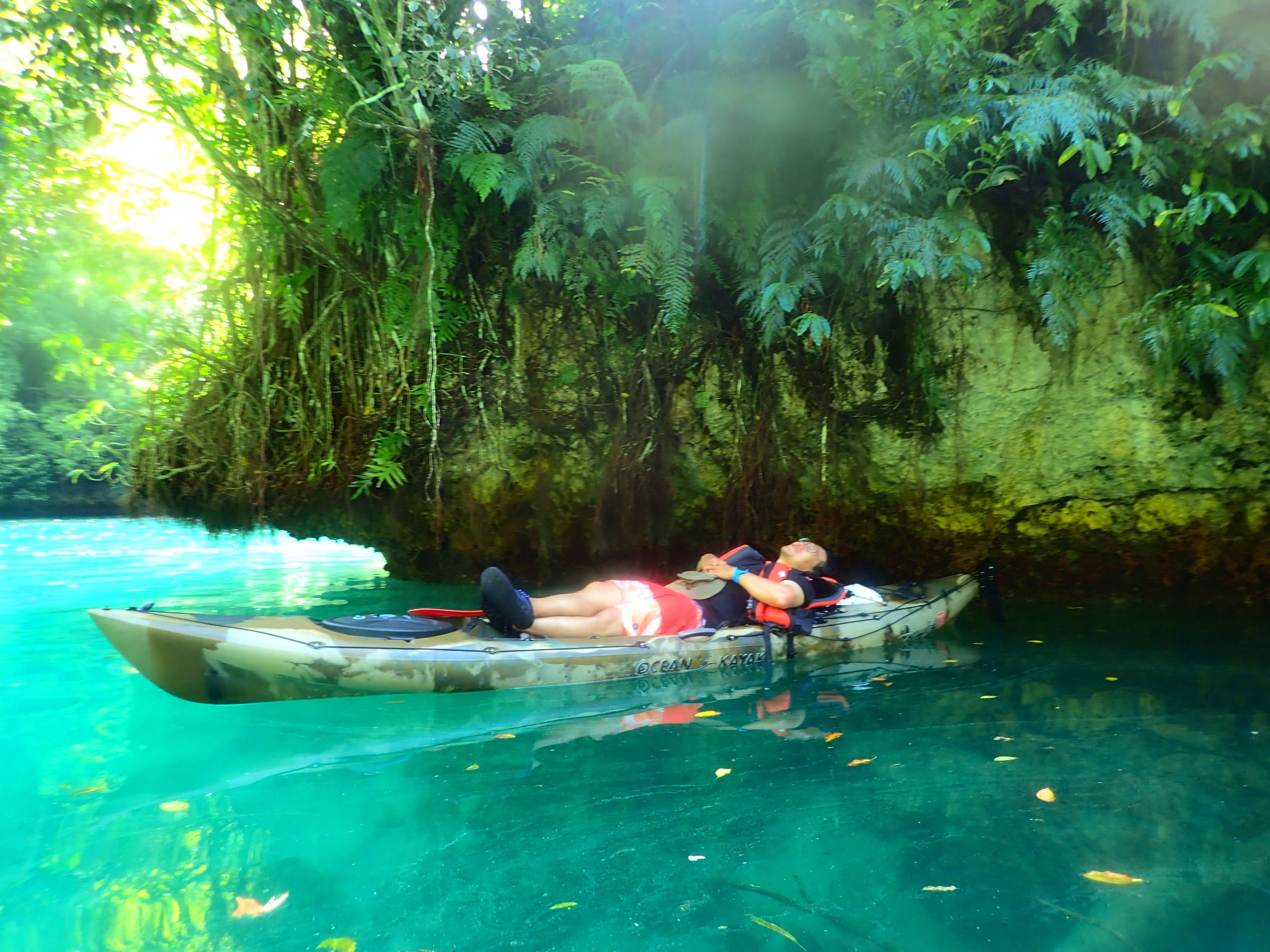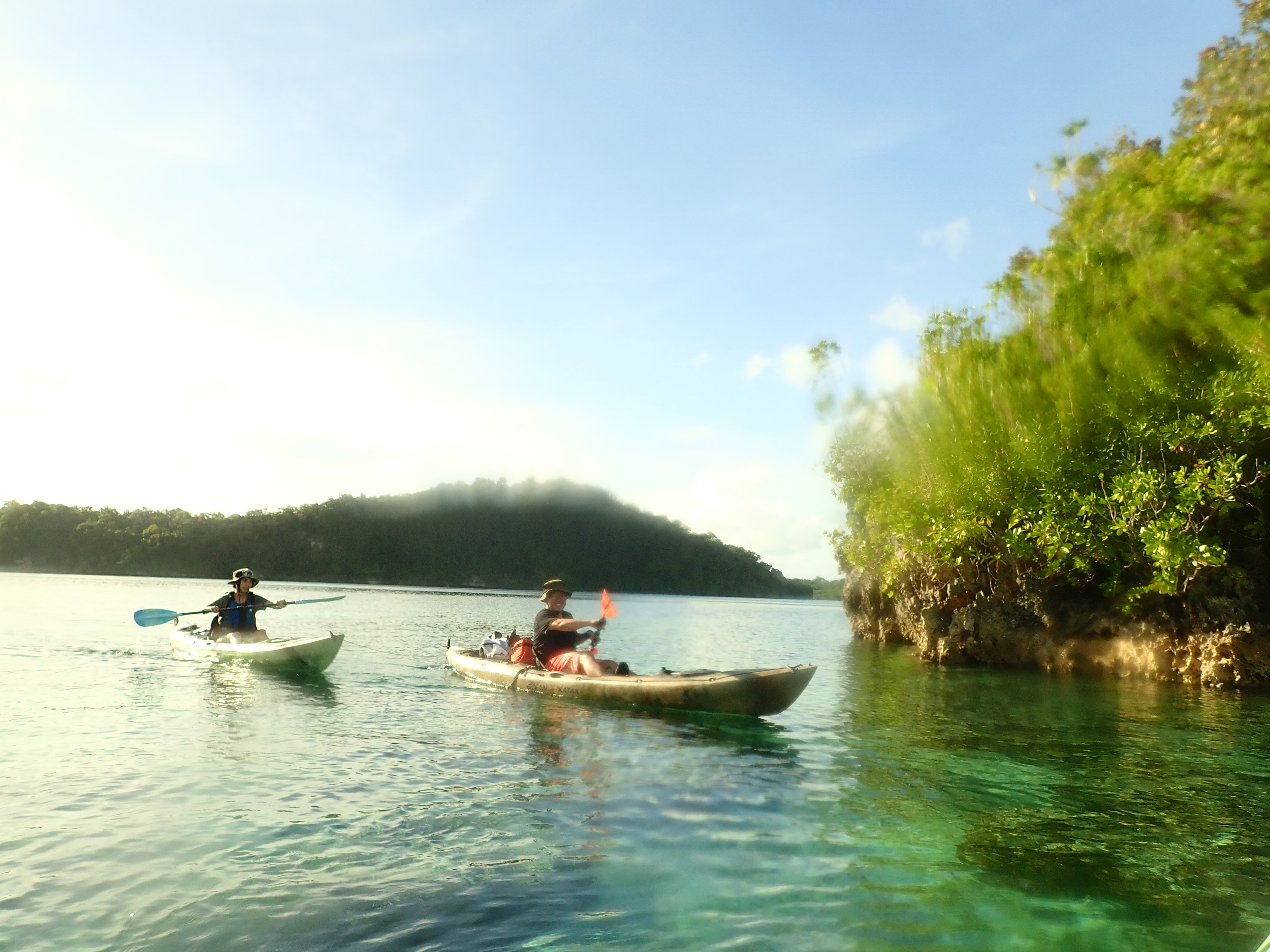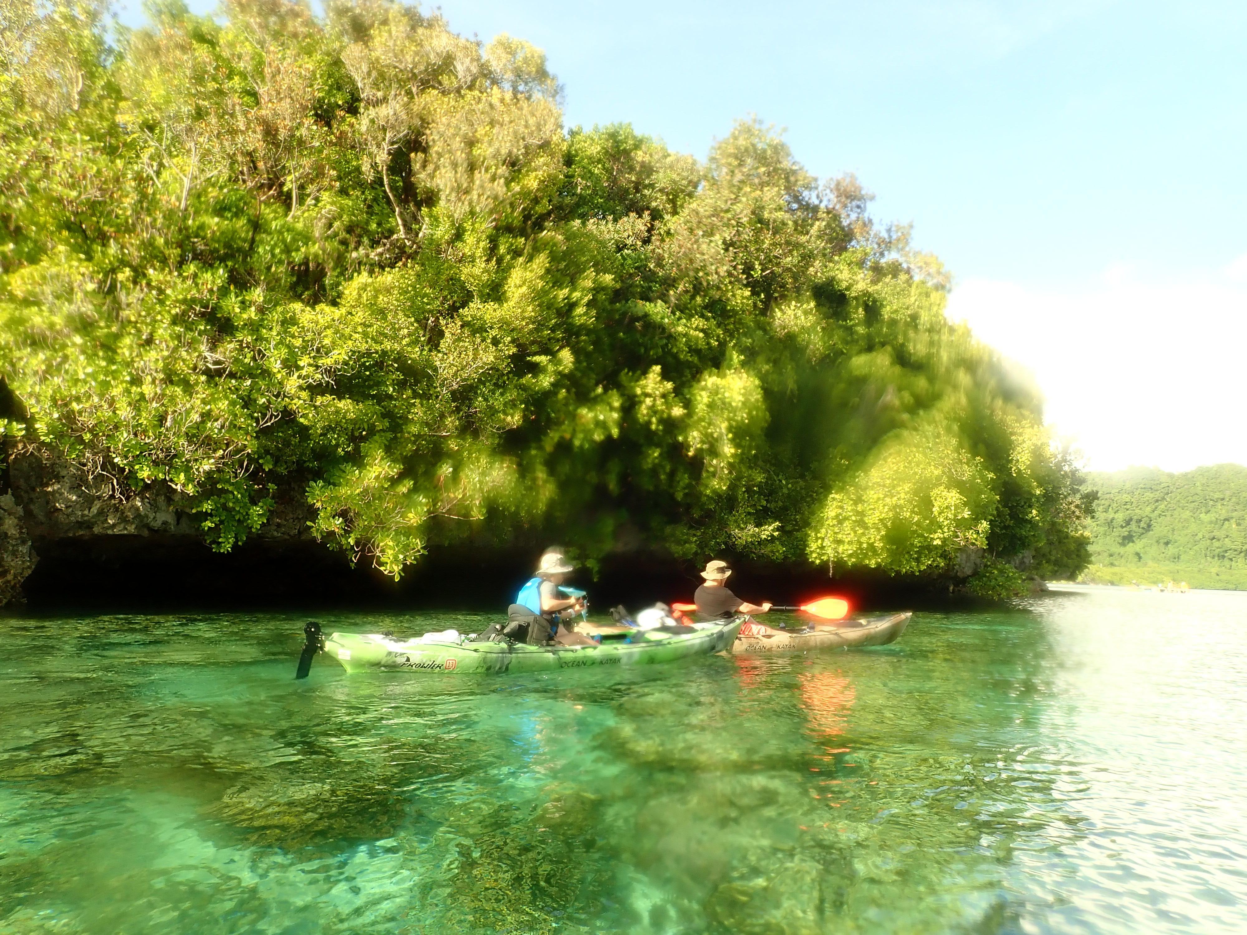 Break at beautiful cove.We heard the twitter of Palau’s birds.