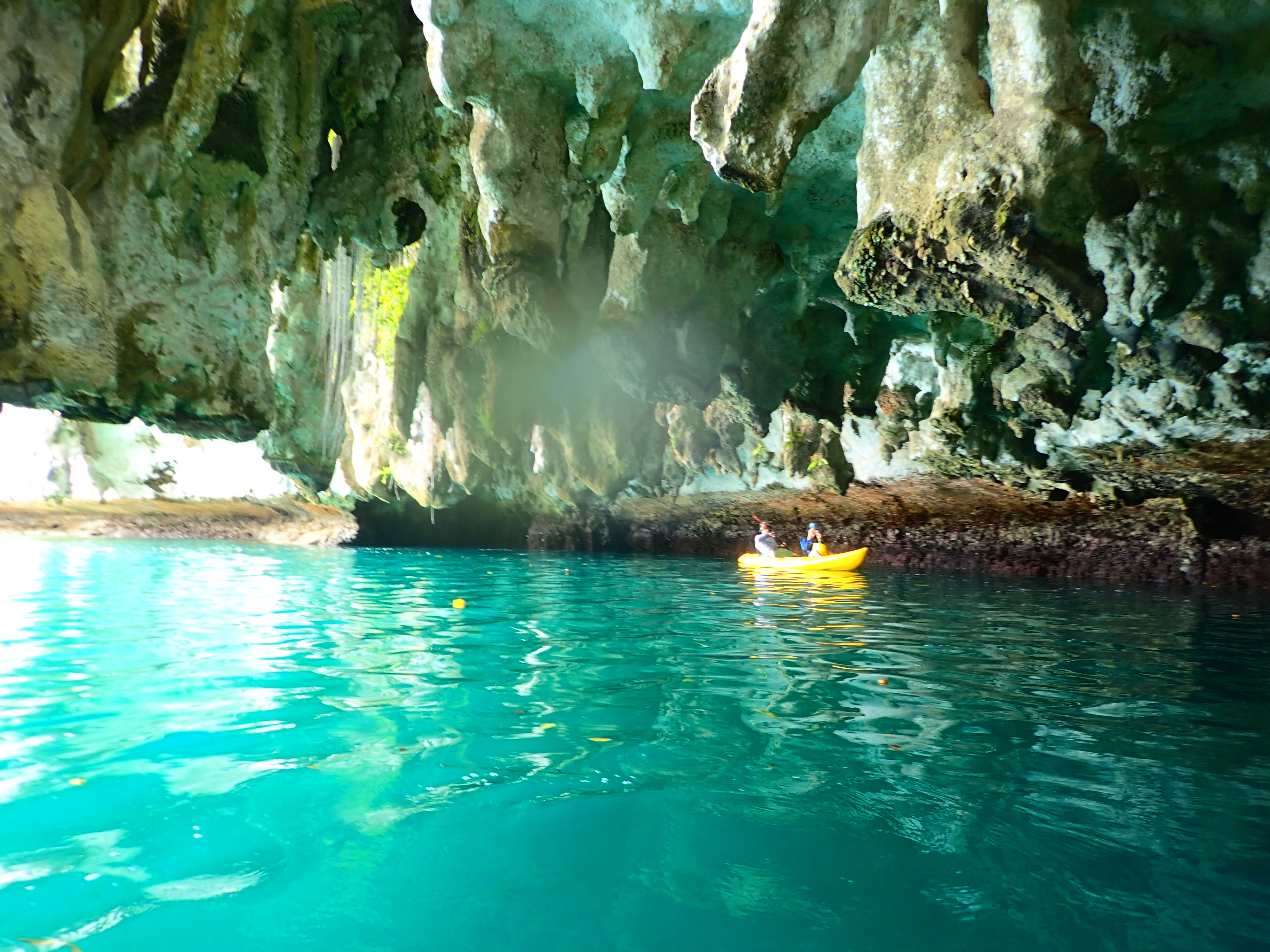 Get off the kayak and take a walk in the jungle.About 90 years ago, this cave is a salt factory made by Japanese people.At the time, the war had already begun, it seems to have made a factory in the cave so that it can not be found by the enemy.