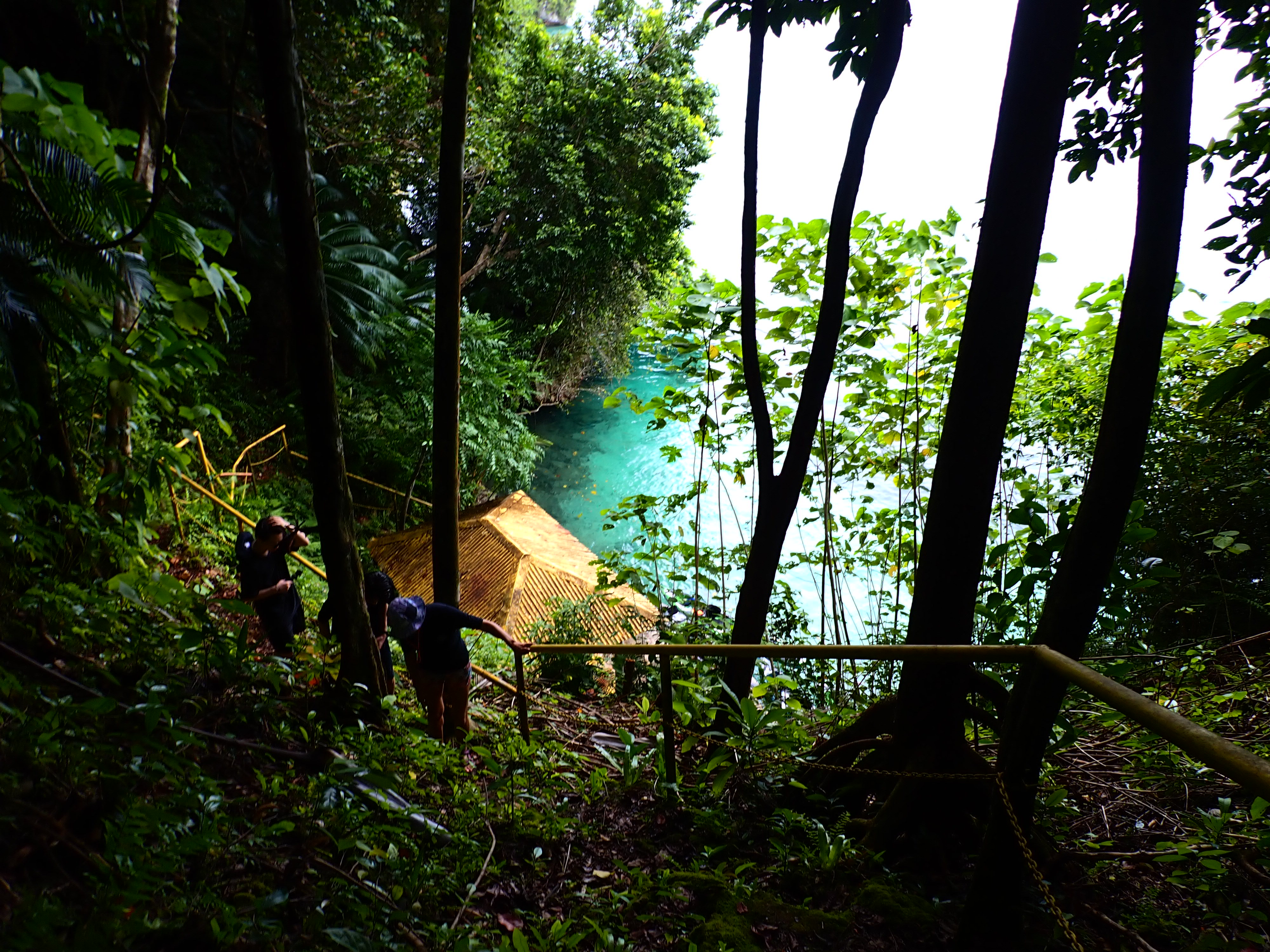 最後にストーンマネーアイランドに上陸してジャングルトレッキング。その昔、ヤップ人が遠路はるばるパラオまで訪れて、石灰岩を削り出して作った世界最大の石貨を見る事が出来ます。