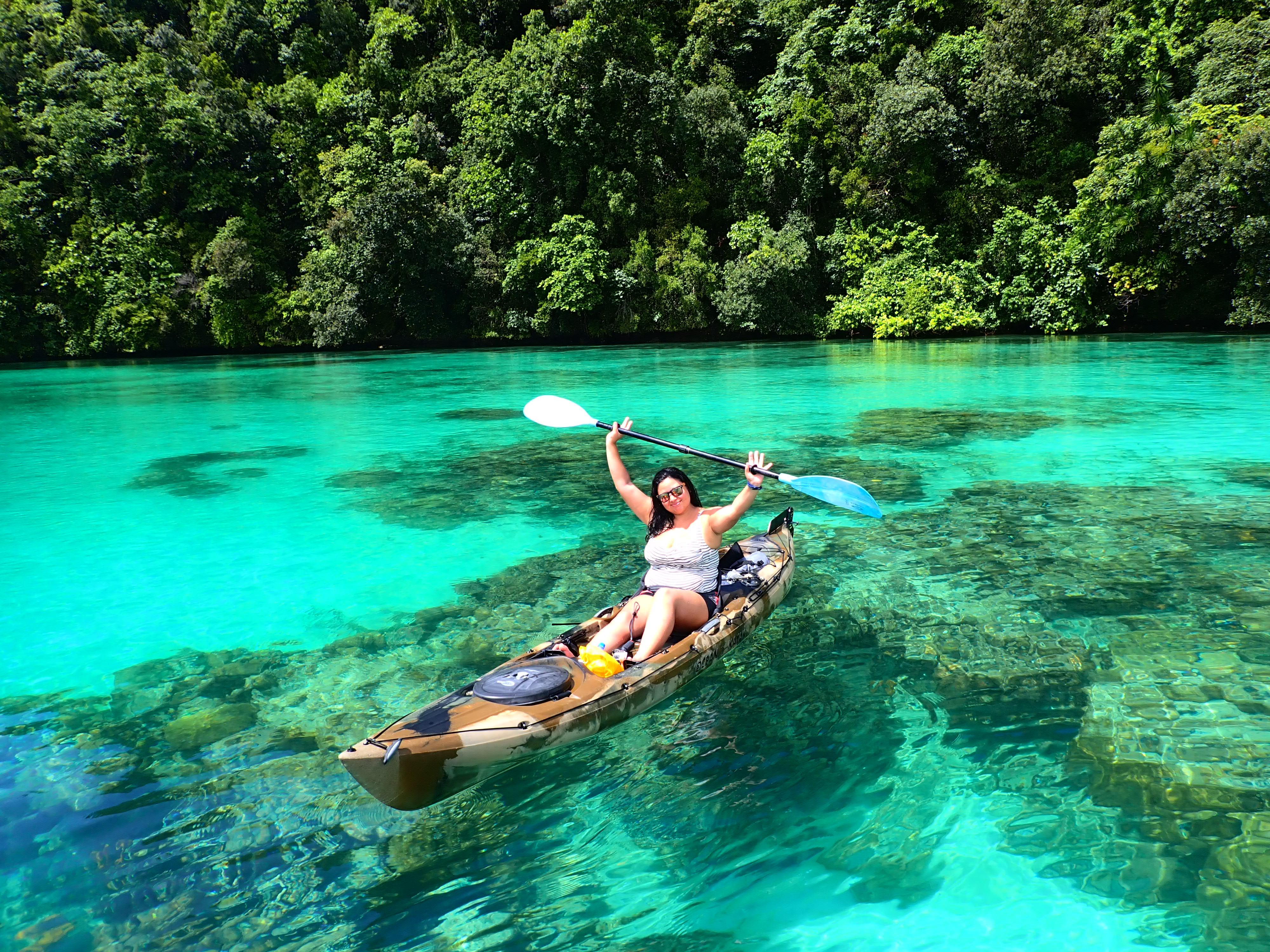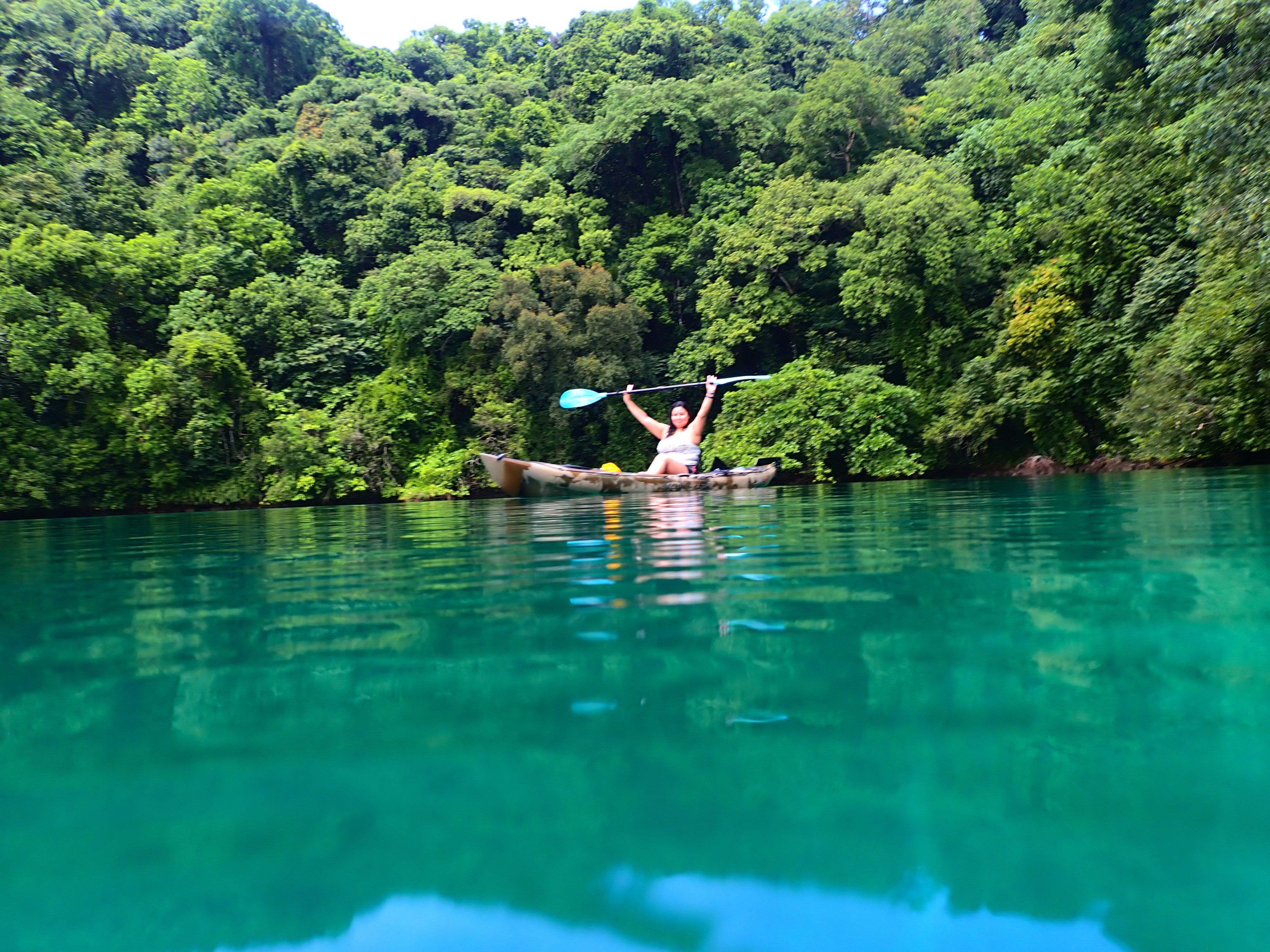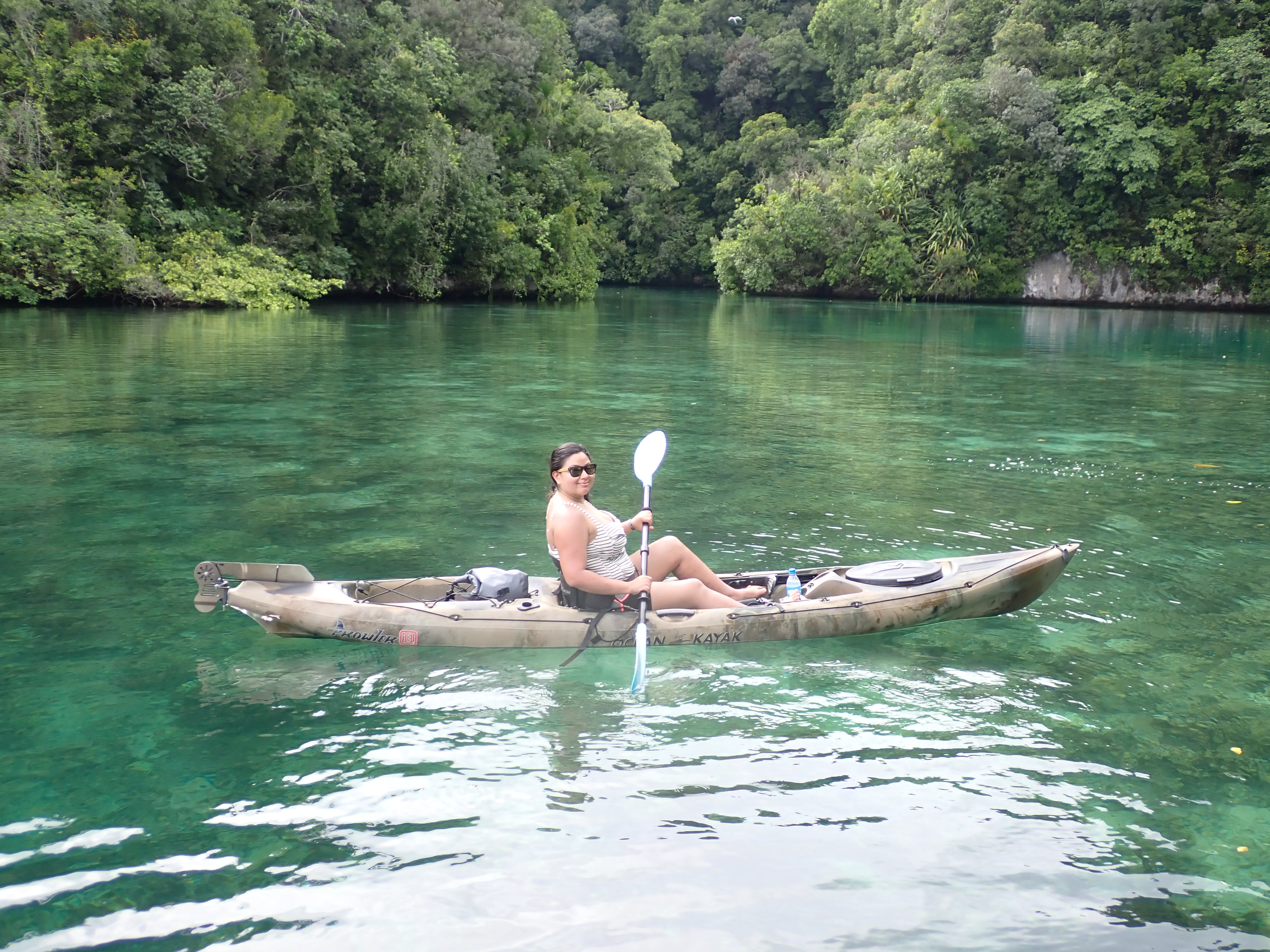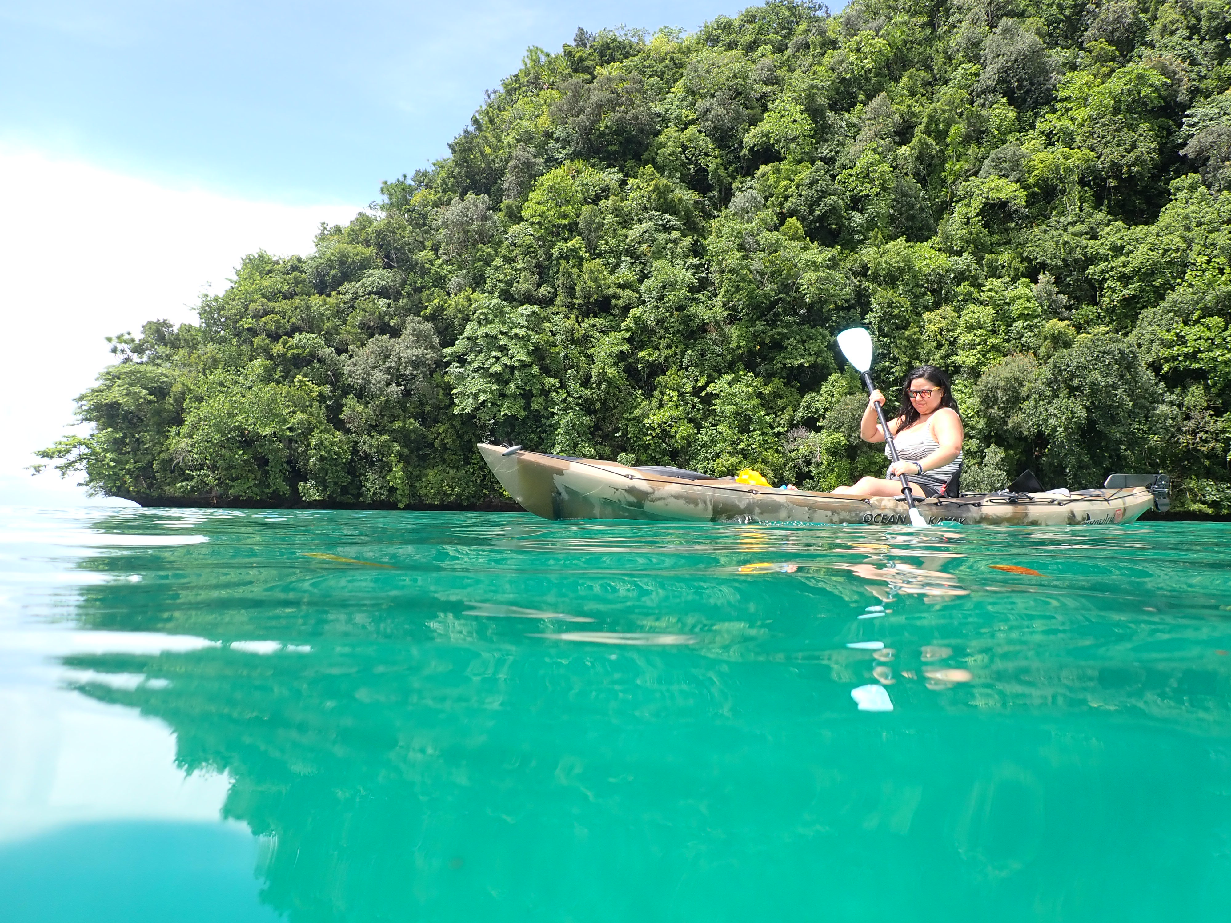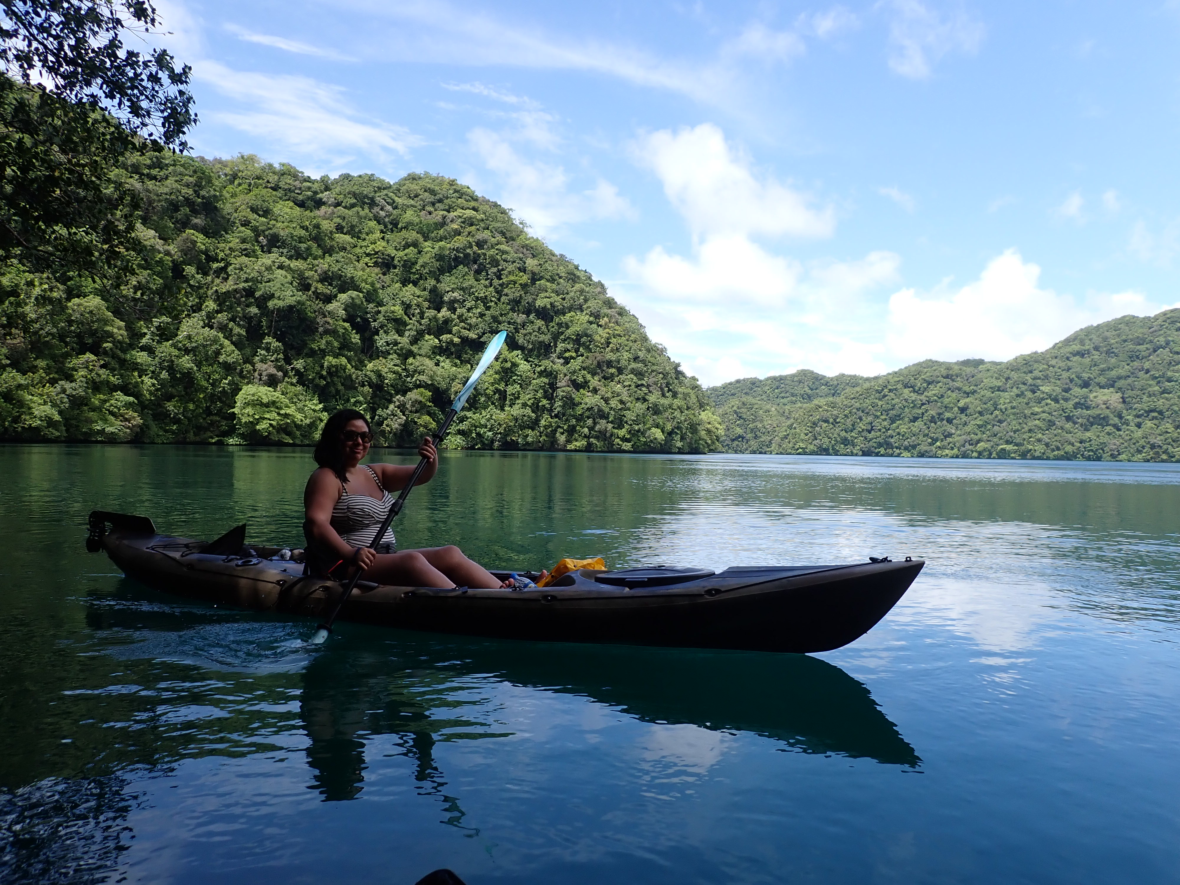 Today, the first blue skies came out, so it’s time for pictures. Cloudy days are good for kayaking because it is not hot, but Palau is still beautiful when it is sunny. I was relieved to be able to take good pictures.