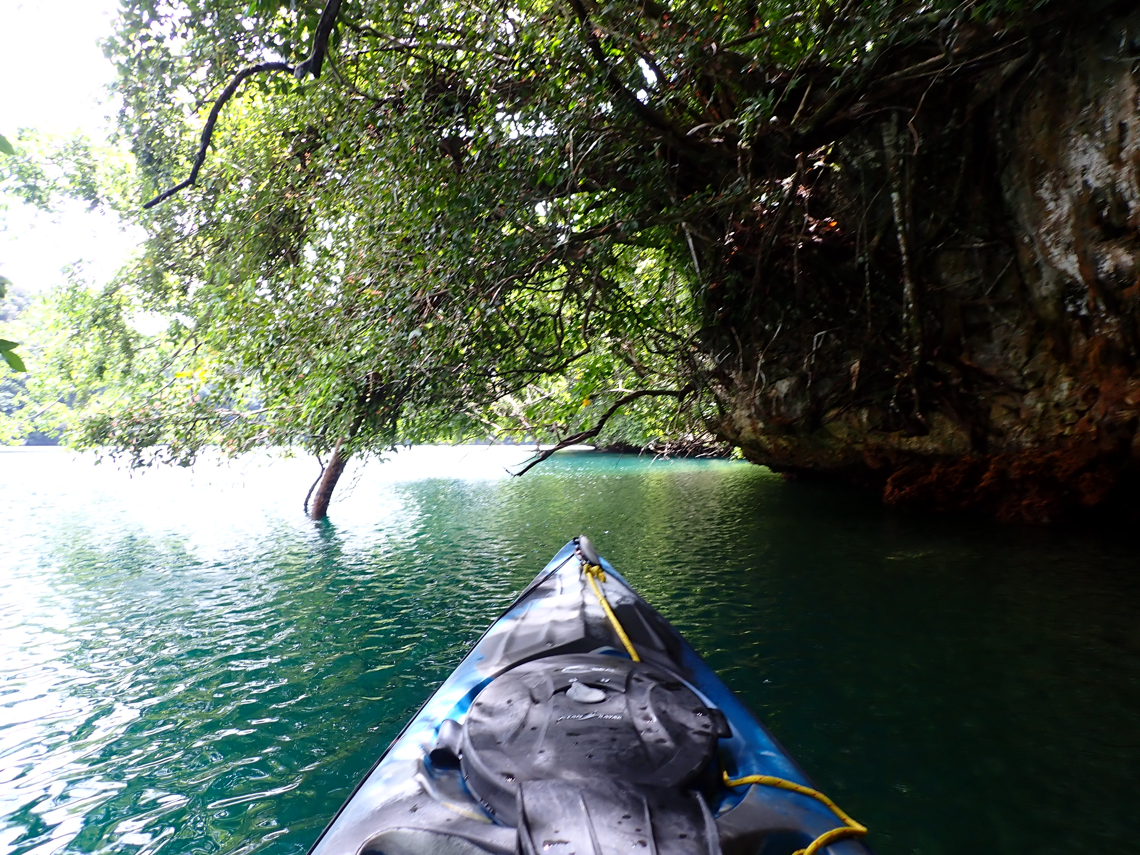 On the way back, the tide level has dropped so we can pass under the trees on Rock Island at a time like this. It is a bit of an adventure and quite a fun time to enjoy.