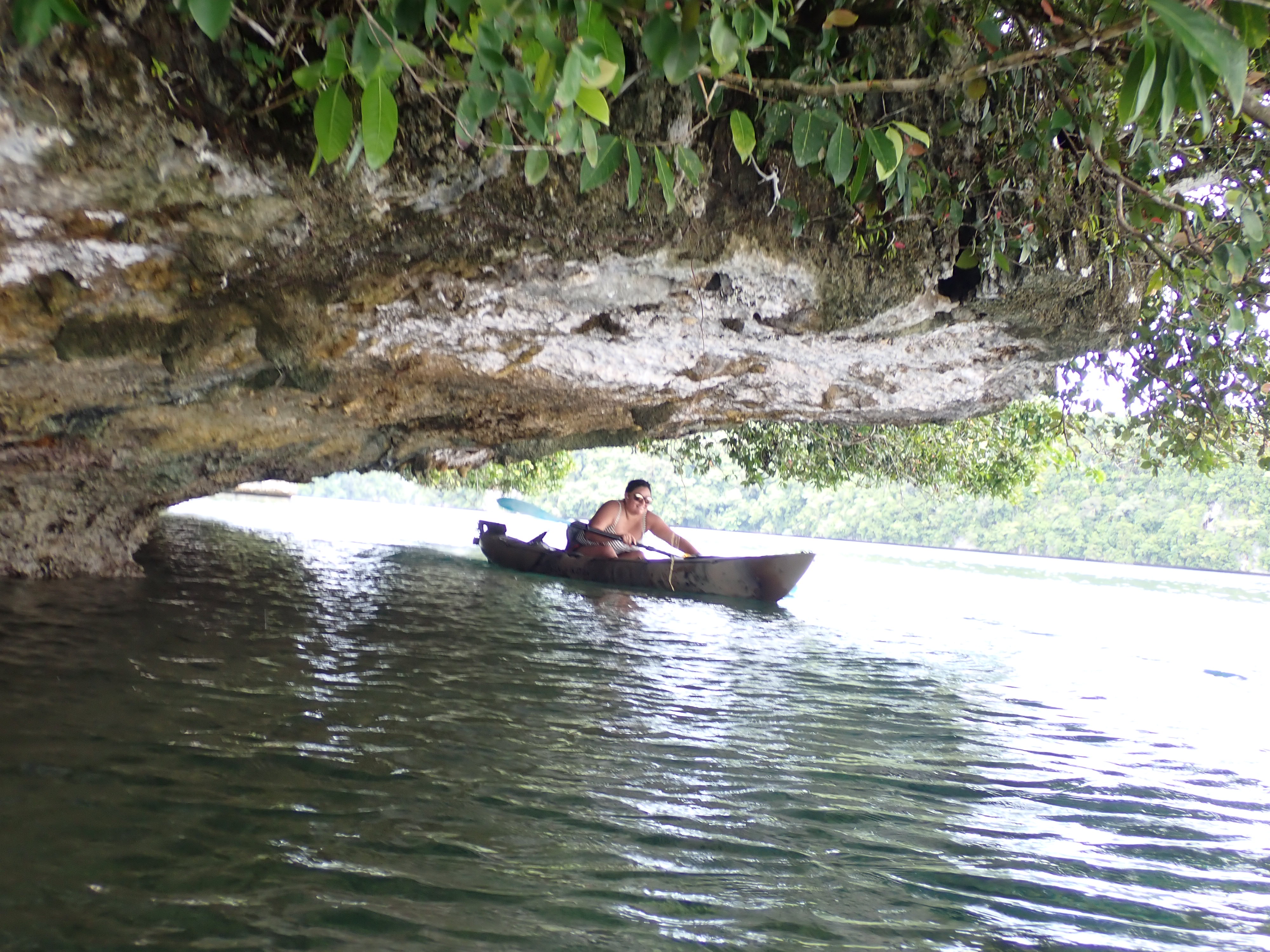 Further south in Nikko Bay, we arrived at the cave. Locals call it Bat Cave because small bats live here. During the day they sleep on the ceiling, but if you visit at night, you will be amazed at the number of bats flying in.
