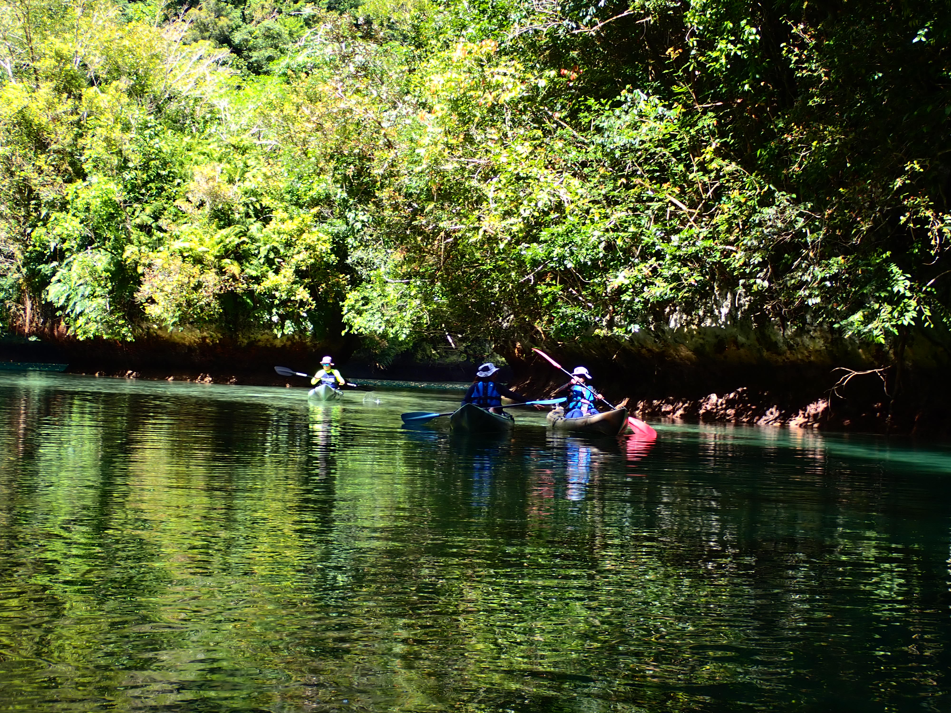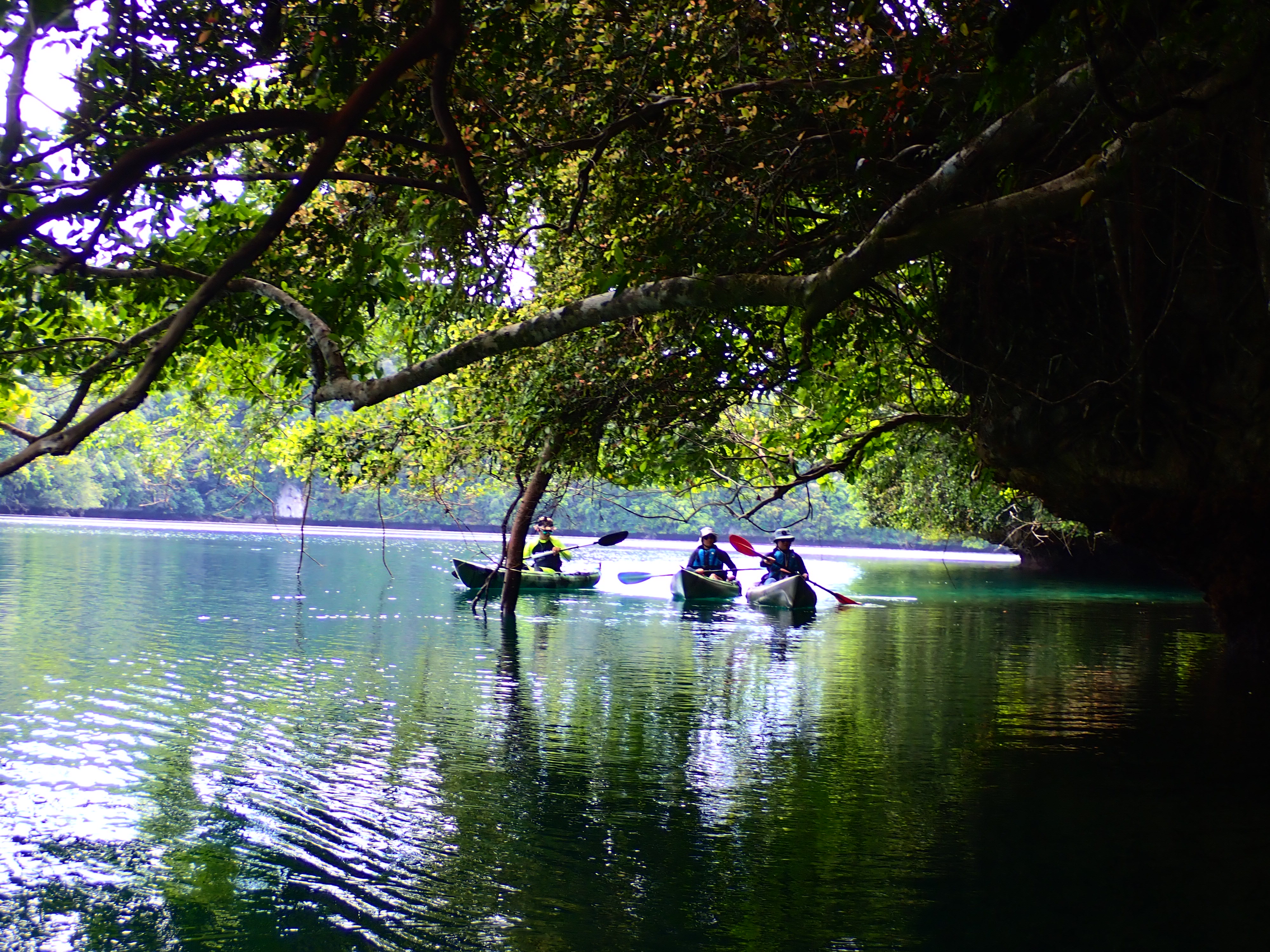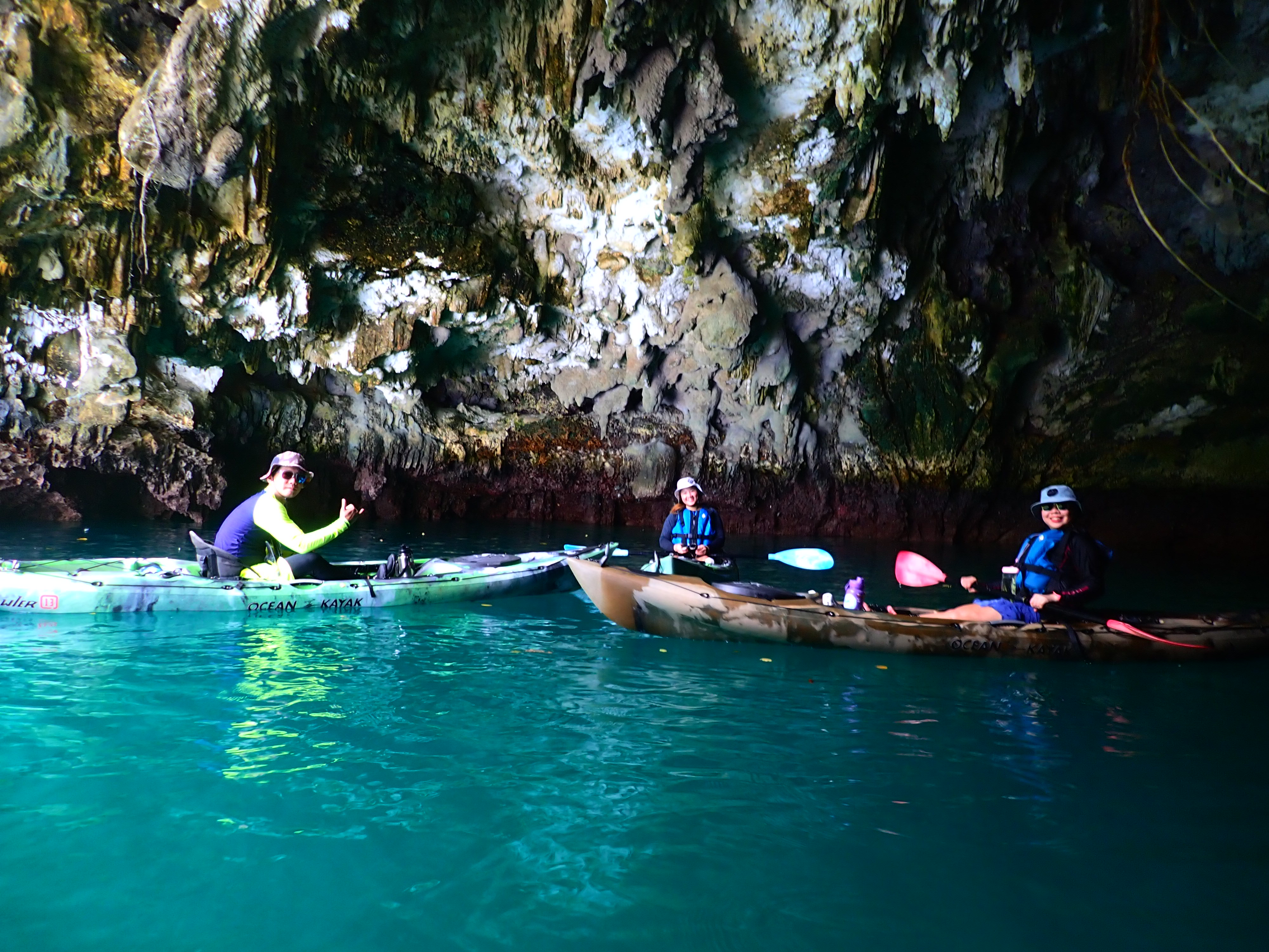 Leaving the cave, we paddled on the return trip. Today’s guests, who had never kayaked before, have improved so much that they look like full-fledged paddlers.