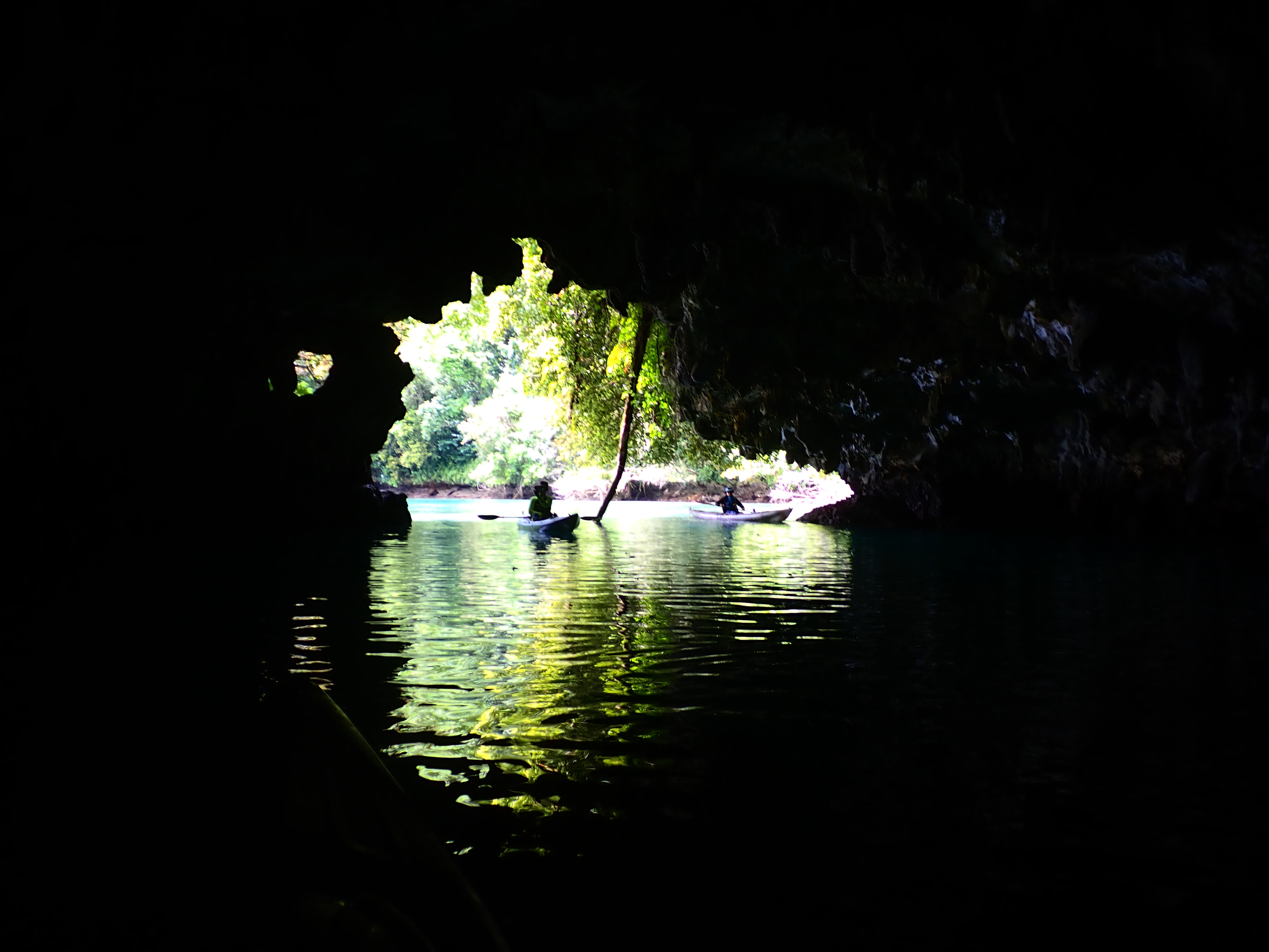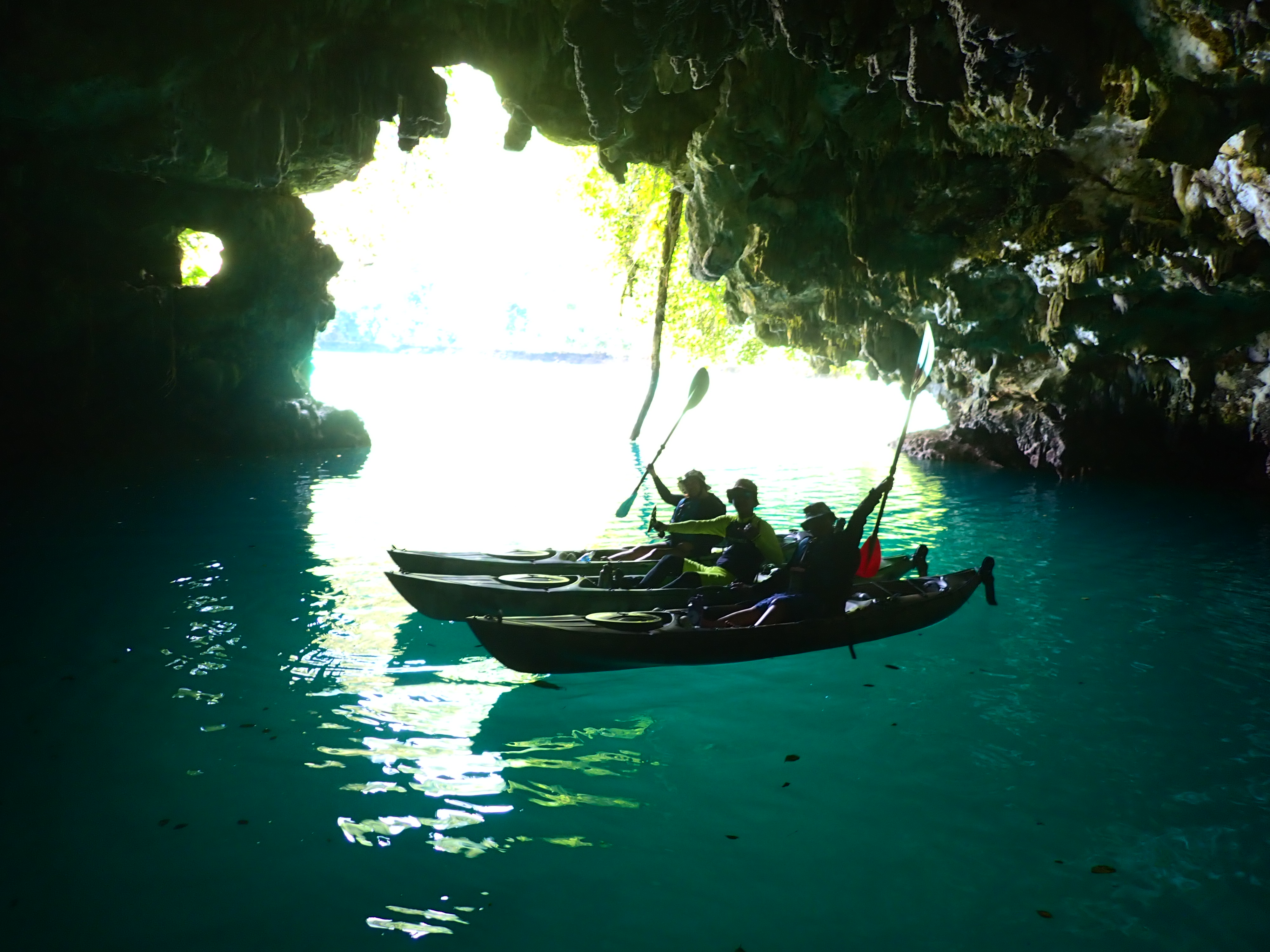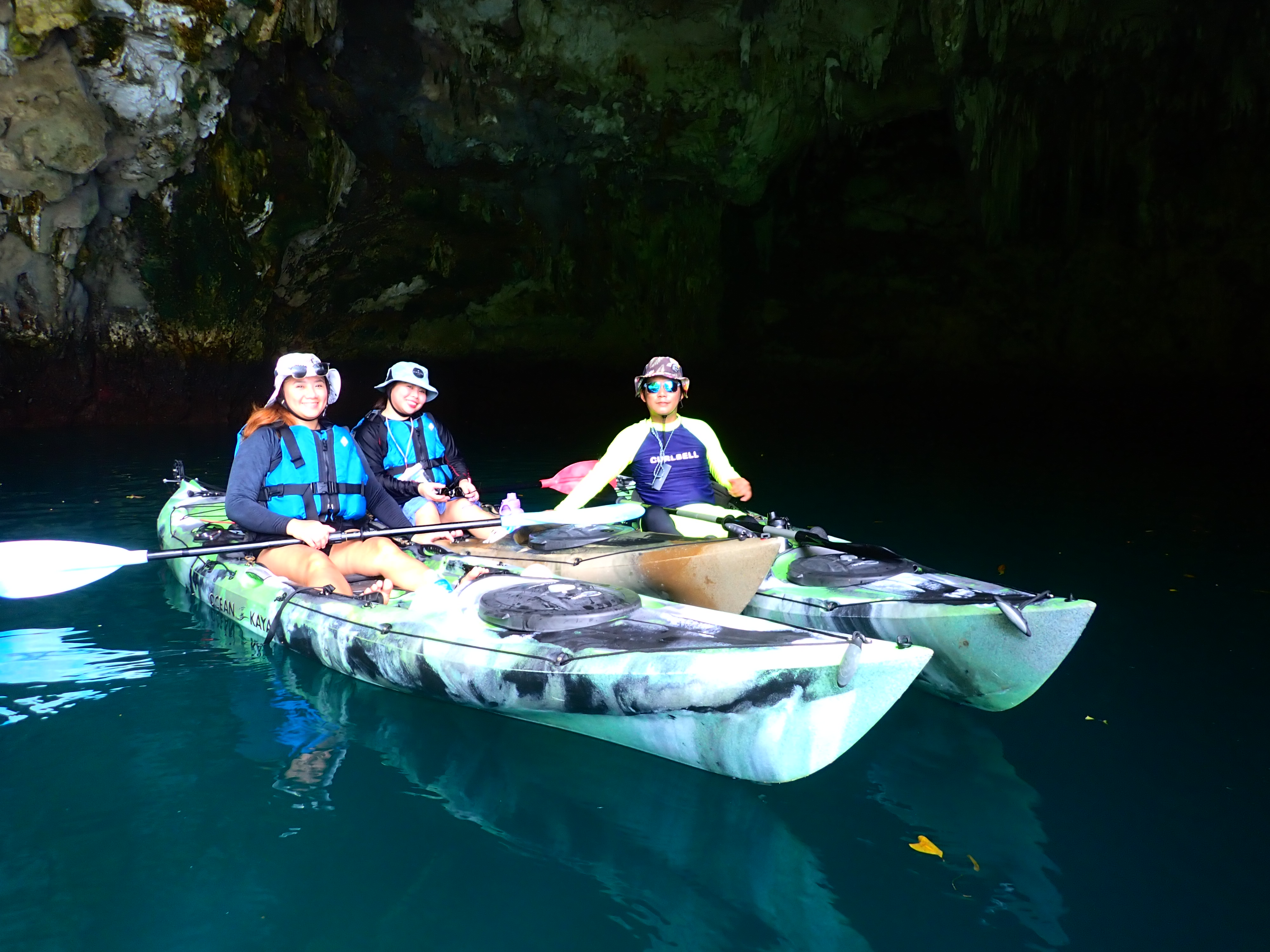Leaving the cave, we paddled on the return trip. Today’s guests, who had never kayaked before, have improved so much that they look like full-fledged paddlers.