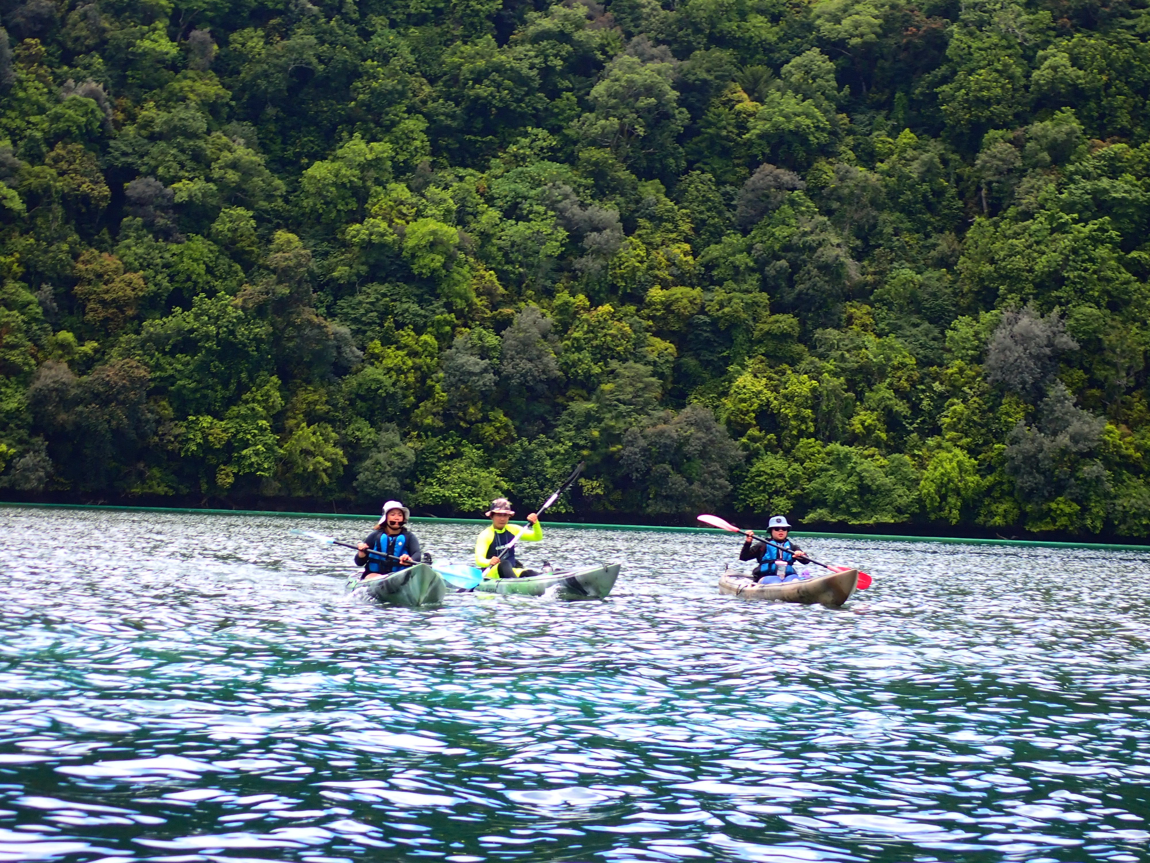 Kayaking in Nikko Bay, with staff working at the hotel.