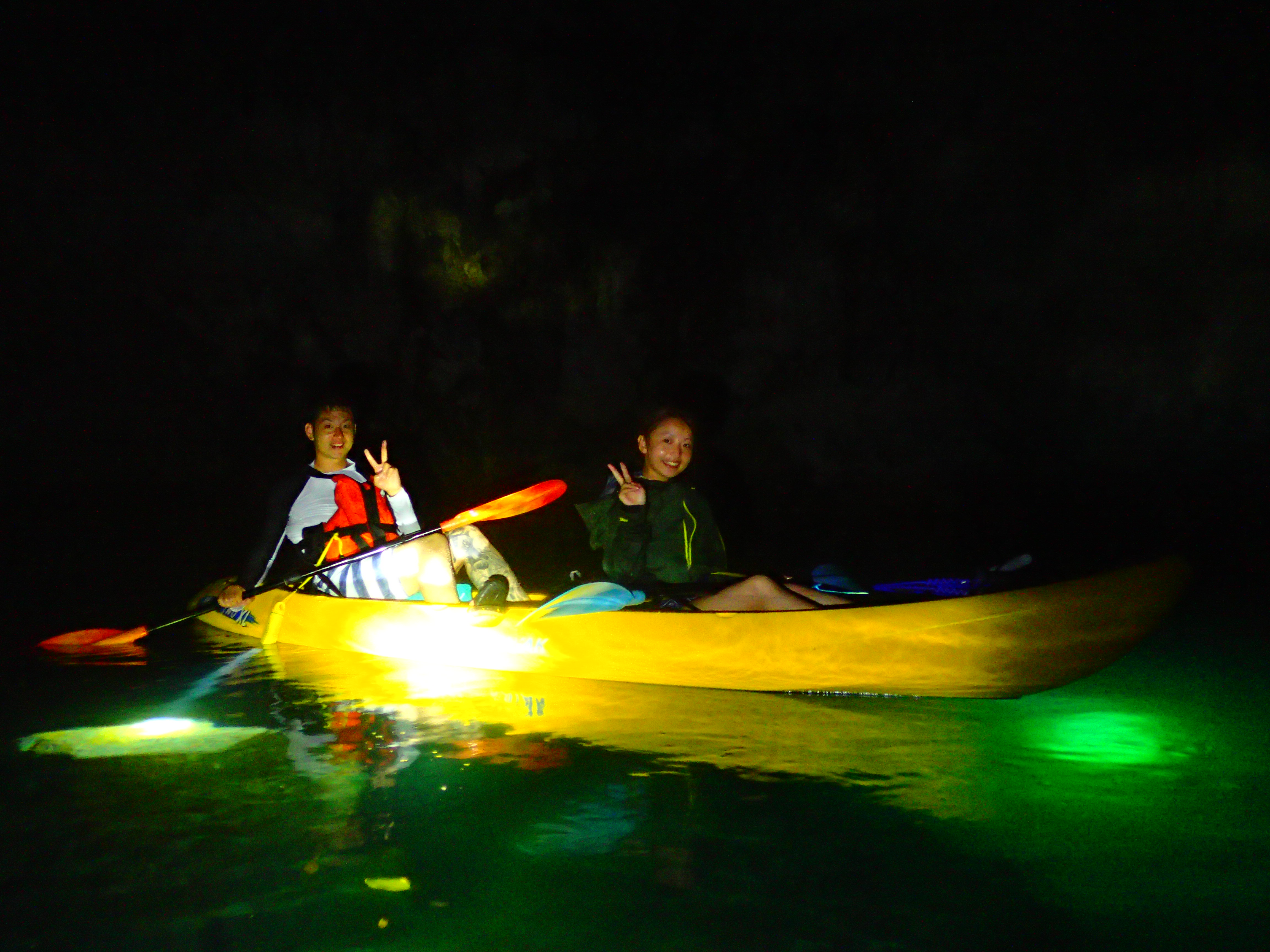 お二人はカヤック初との事でしたが、センスが良すぎて通常のコースより遠出し、夜の洞窟探検をしちゃいました。