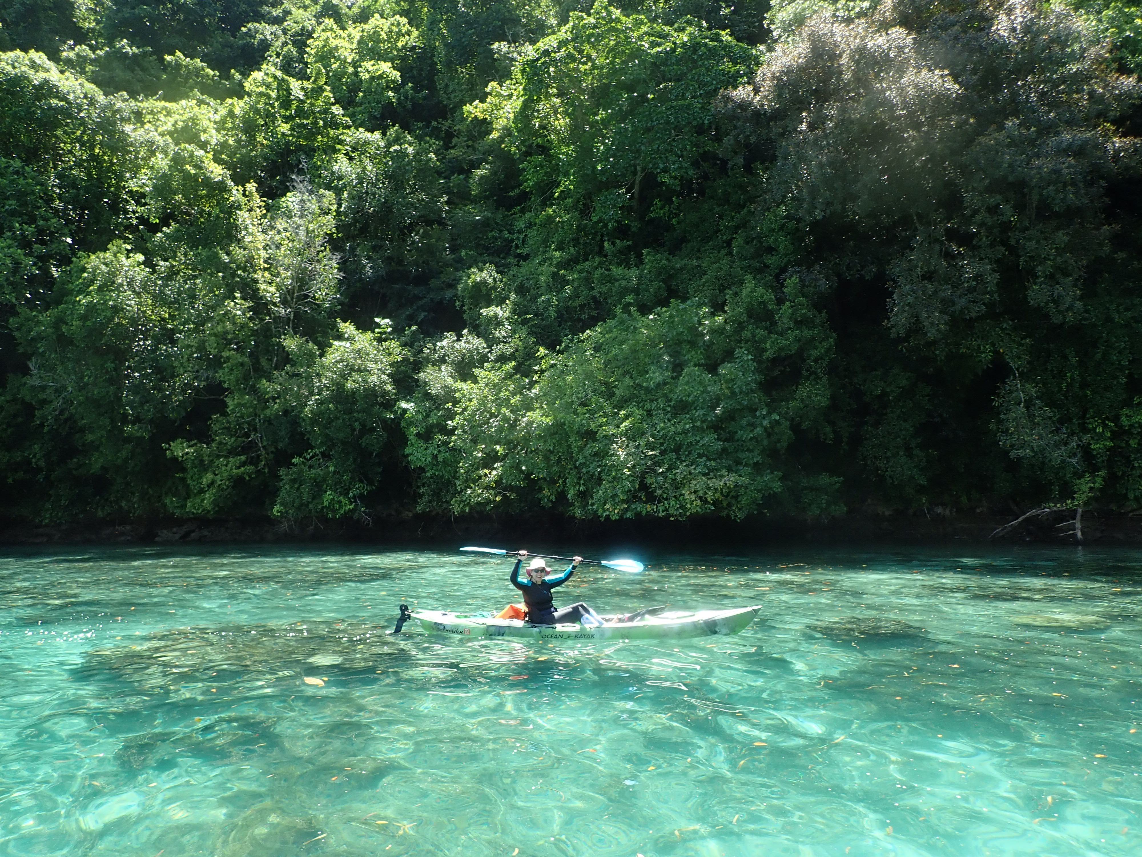 The color of the ocean changes depending on what the bottom is, the depth, and how light is diffused. Kayaking is the most suitable activity to observe nature.