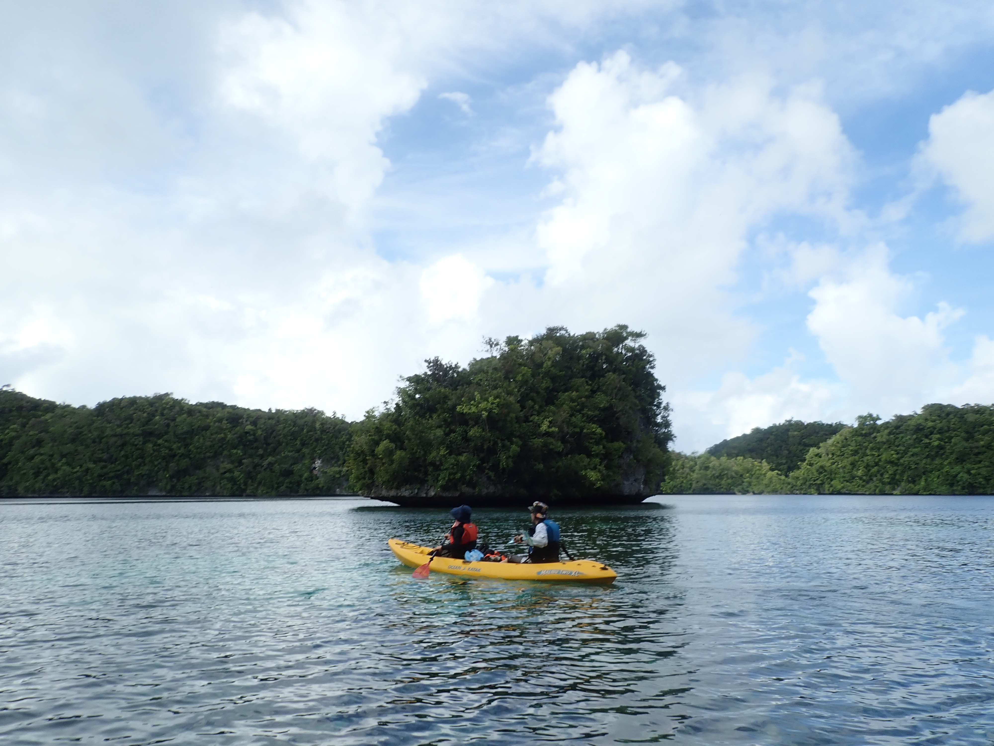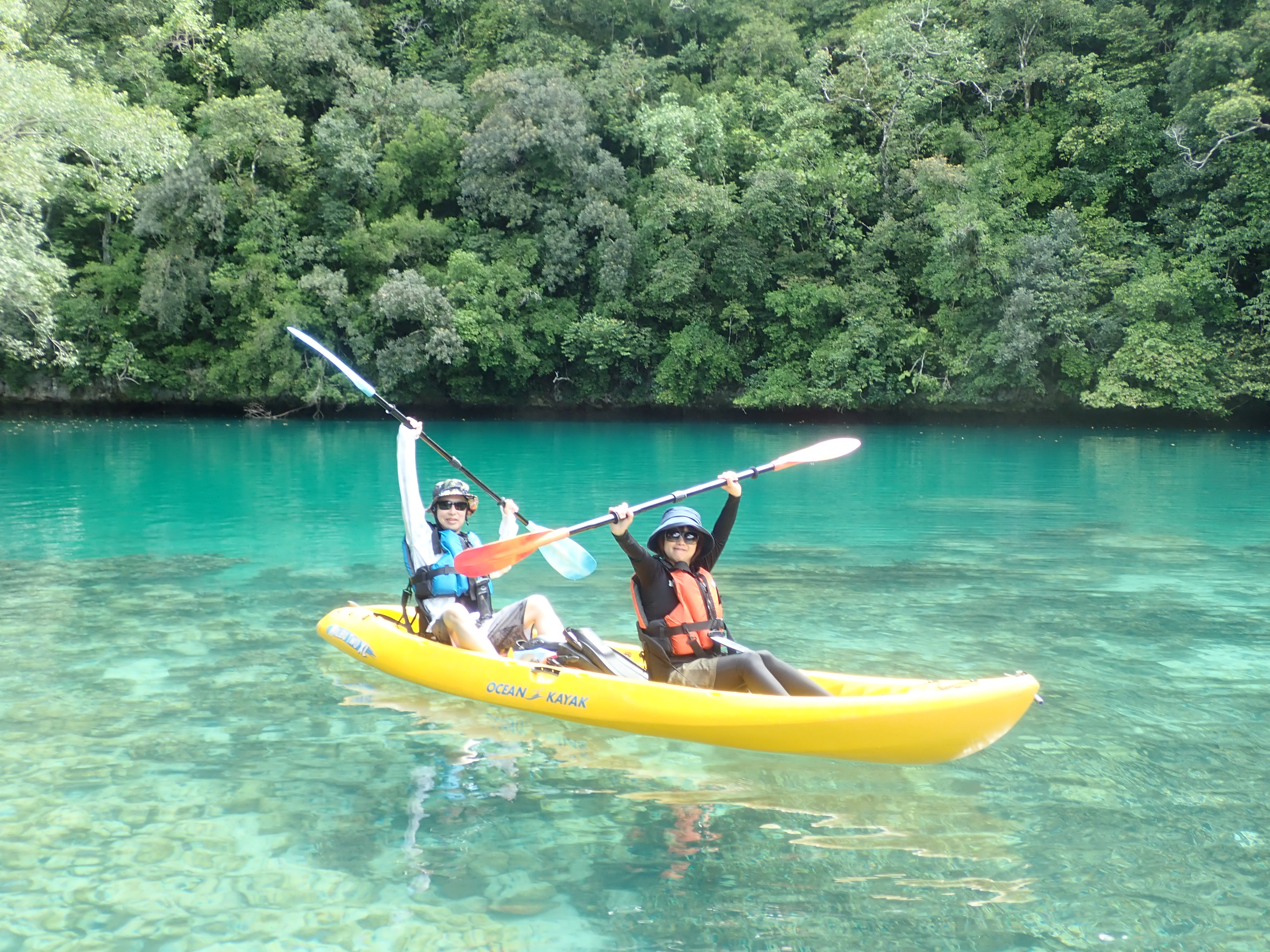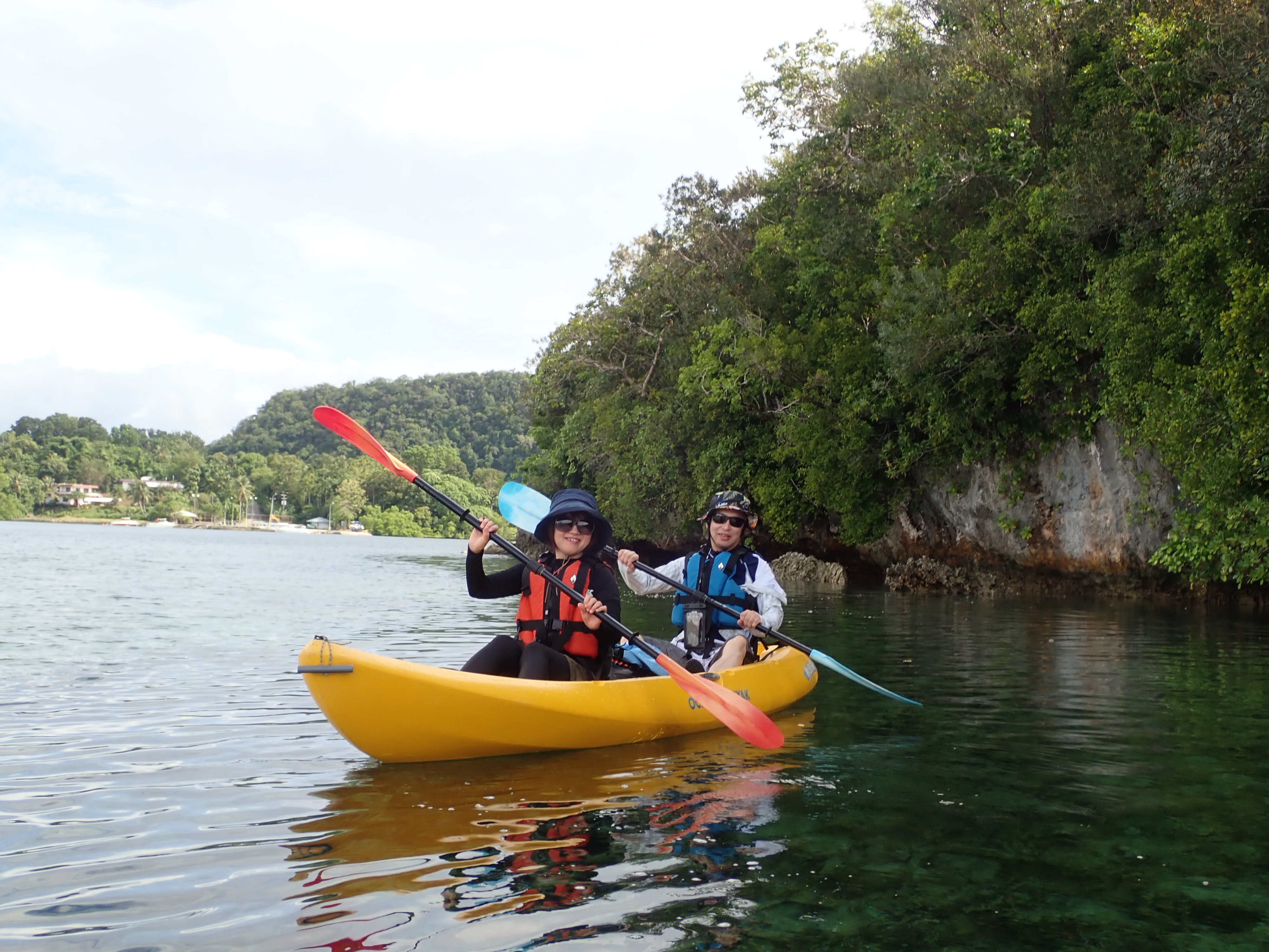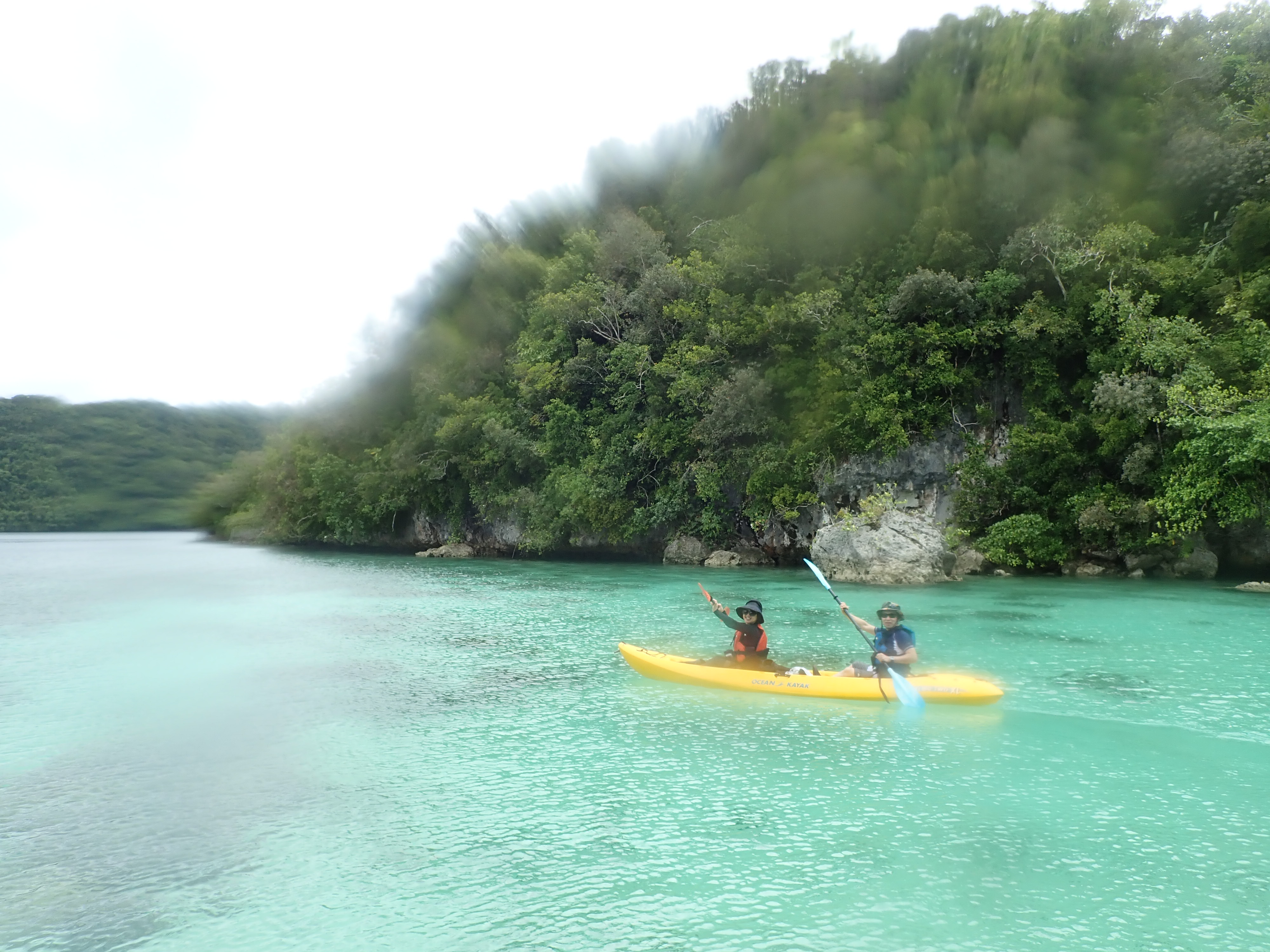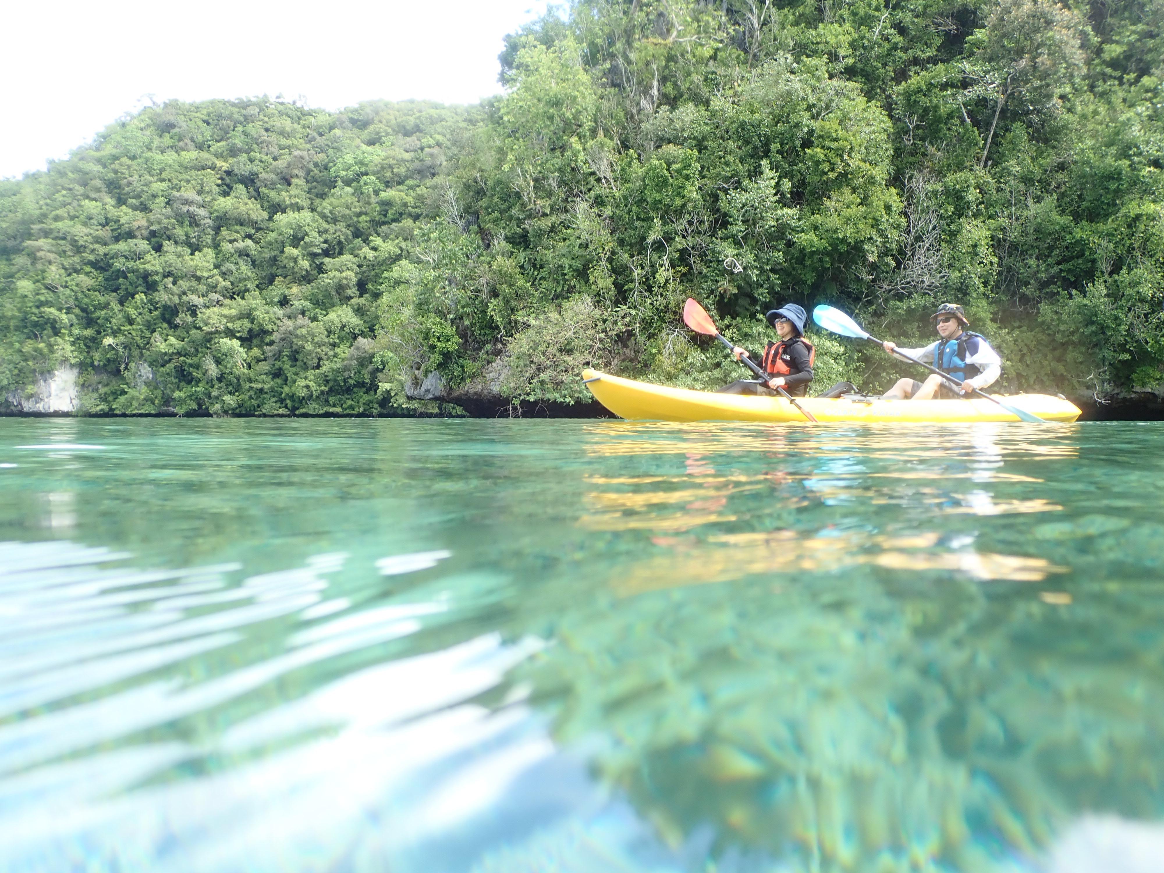 先ずは穏やかな入江をカヤッキング。波風の影響の少ないパラオ松島内はカヤックを初めての方でも安心してご参加頂けます。